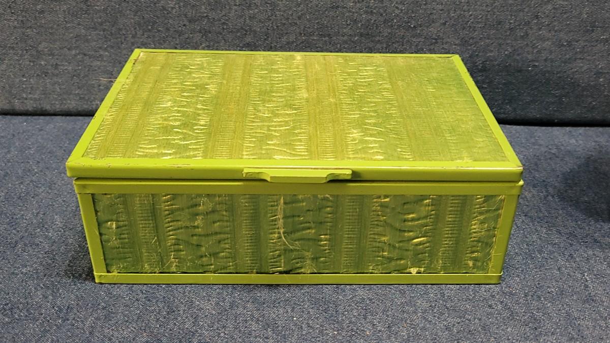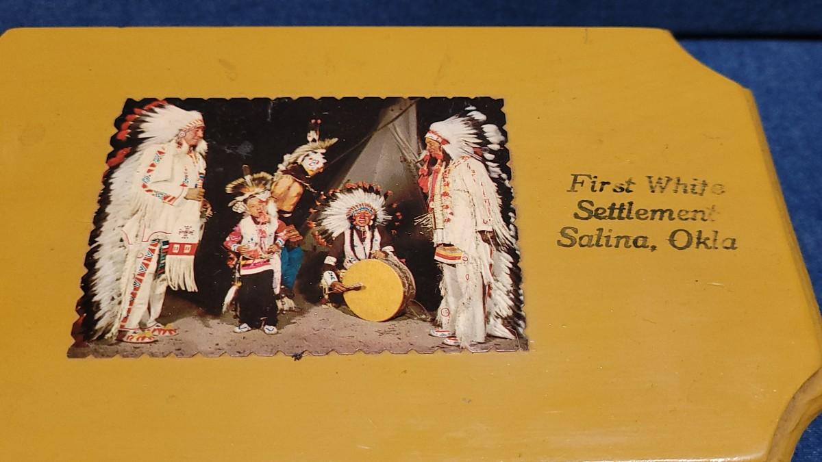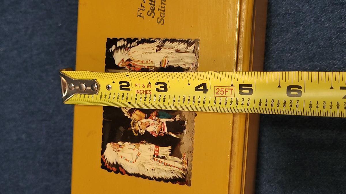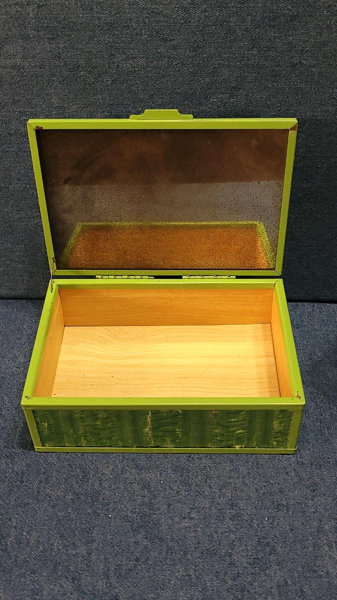 Yellow wood jewelry box with Native American Theme and Metal and Fabric jewelry box