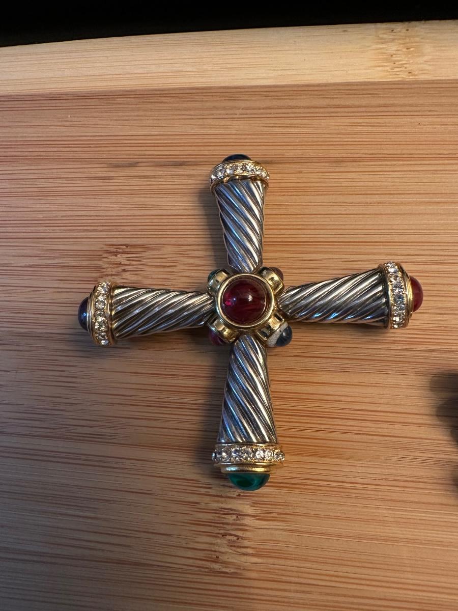 GIVENCHY GOLD TONE GLASS CABOCHON MALTESE CROSS BROOCH PIN