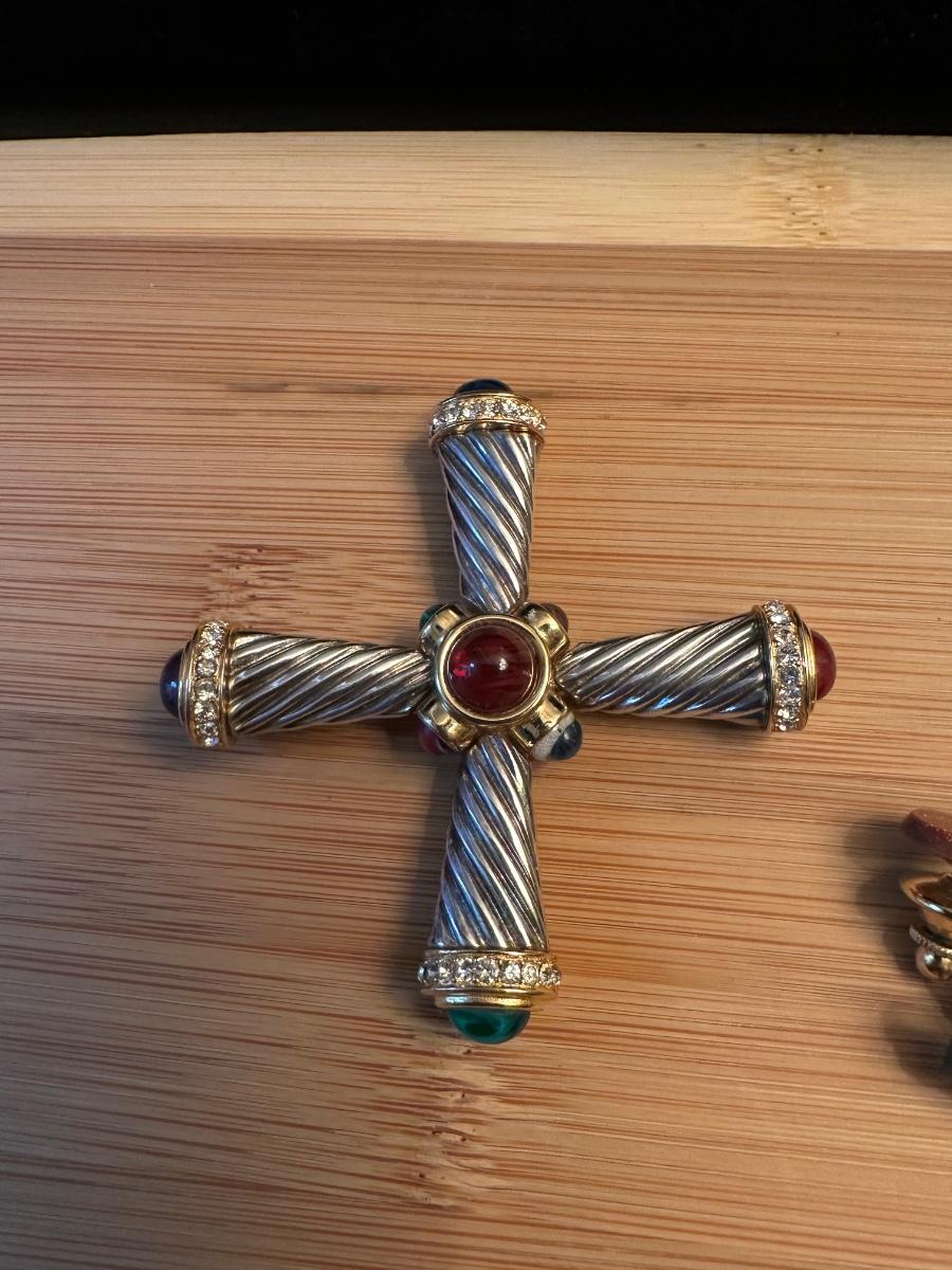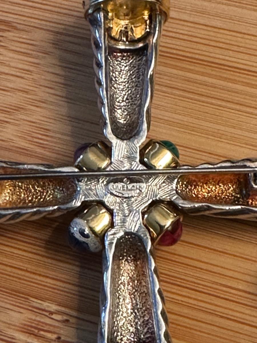 LOT 109. GIVENCHY GOLD TONE GLASS CABOCHON MALTESE CROSS BROOCH PIN