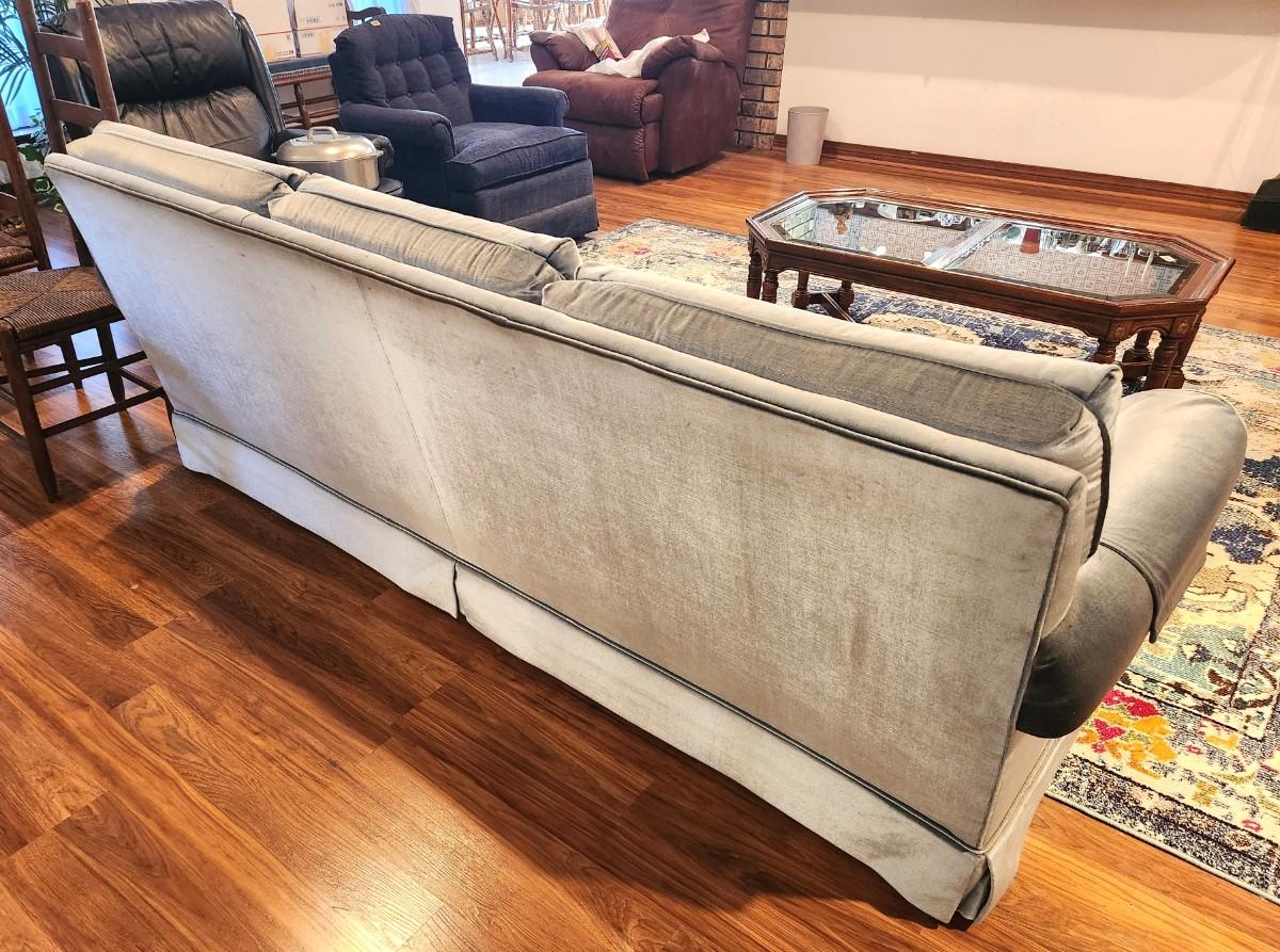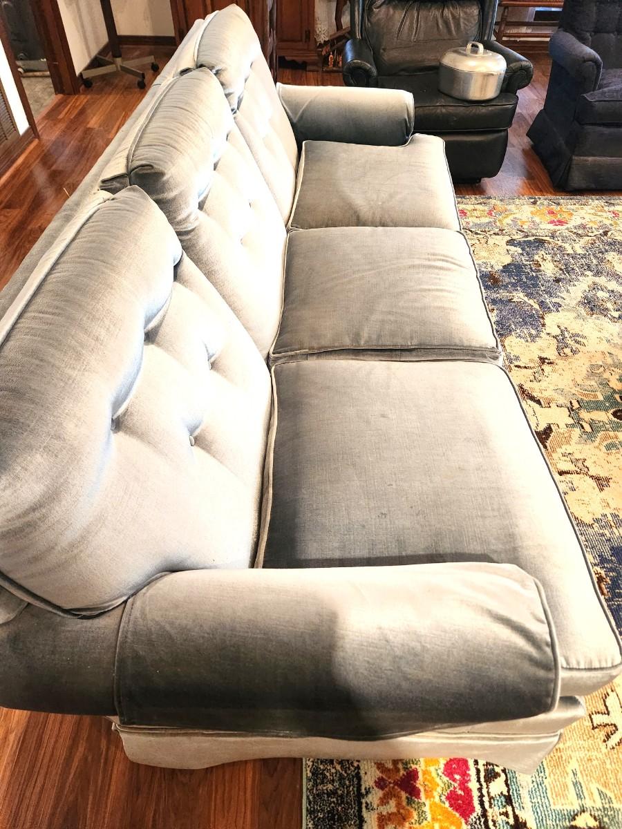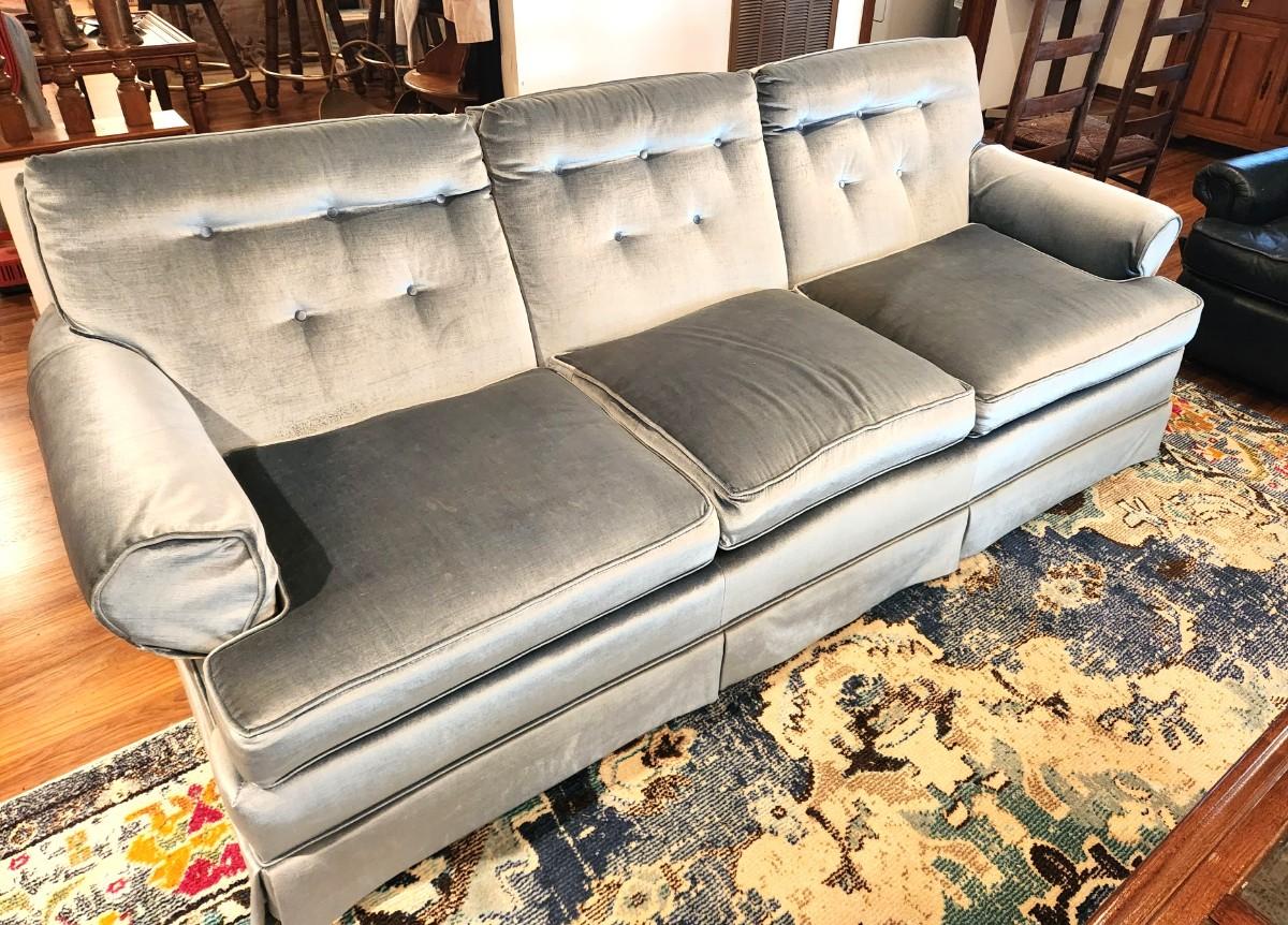 Lot #109  Blue Velveteen Sofa - Distinctive Furnishings by Gilliam