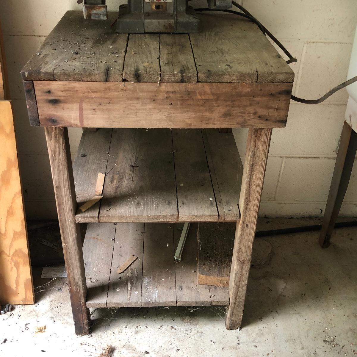 Bench measures 20.5” x 20.5” x 30”. This unit powered on when tested, and is capable of being mounted to a work bench.