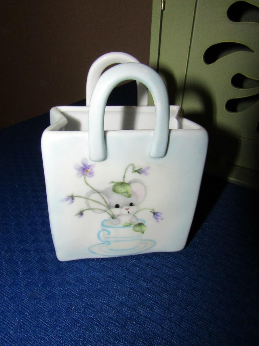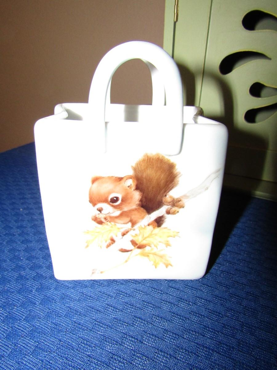 PORCELAIN BASKET WITH PICTURES OF A MOUSE AND SQUIRREL