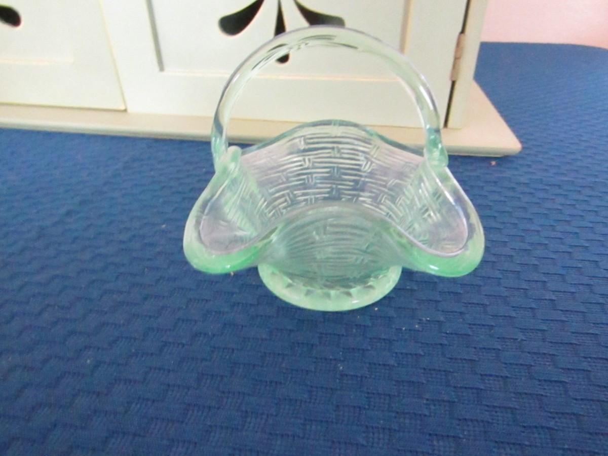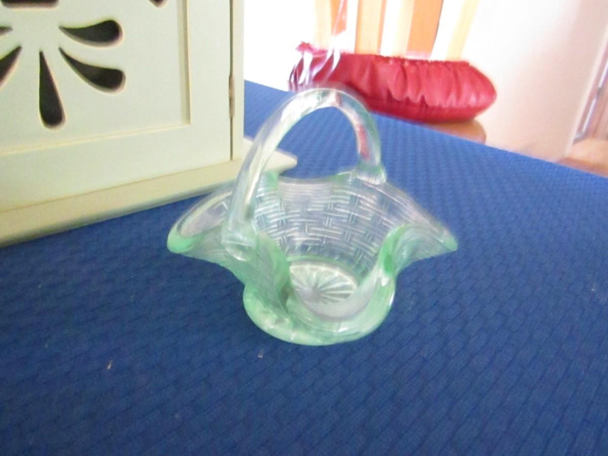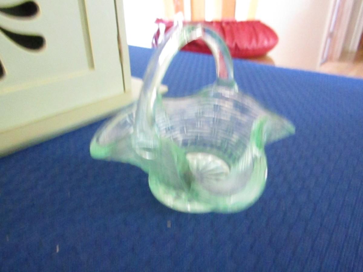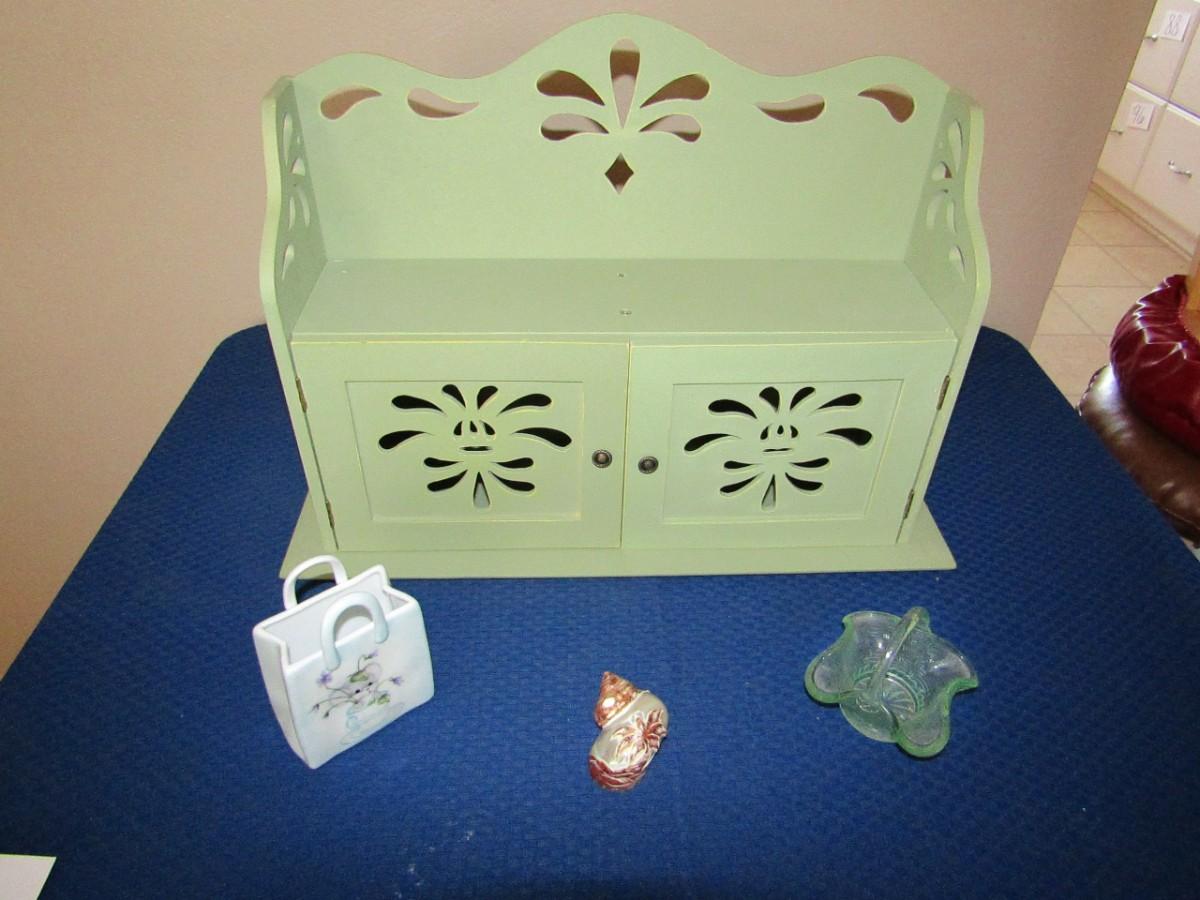CARVED SEASHELL AND SMALL GLASS BASKET