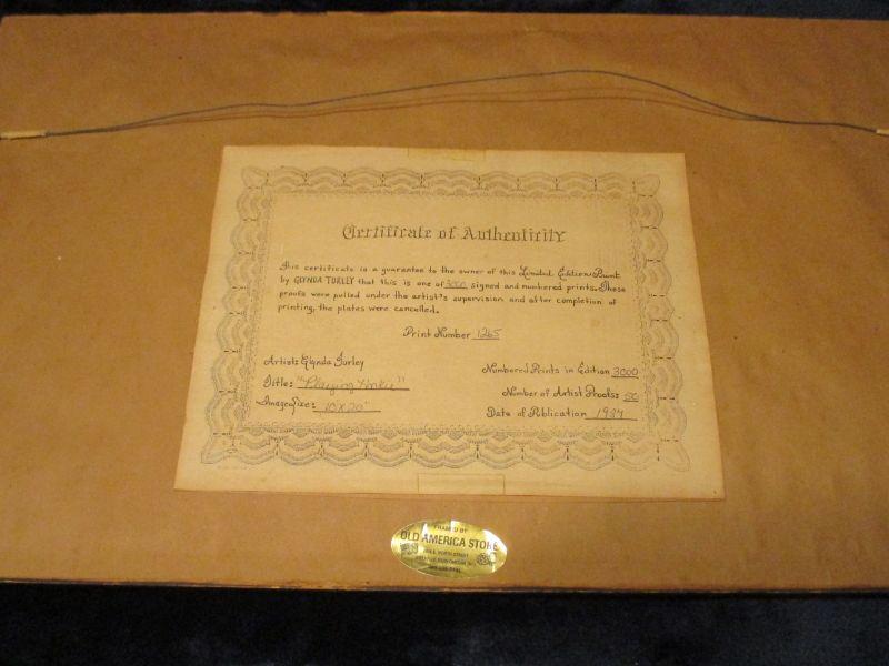 Lovely framed print by Glynda Turley titled "Playing Hookie" and numbered 1265 of 3000. It measures 25" x 15.25".