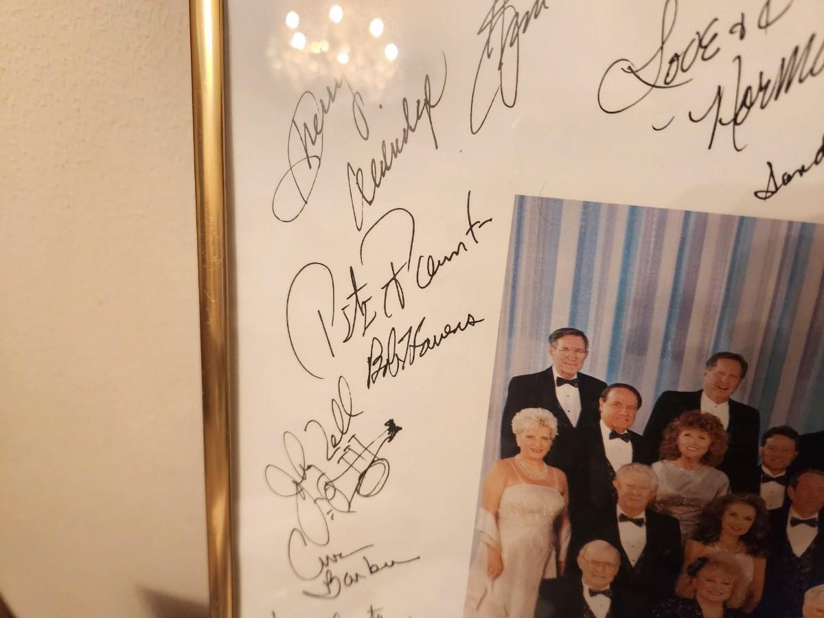 Pete got his big break on the Lawrence Welk Show - this framed photo is from March 2001 and features many of the musicians and singers who were regulars on the show - over 40 original autographs (including Pete's) on the outer margins. 21" x 17" - great condition.