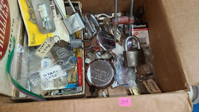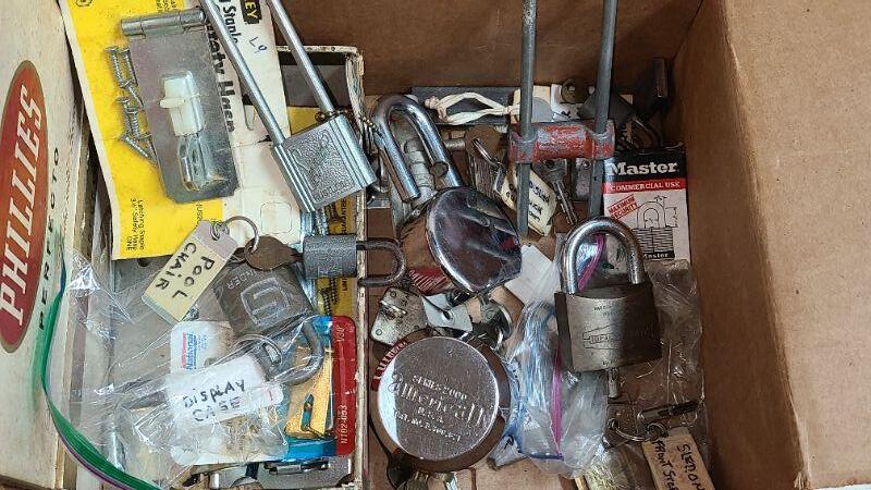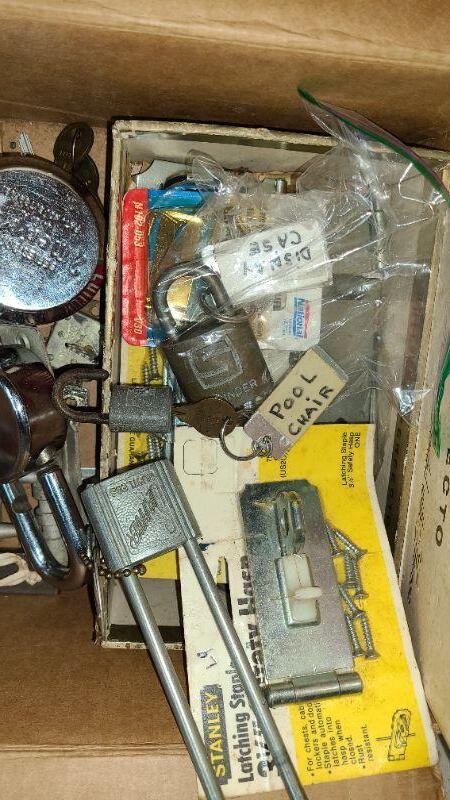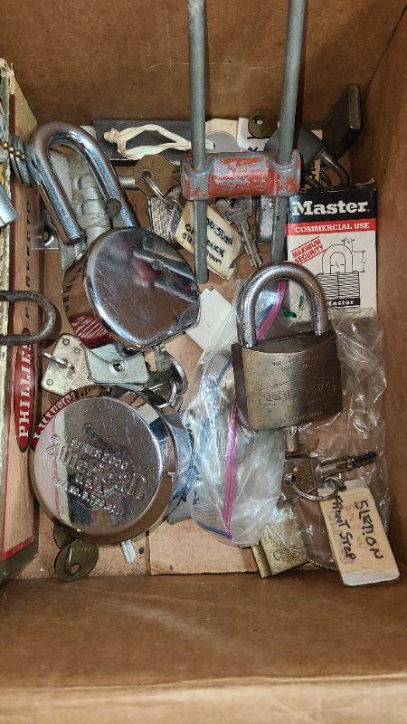 Vintage lot of locks with keys. Please see all pictures for measurements, condition of the item/s, and the contents if listed as a lot. Pictures are the best representation of the item. Thank you for looking and have fun bidding! We appreciate our Treasure Hunters!