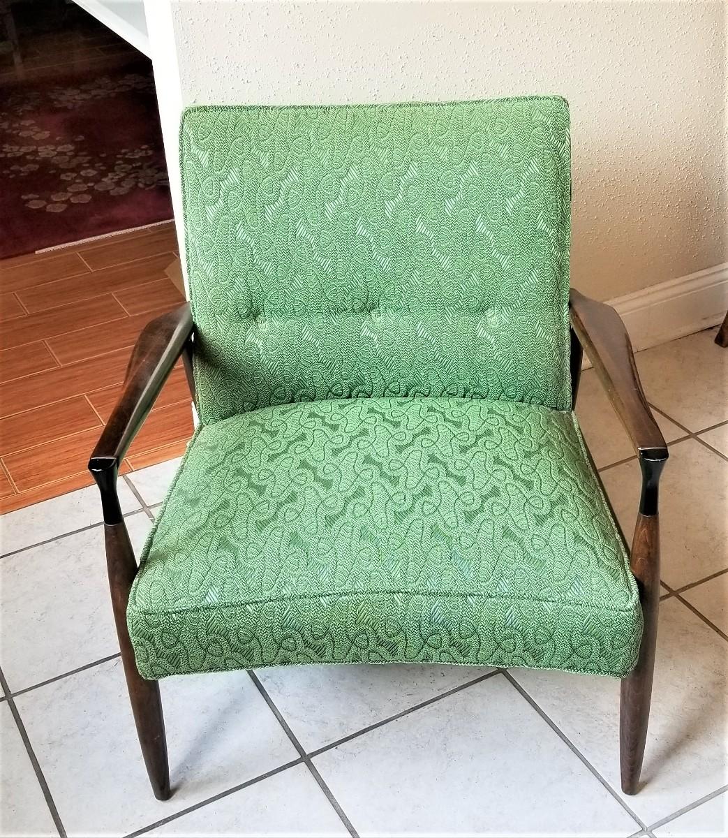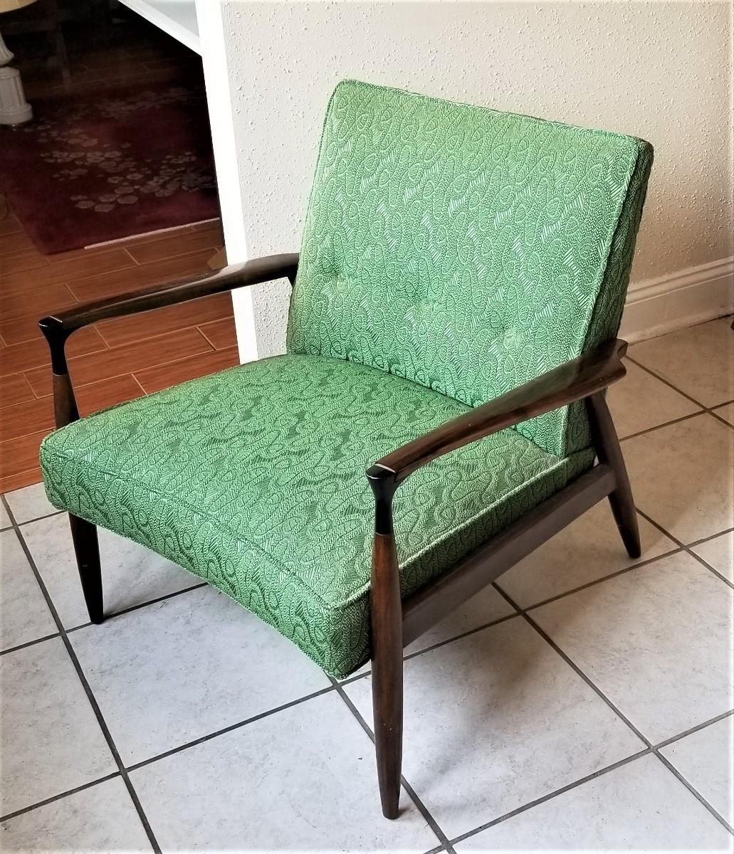 Fantastic all original Mid Century Modern armchair - only gently used. 28" deep, 28.5" across, 29 " tall. Comfy and sturdy. Clean.