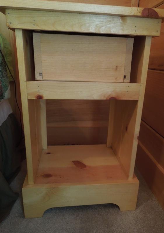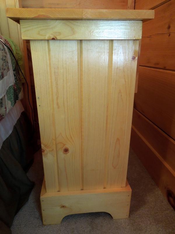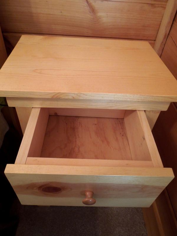 28" x 19" x 14" nice knotty pine wood with light varnish. No rough edges. Matches other natural pine furnishings being sold.