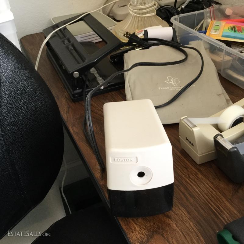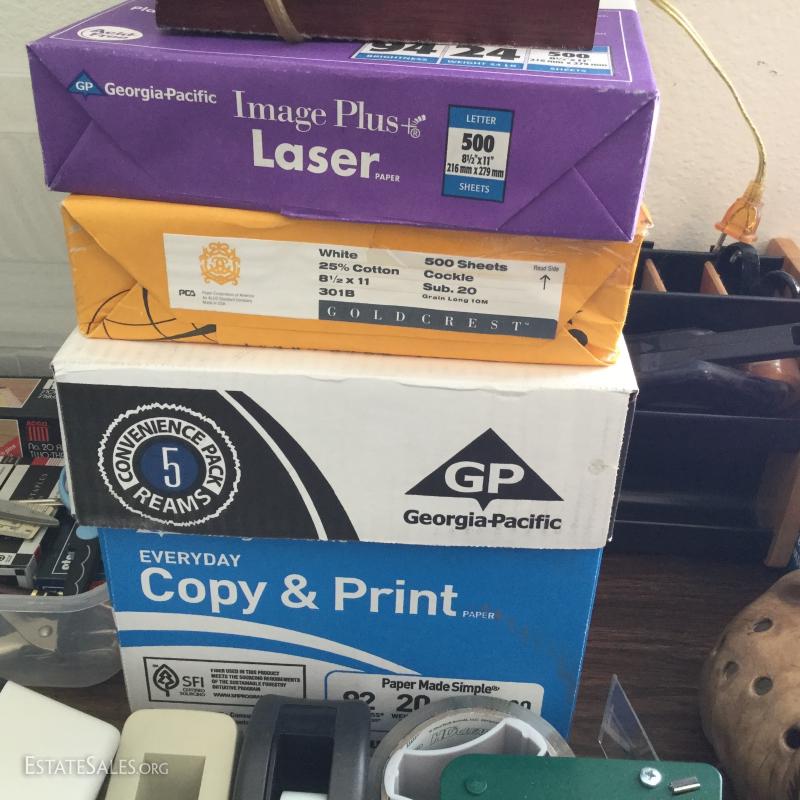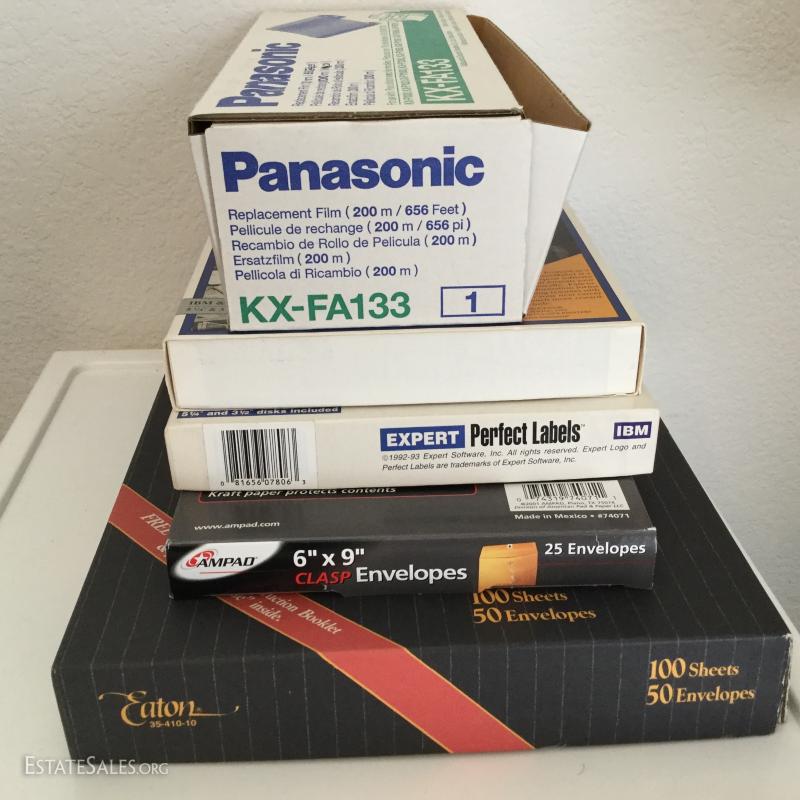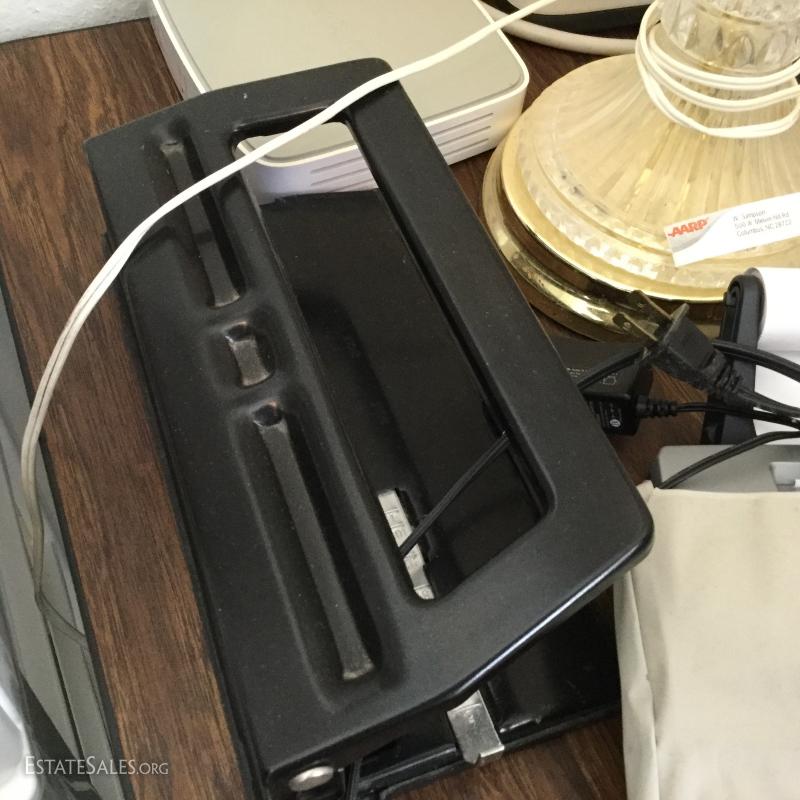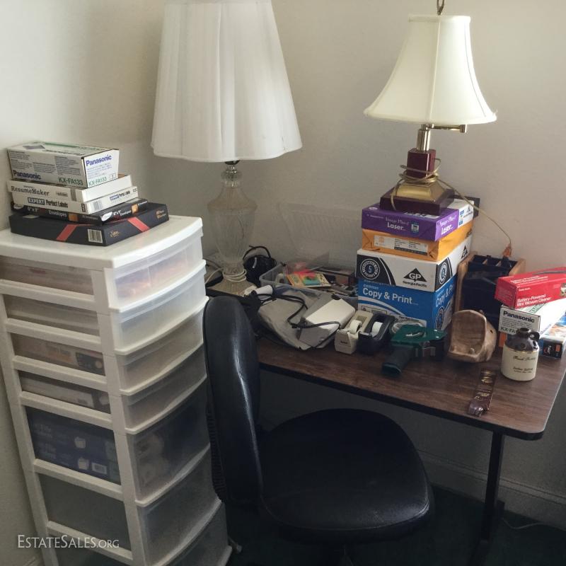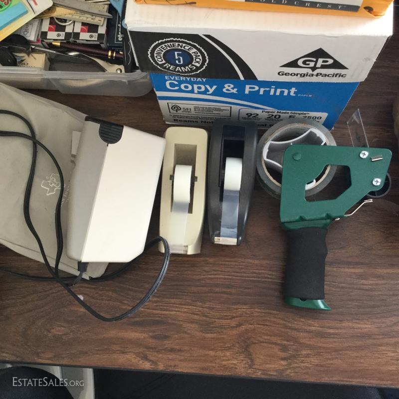 Huge lot of Miscellaneous Office Supplies: Paper, Packing Tape Gun, Office Chair, Tape Dispenser, Envelopes, Labels, Lamps, sears, the electronic communicator II (typewriter), Mini Vacuum and much more.