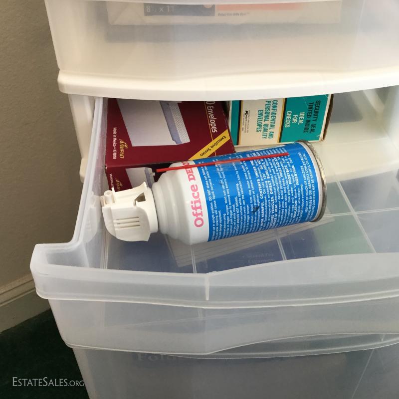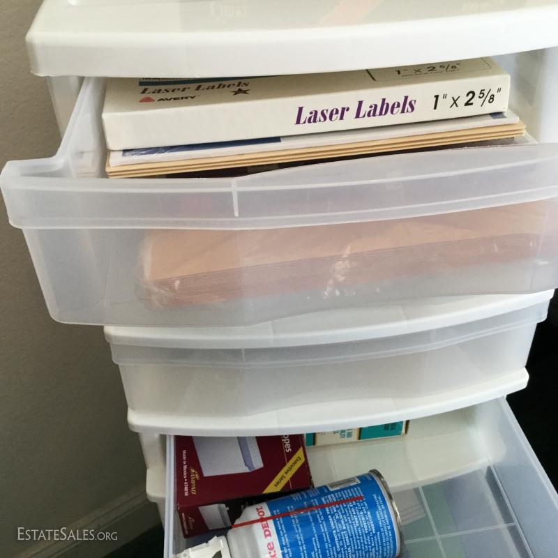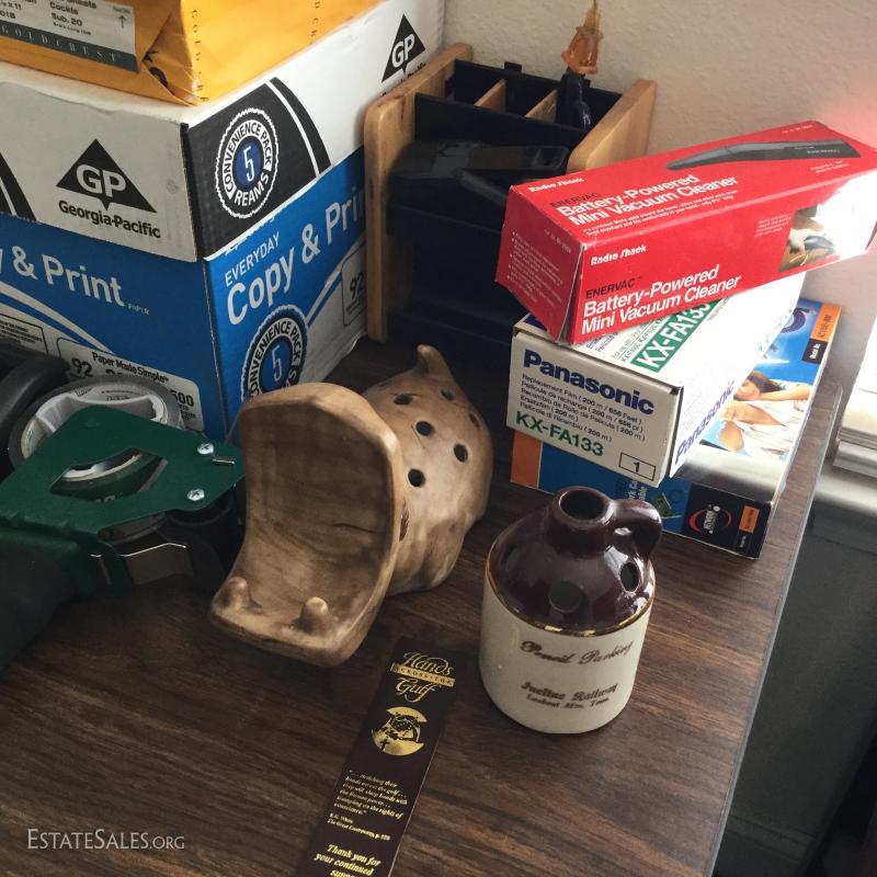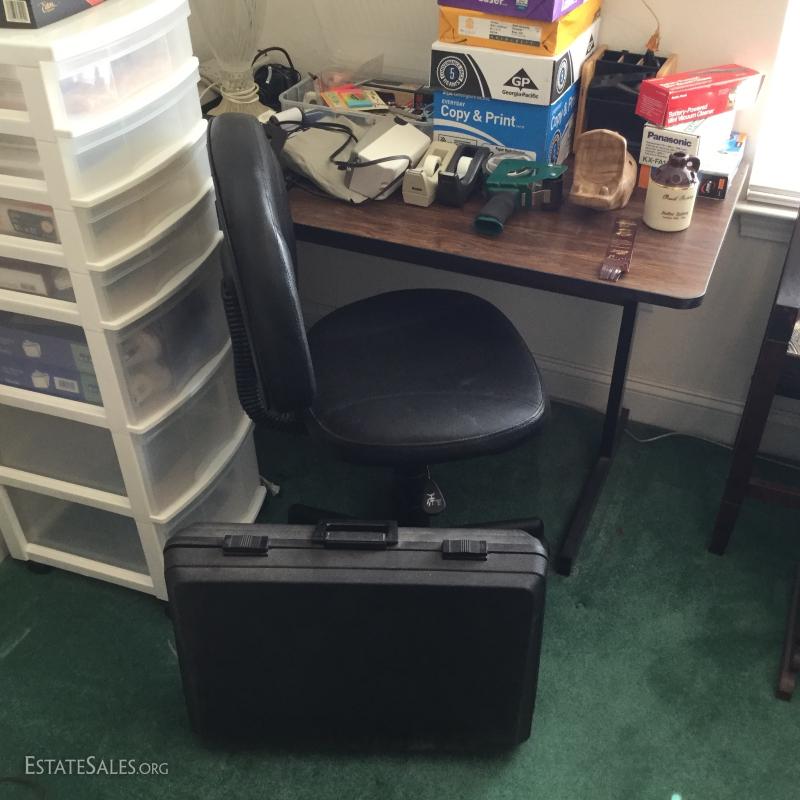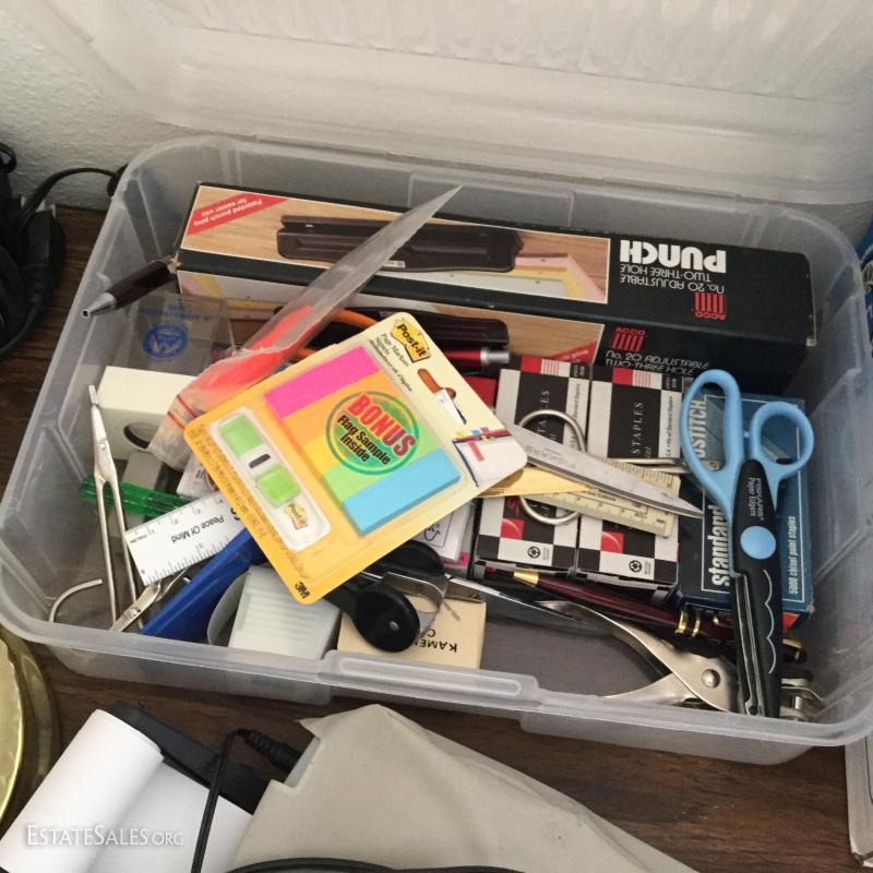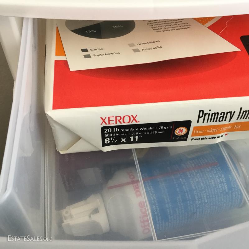 Huge lot of Miscellaneous Office Supplies: Paper, Packing Tape Gun, Office Chair, Tape Dispenser, Envelopes, Labels, Lamps, sears, the electronic communicator II (typewriter), Mini Vacuum and much more.