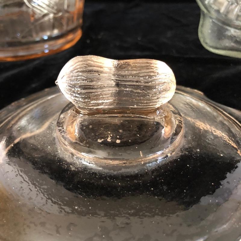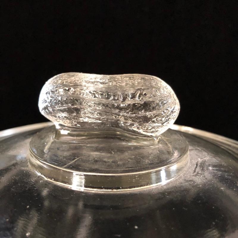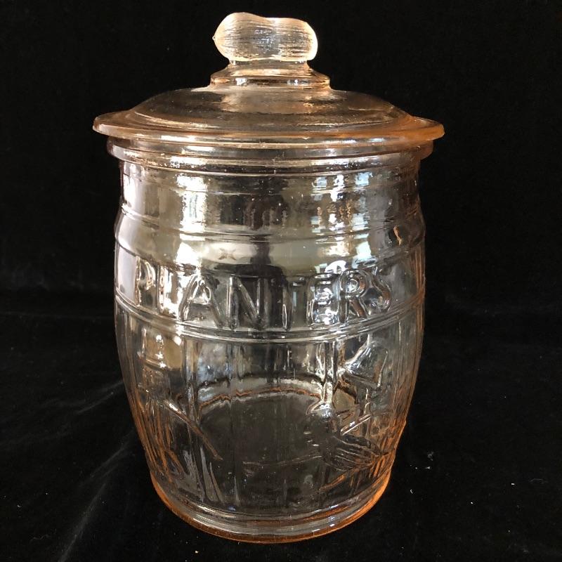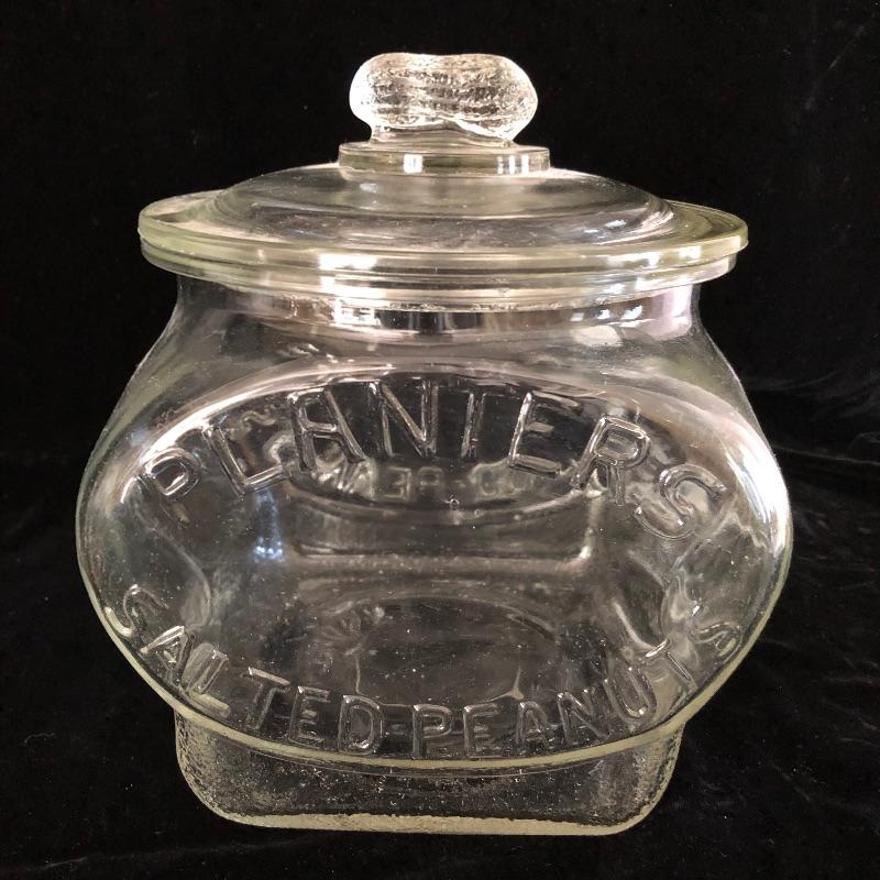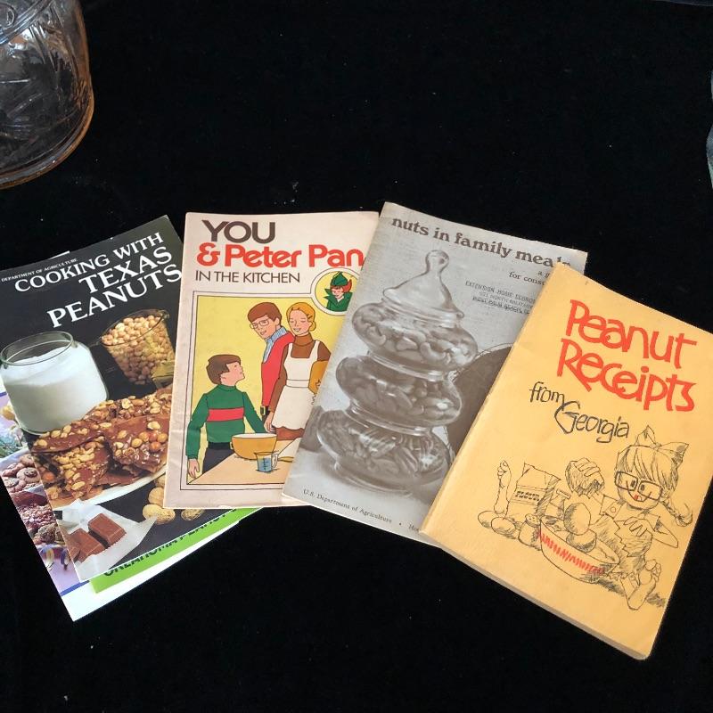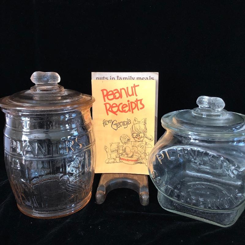 You would be nuts not to take this lot home! Two large glass planters jars with lids here. The taller jar is colored, measures 10” tall and does have a chip on the lid. The other jar also has a few minor blemishes on the lid, see the last image. We have thrown in some peanut recipe books as well.