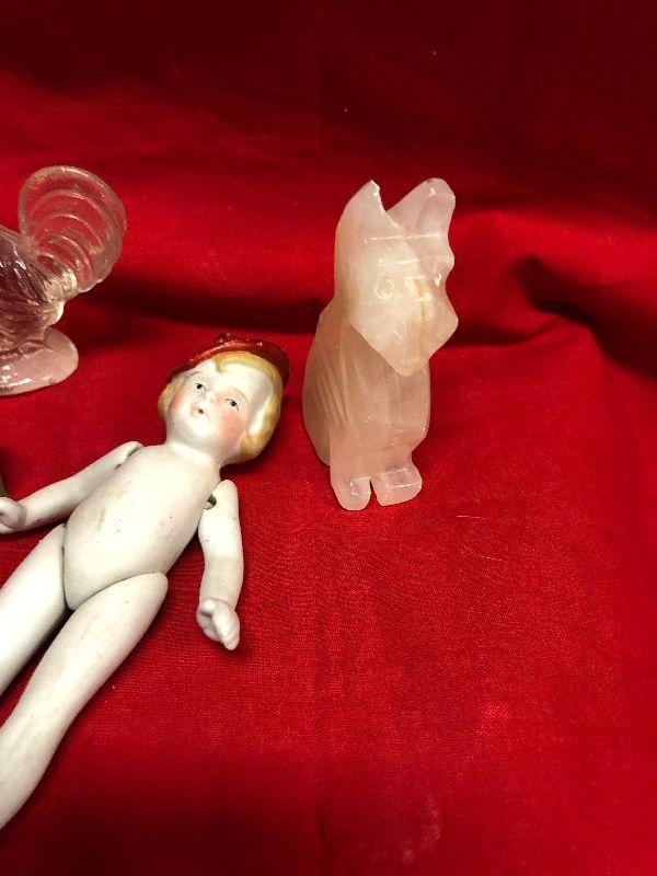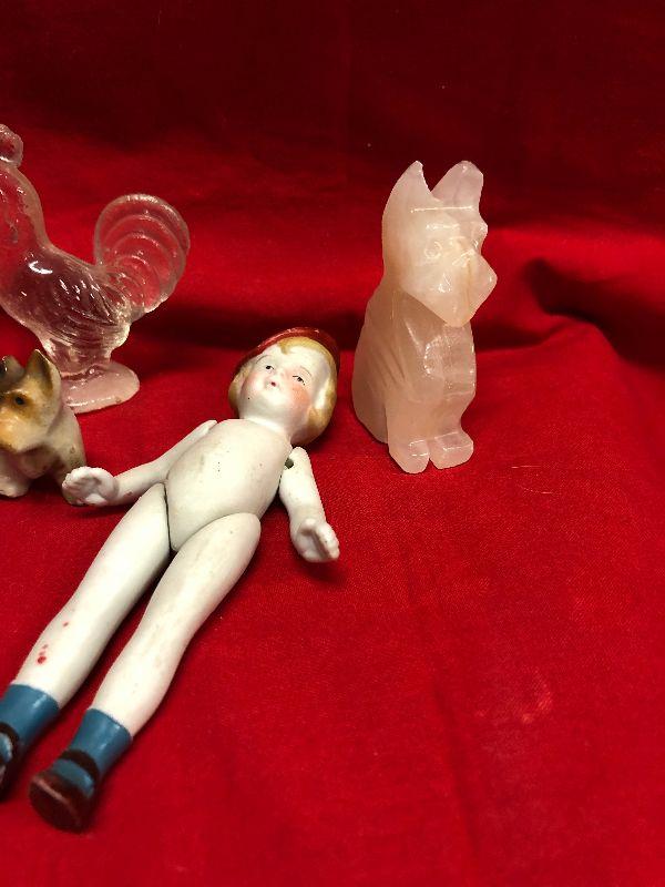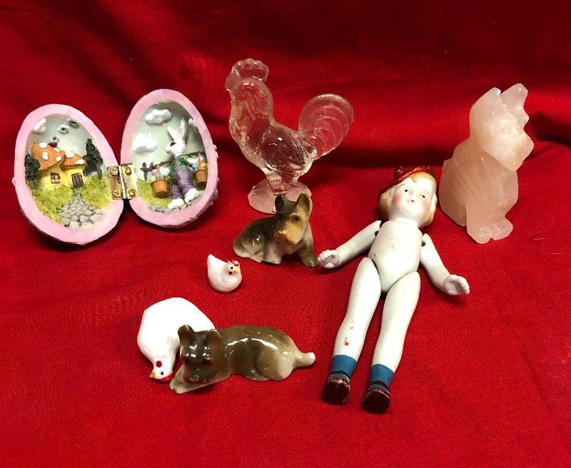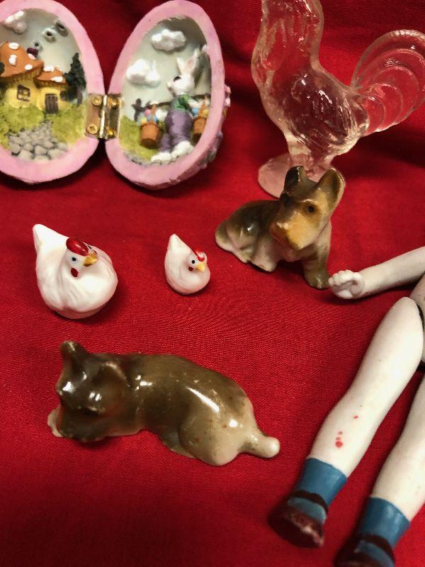 5" Bisque Dolls, animals, chickens, ceramic and glass
