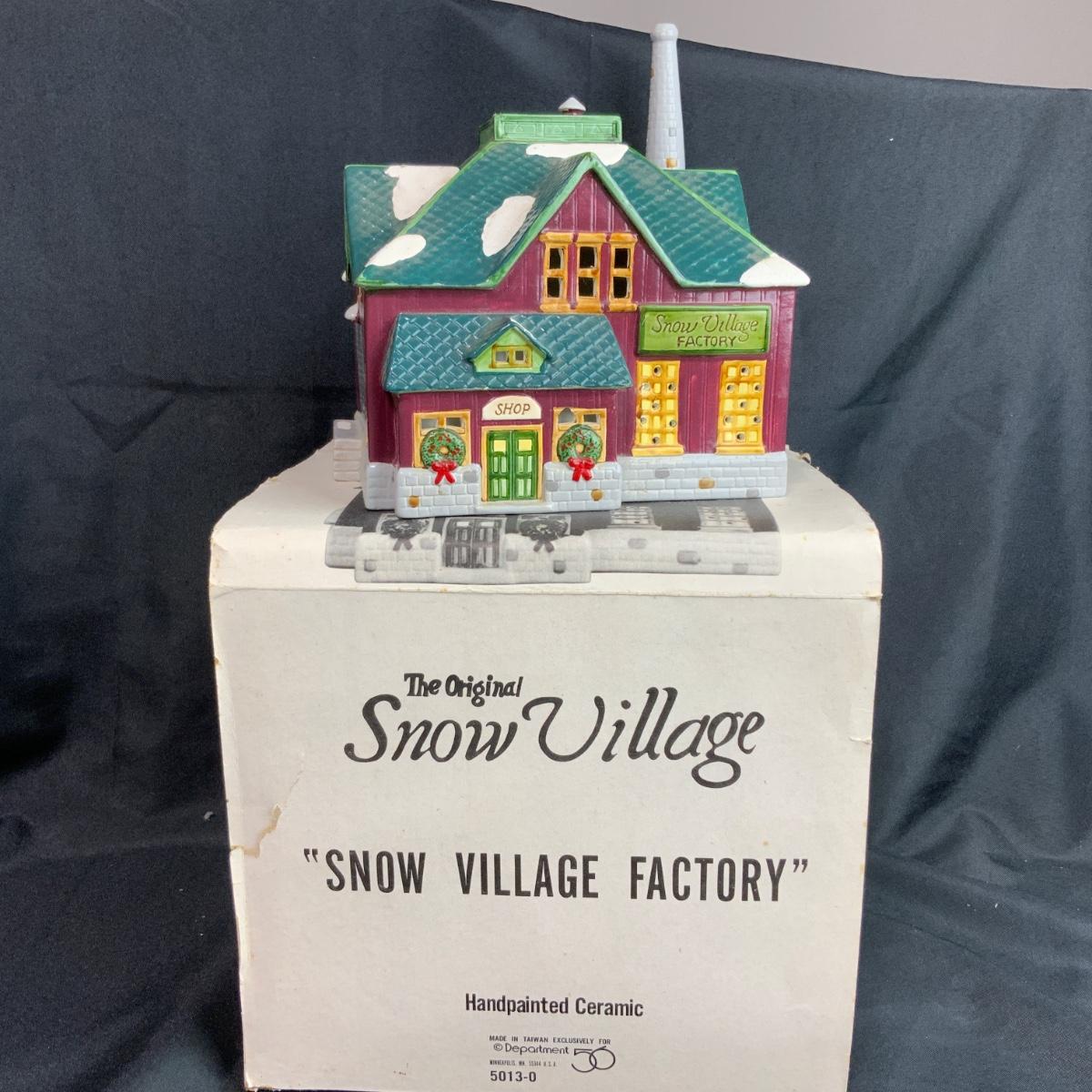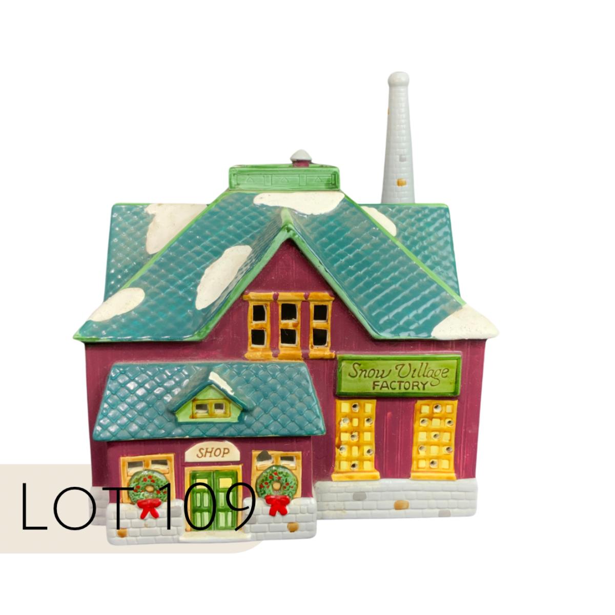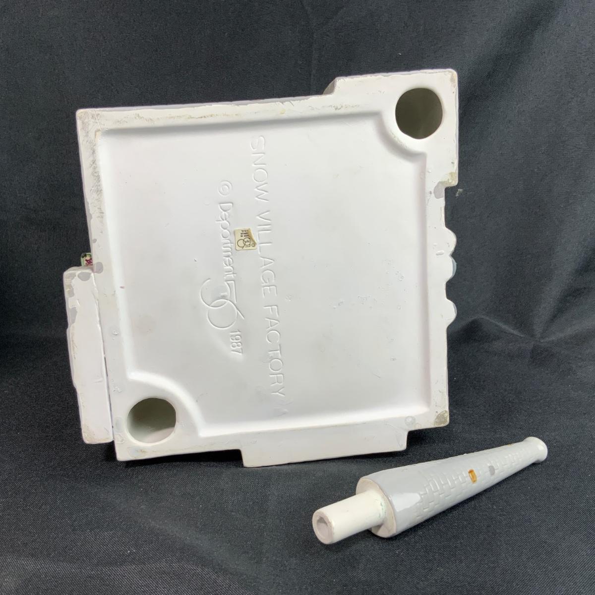 Department 56 Snow Village “Snow Village Factory”. There isn’t much of an indication as to what they’re producing here, and I doubt they’re doing much business since their smokestack is so easily removable. Piece is in good used condition. Please see photos for details and condition. ::: Shipping is available on this lot. If you require shipping you must let us know at the close of the auction. We will coordinate with you after the item has been won. Shipping fees will include insurance up to or exceeding the value of all items being mailed. If you have any questions regarding this lot please contact the auctioneer either via this website, by direct email or by phone. PICK UP TIMES and other important information can be found in the TERMS and DESCRIPTION of the auction. Please take a look for pertinent information. Thanks! Any condition statement is given as a courtesy to a client, is an opinion, and should not be treated as a statement of fact. Reference to condition written, oral or within a condition report shall not be regarded as a full account of condition and may not include all defects, alterations, or restorations. Absence of a condition report does not imply a lot is flawless or lacking imperfections or damage. Katherine’s Auction & Appraisal Service shall have no responsibility for any error or omission. Returns shall not be accepted on the basis of condition.