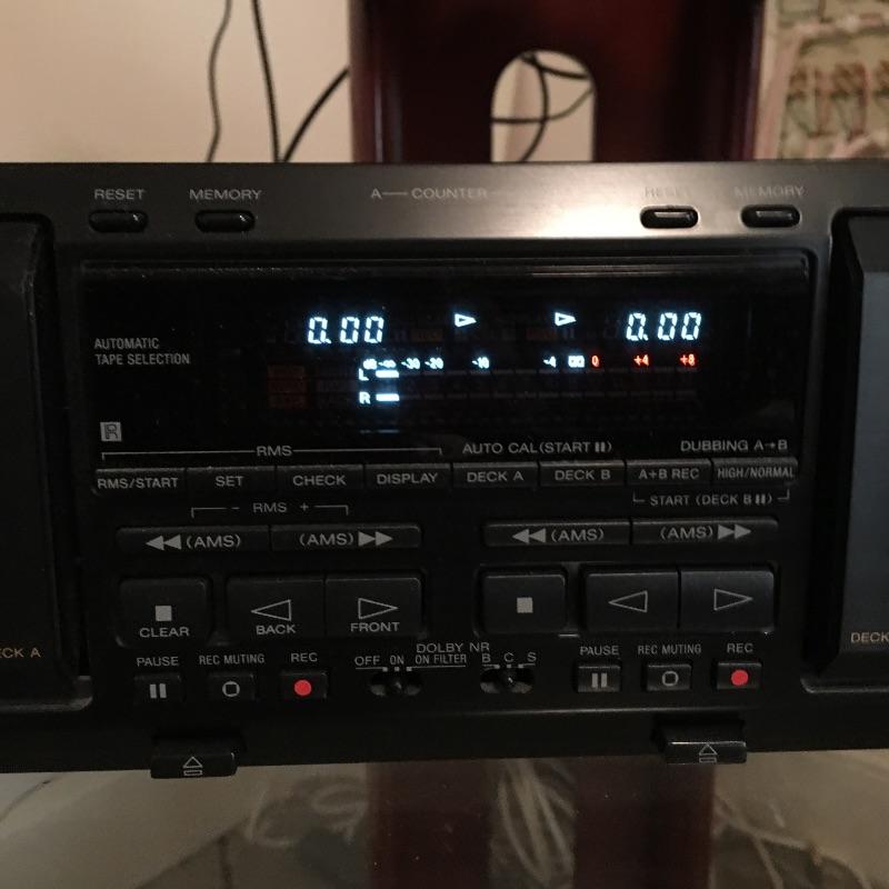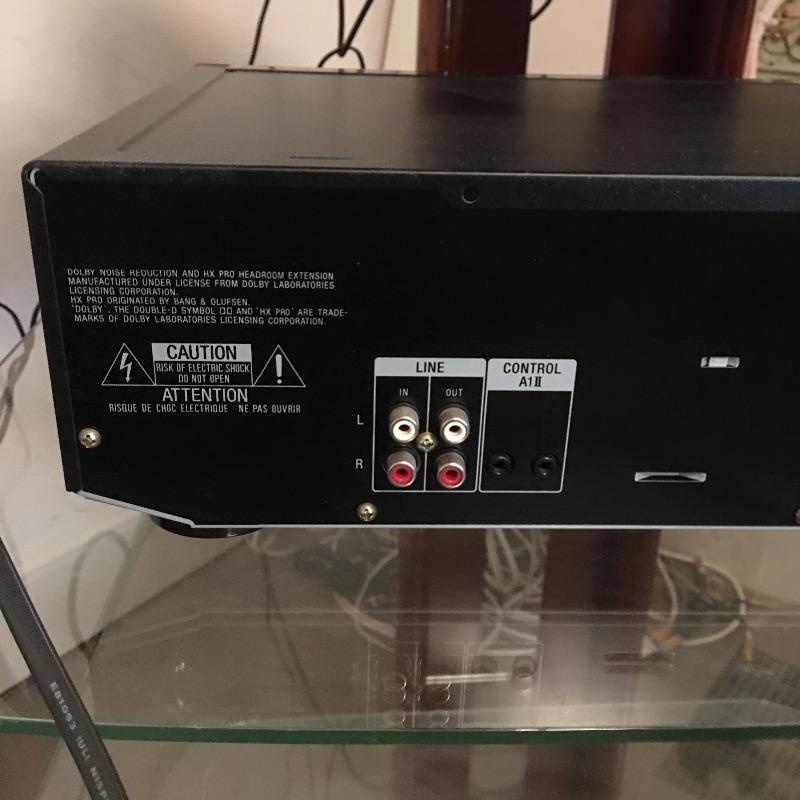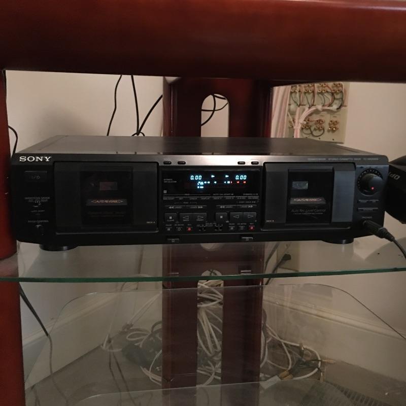 Sony dual cassette deck model # TC-WE835S with remote and Optimus pro 40 headphones. Deck powers on but was not tested as it was not hooked up to receiver. Headphones ear foam is decomposing.