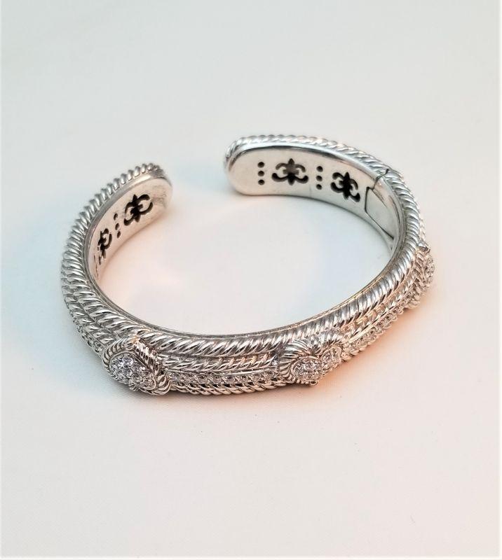 Lot #109 Sterling Silver Cuff Bracelet - Judith Ripka - set with CZs - heart motif
