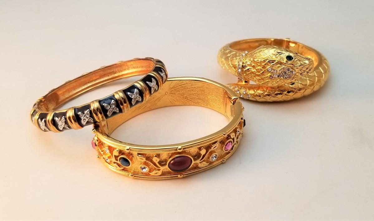 Lot #109 Three lovely Hinged Costume Bracelets - one marked MVH