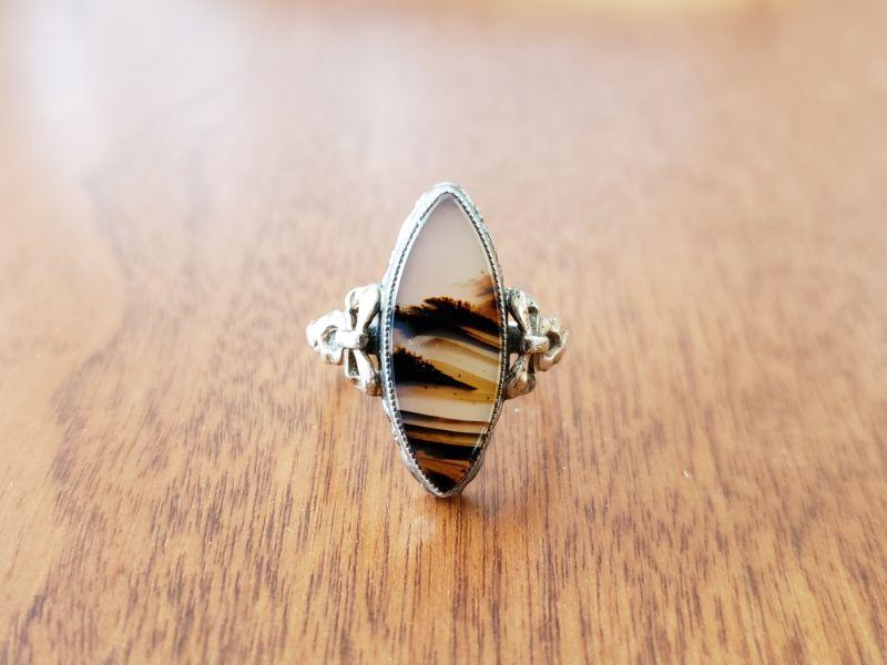 Lot 109: Vintage 10k GOLD & Sterling Women's Agate Ring SIZE 7