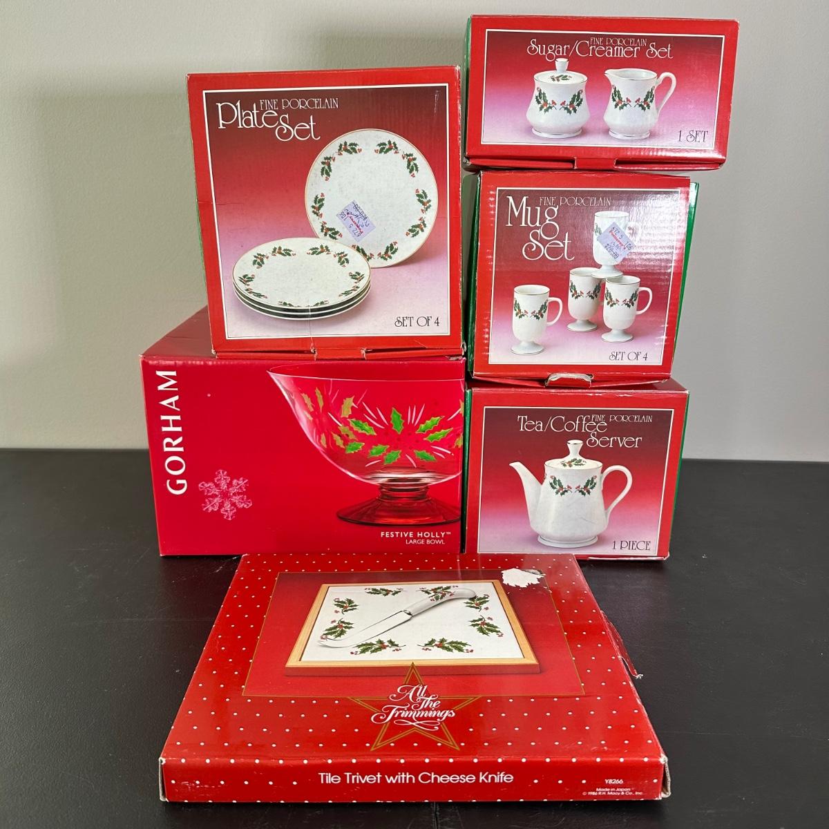 LOT 19L: Christmas Themed Kitchen Decor, China, Glass & More - Gorham, Sakura, Spectrum & More