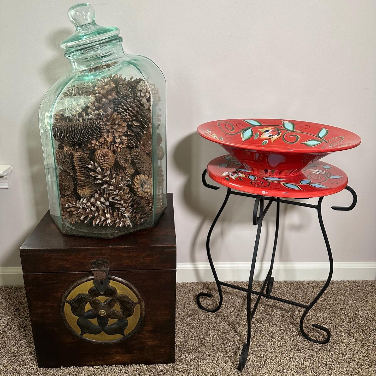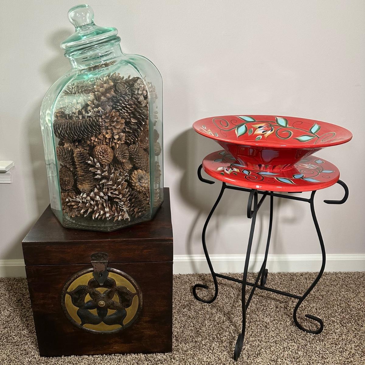 LOT 42L: Beautiful Home Decor - Plant Stand, Glass Jar & More