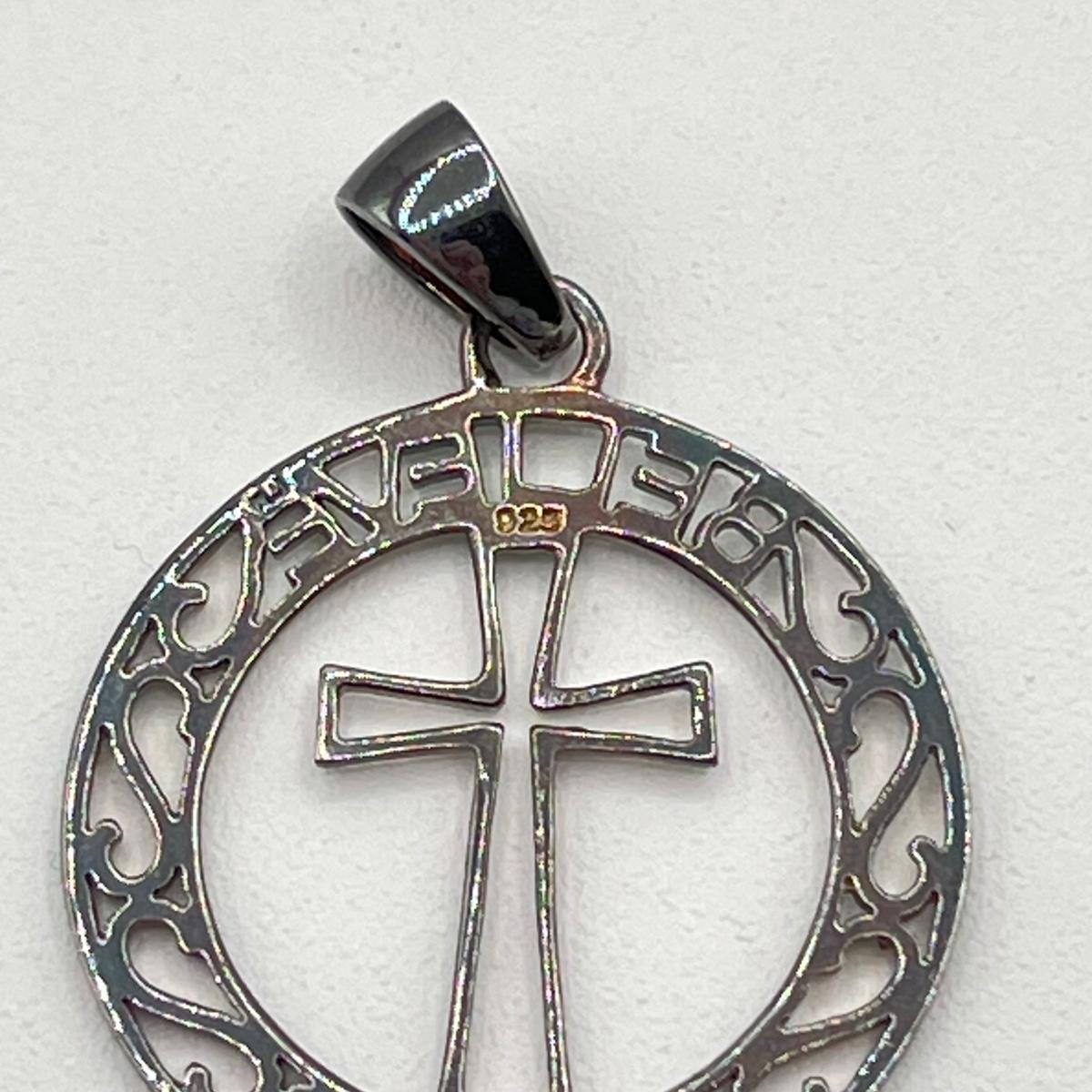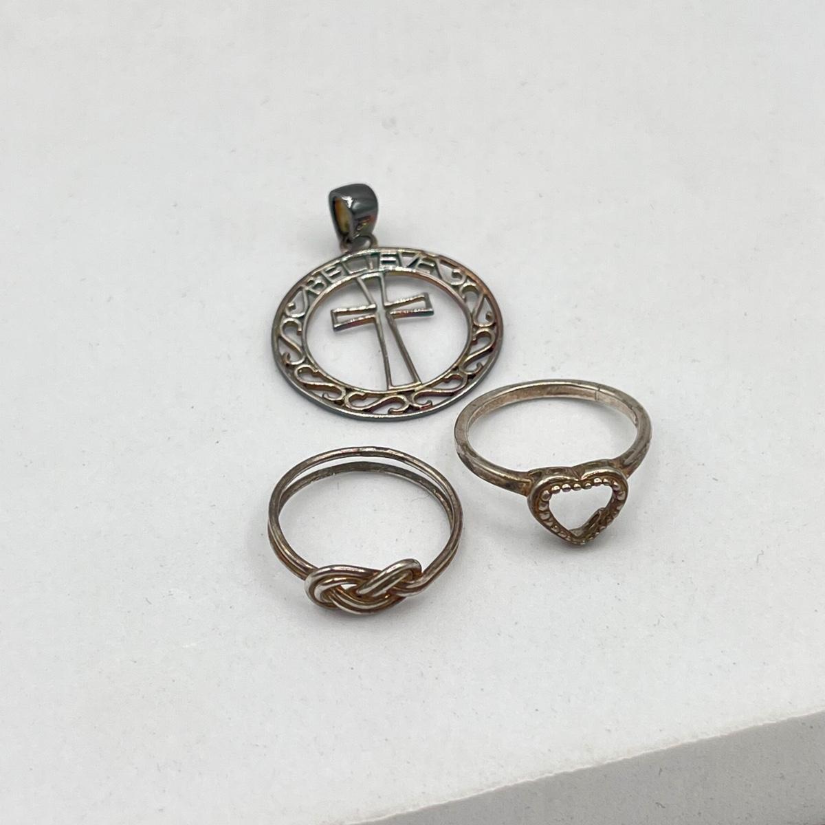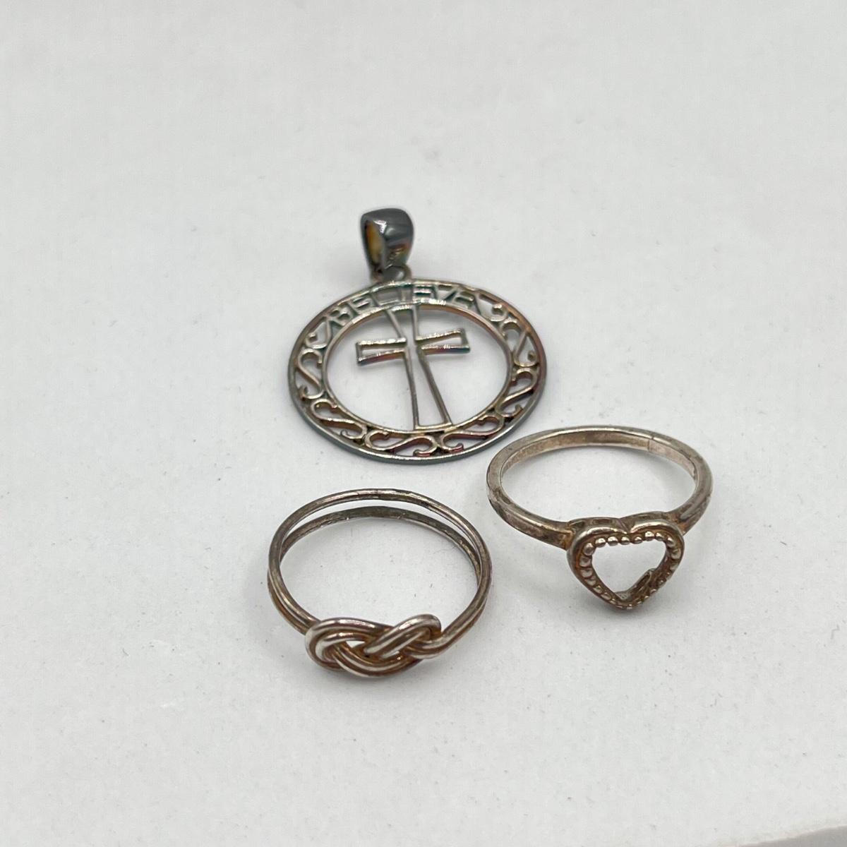 LOT 90J: Sterling Silver Jewelry - Two Size 6 Rings and "Believe" Cross Pendant