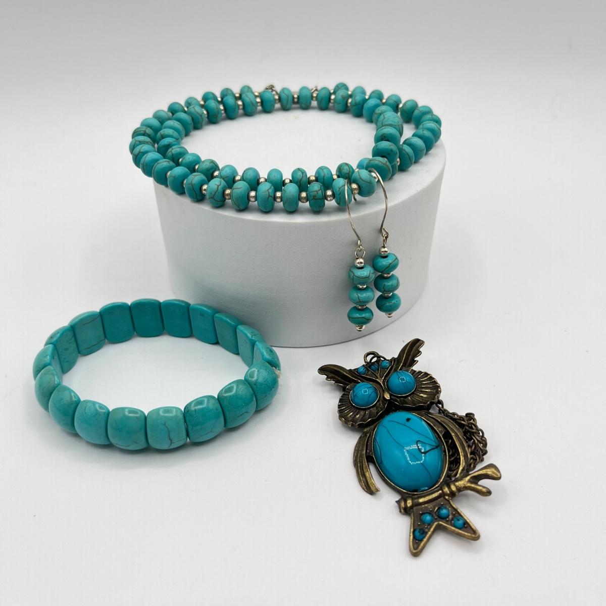 LOT 93J: Necklace, Bracelet and Earrings Set + Owl Pendant
