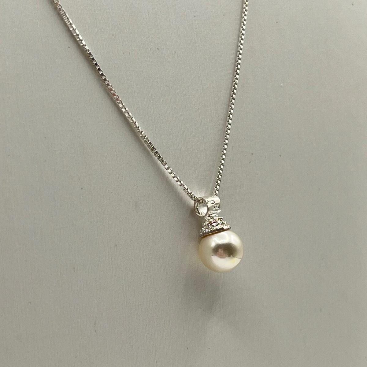 LOT 98J: Sterling Silver 18" Necklace w/ Cultured Pearl Pendant