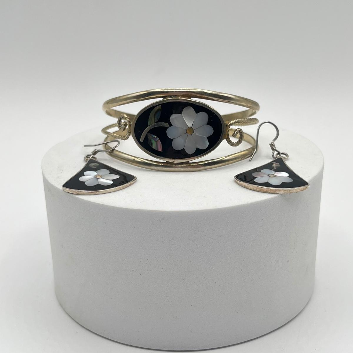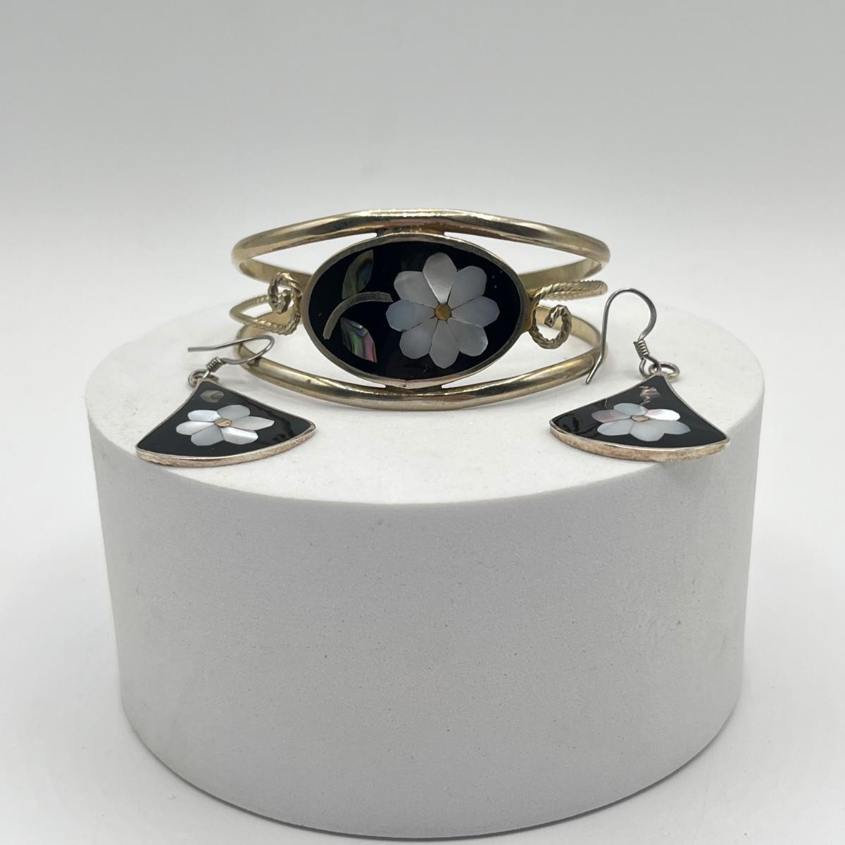 LOT 102J: Silver Bracelet and Earrings - Mexico