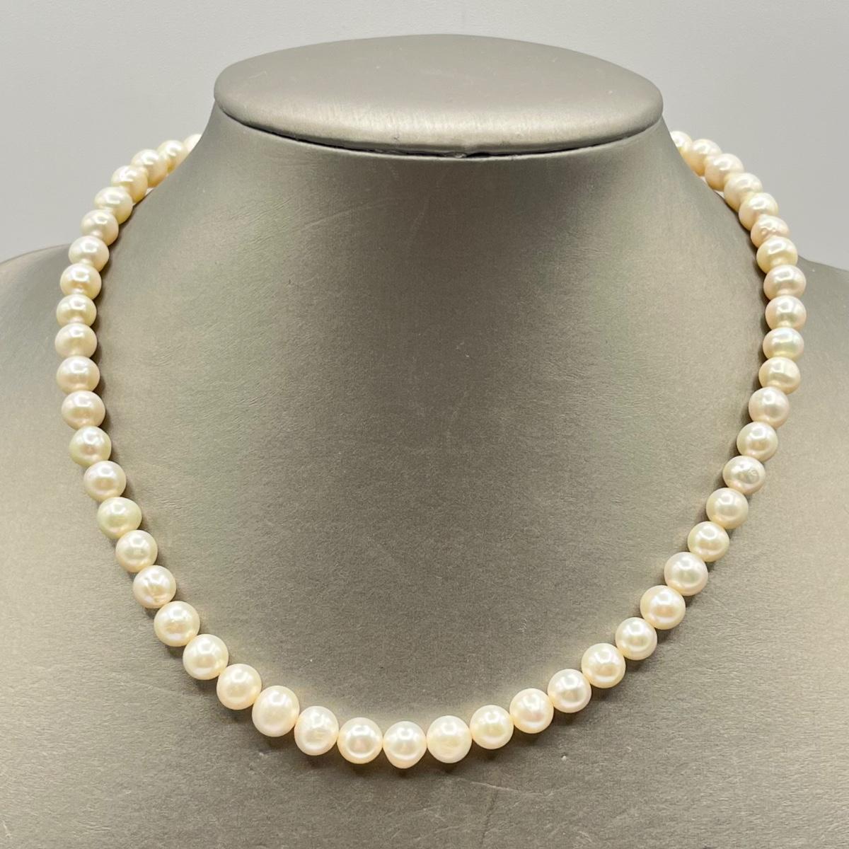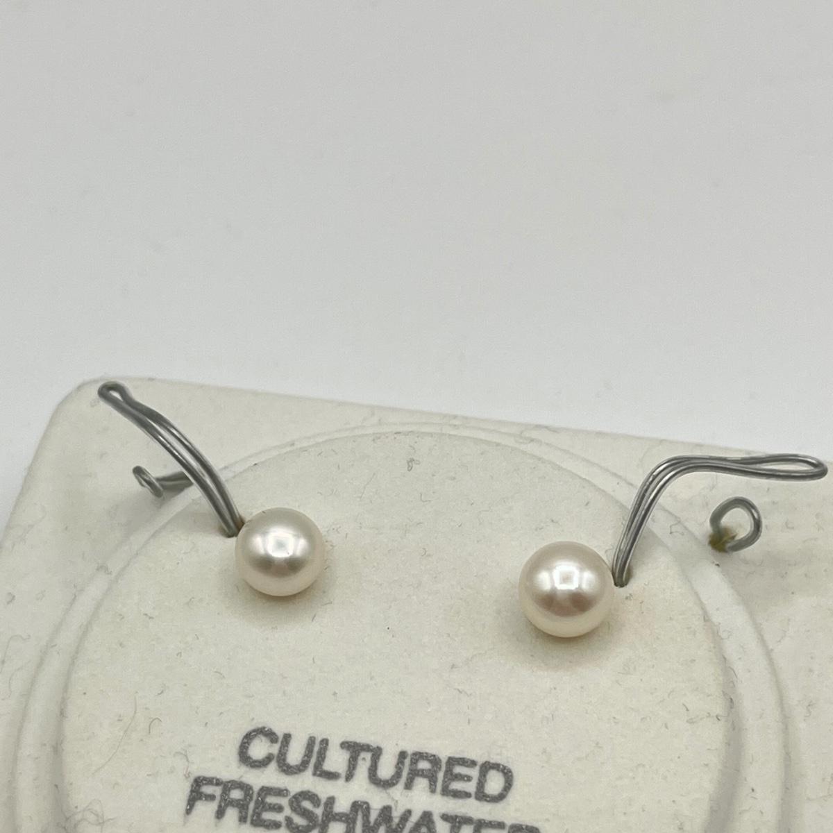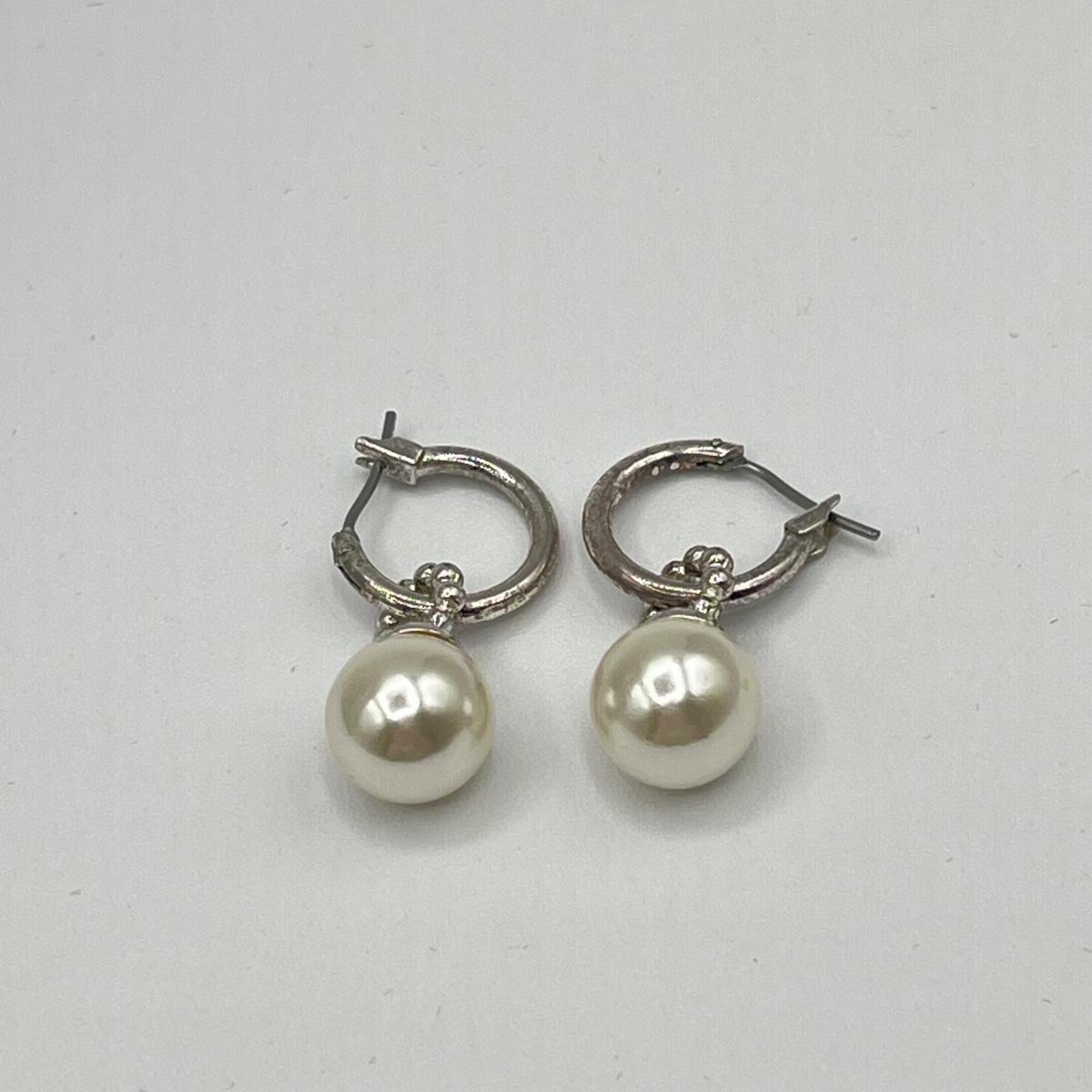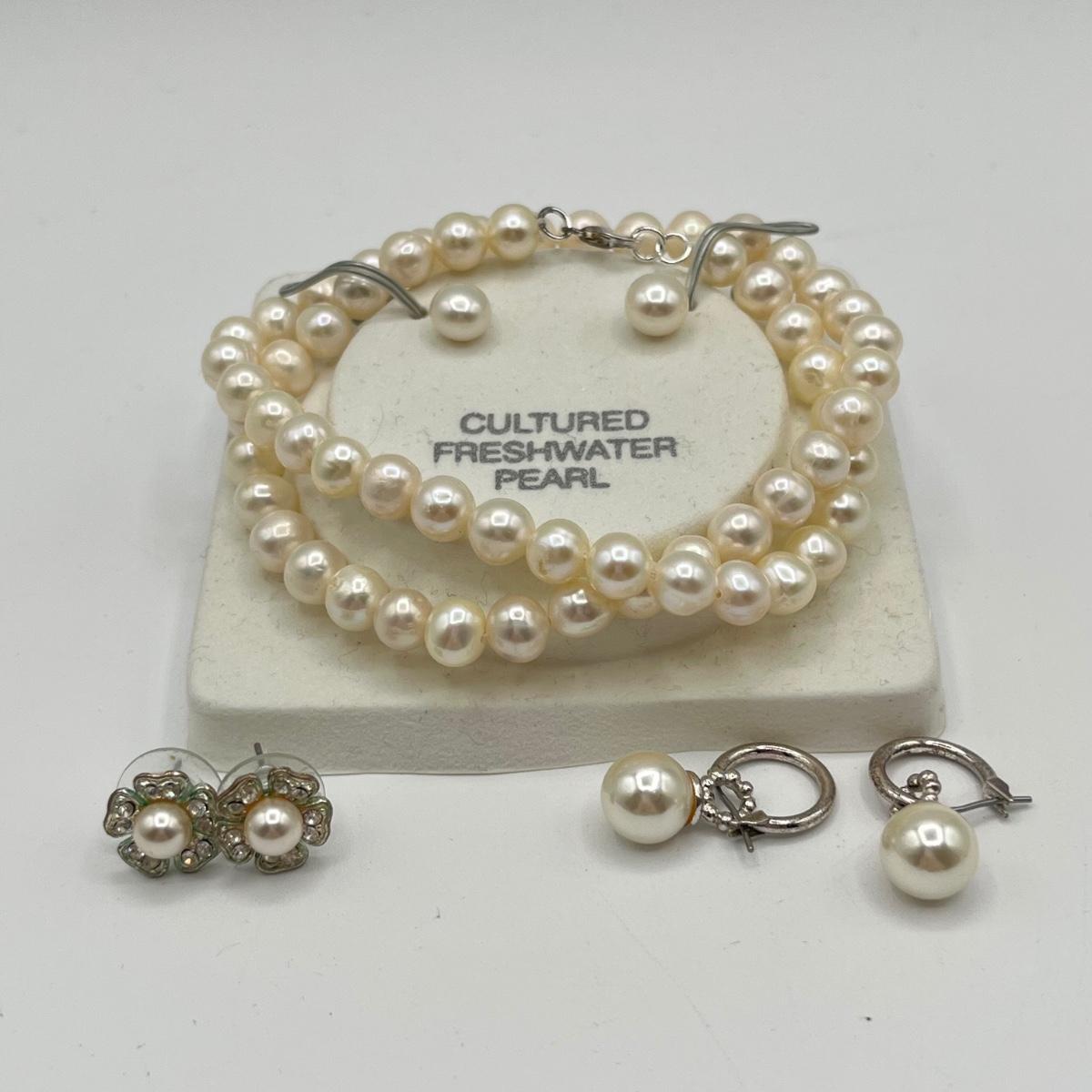 LOT 115J: Freshwater Cultured Pearl Earrings + Two Pairs Faux Pearl Earrings and 17" Faux Pearl Necklace