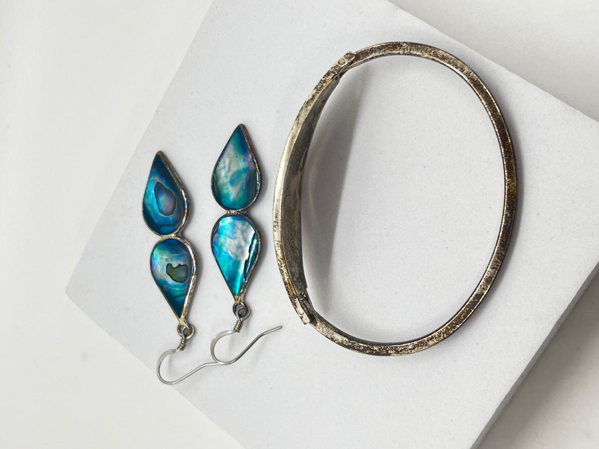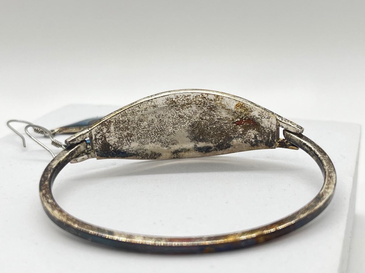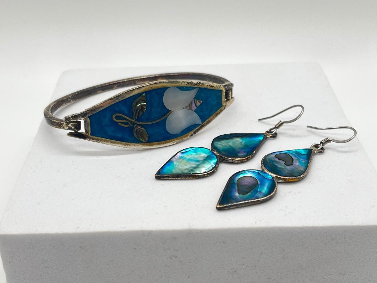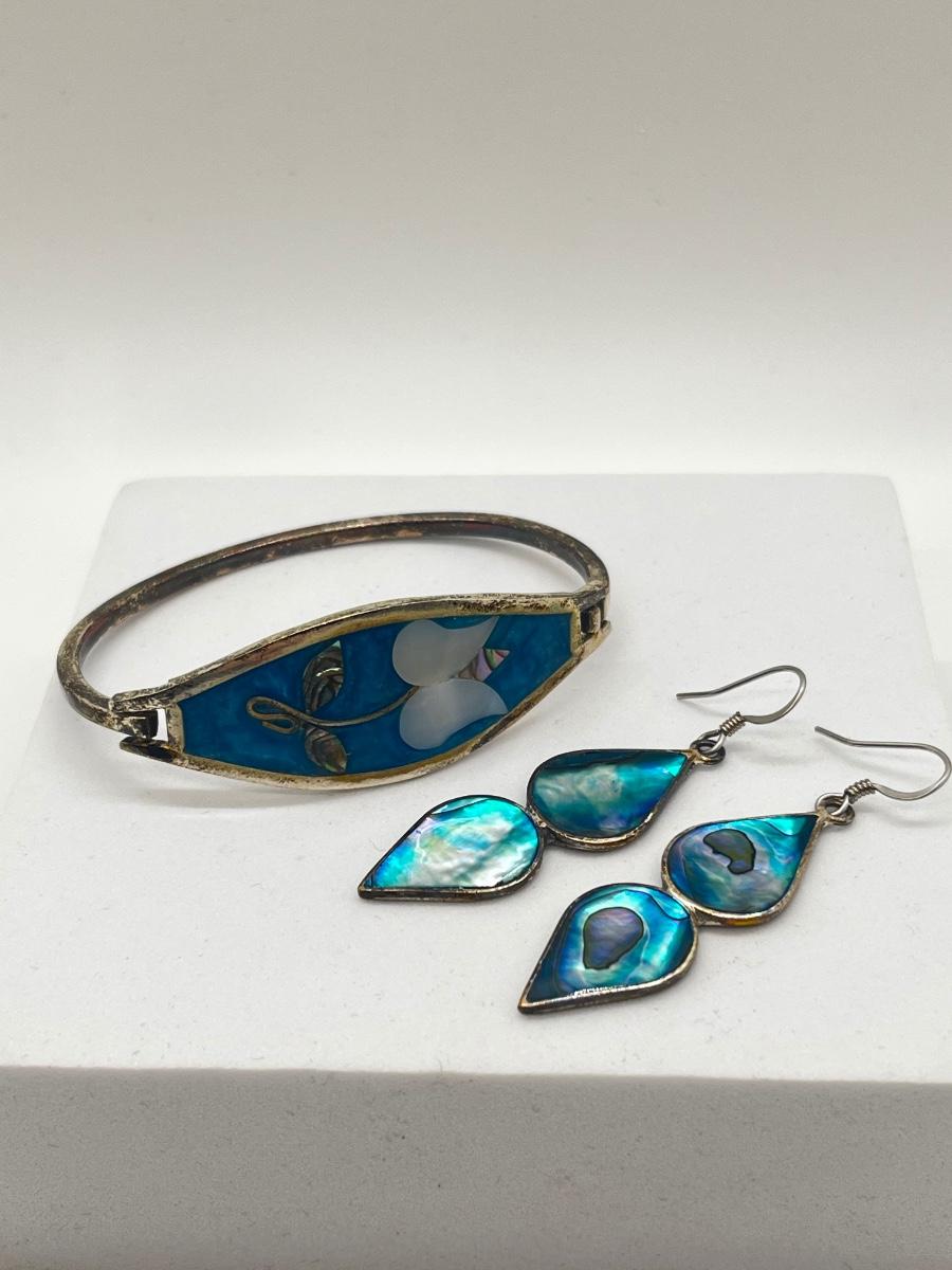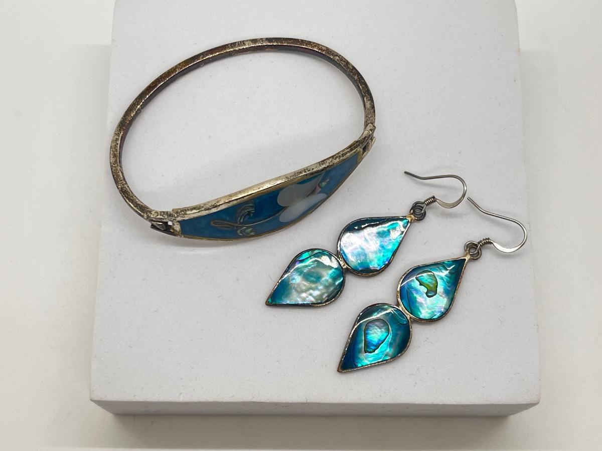 LOT 122J: Silver Bracelet + Earrings Marked Alpaca Mexico