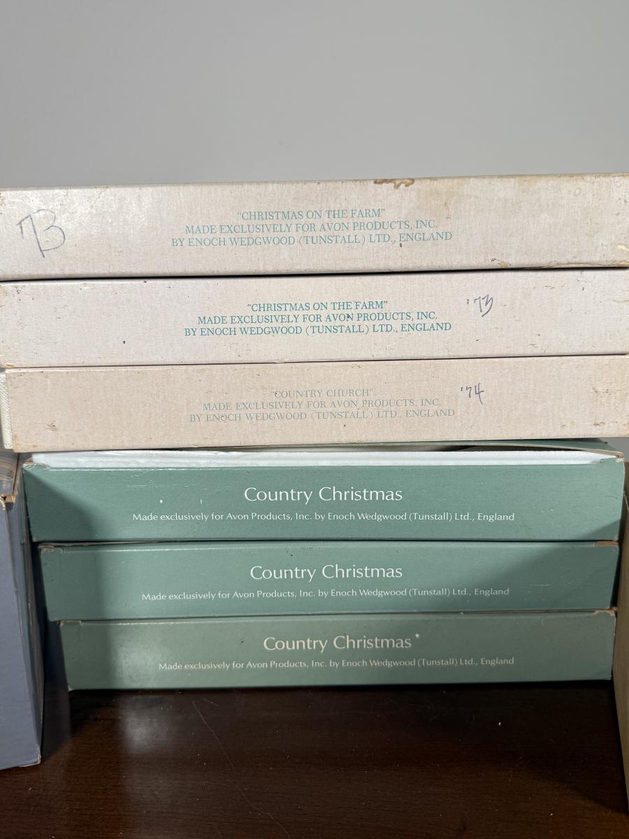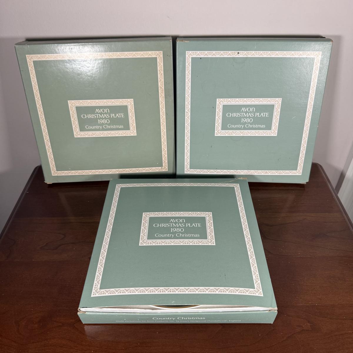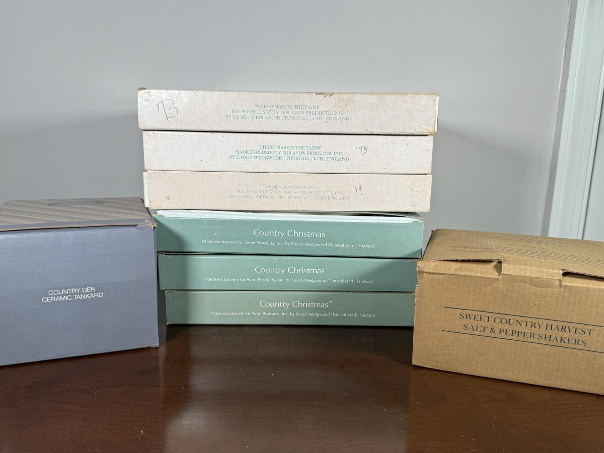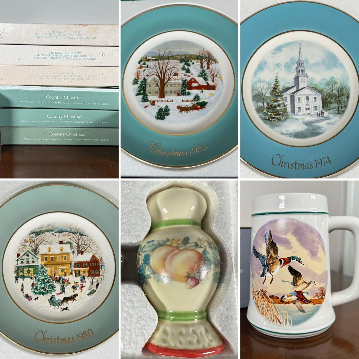 LOT 185L: Avon - Vintage Christmas Plates, Sweet Country Harvest S&P Shakers & Country Den Ceramic Tankard - all w/ Boxes