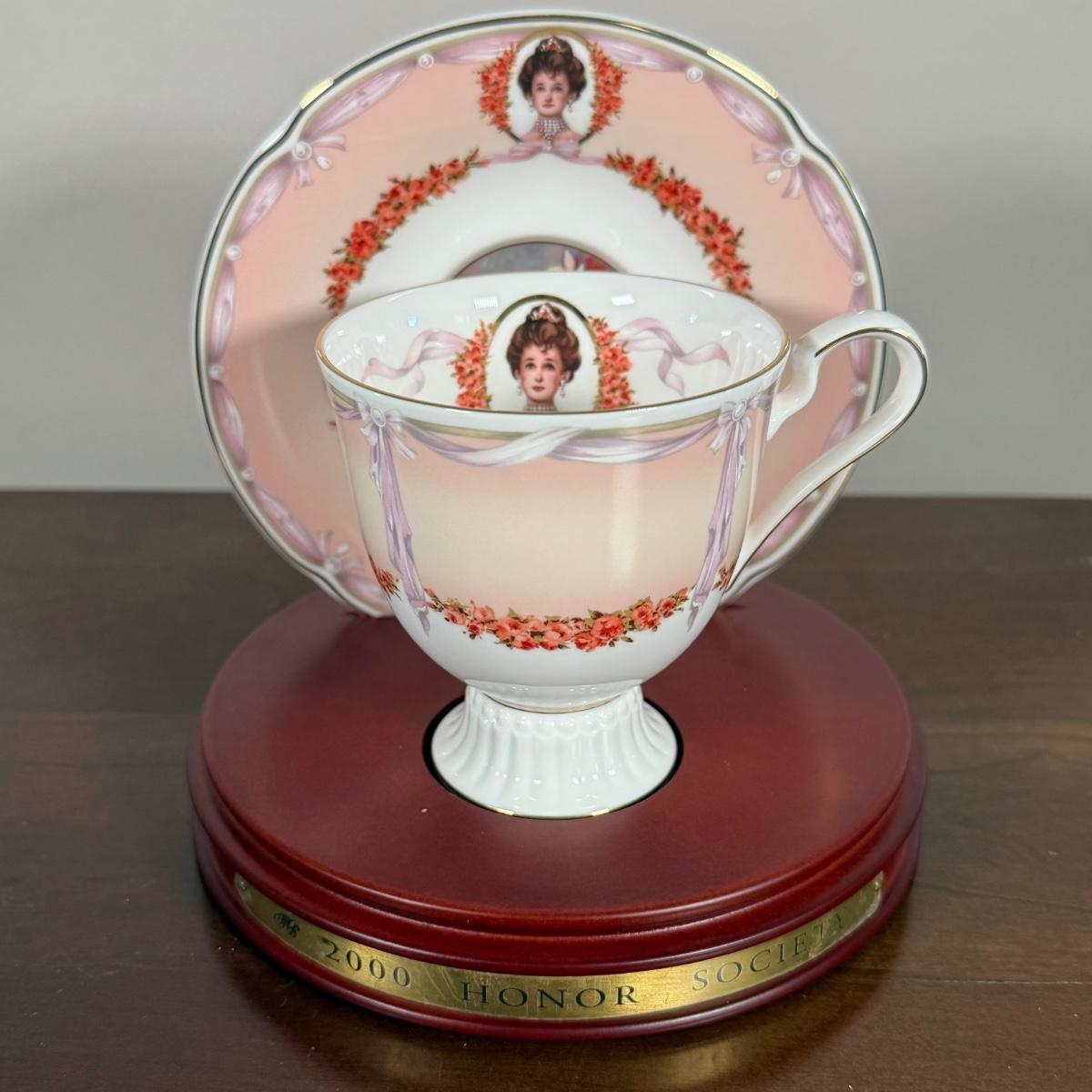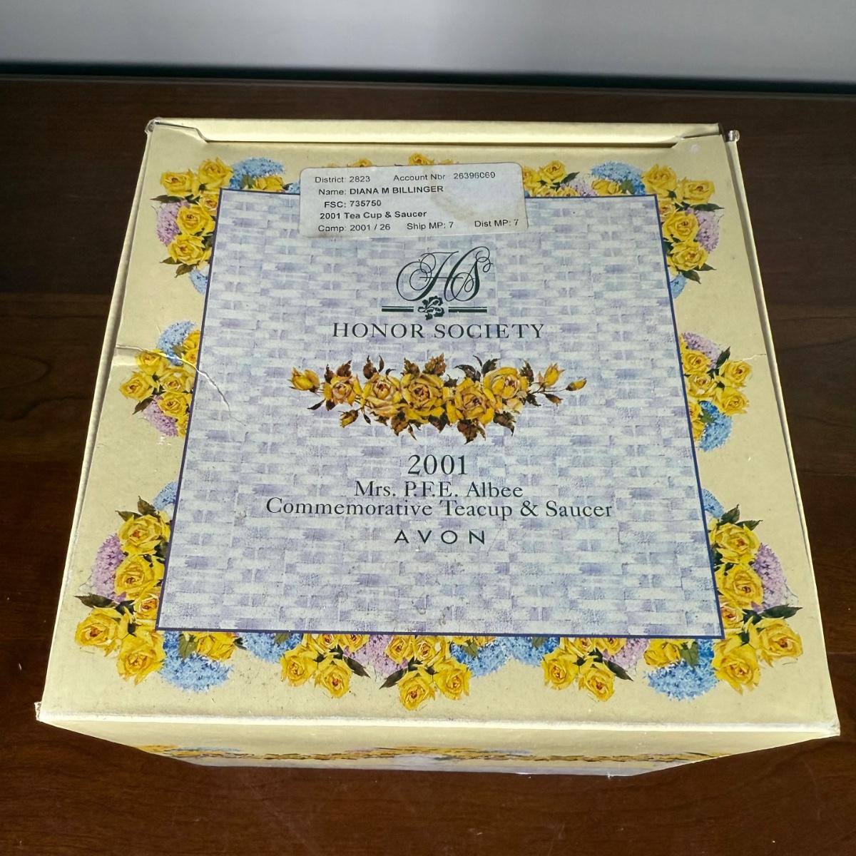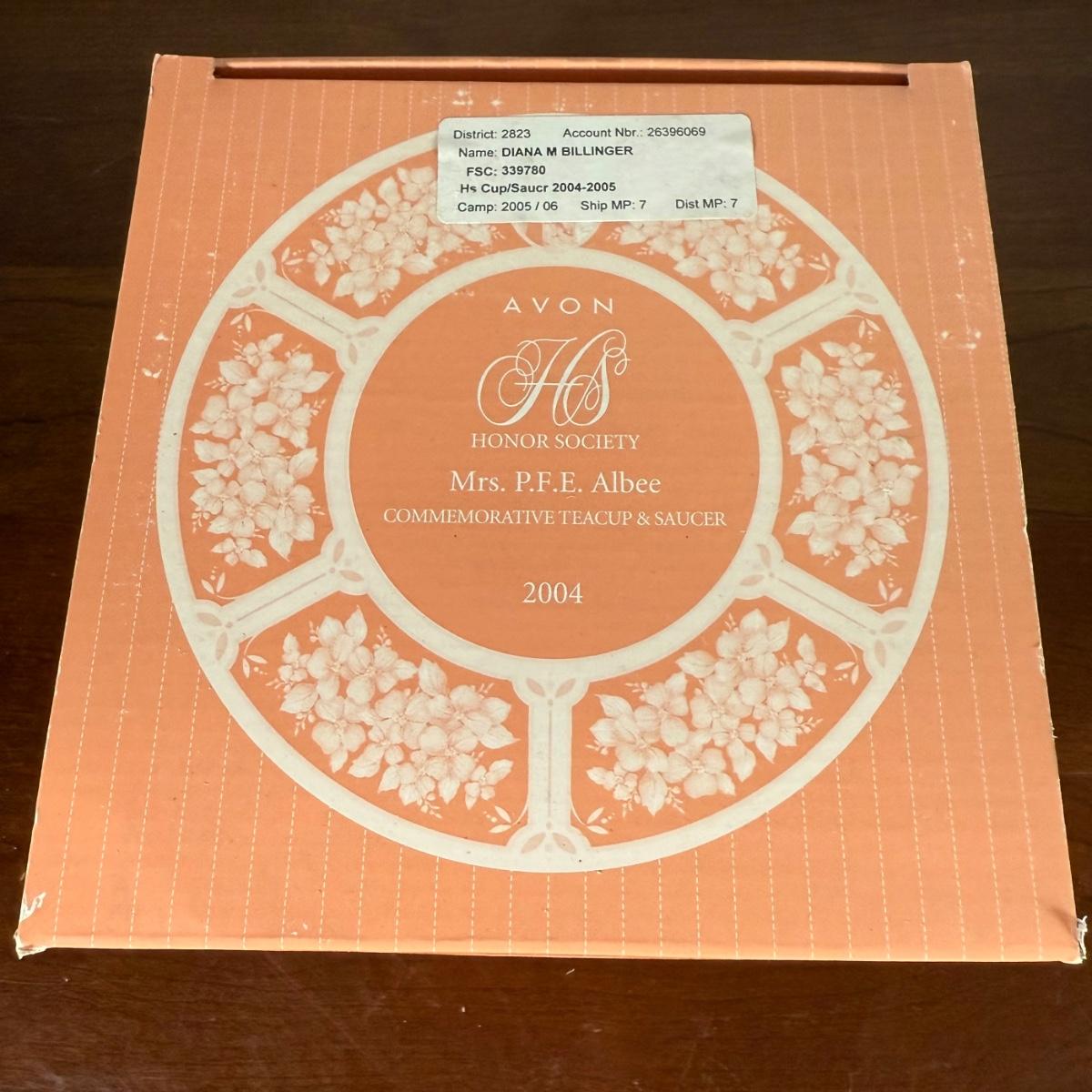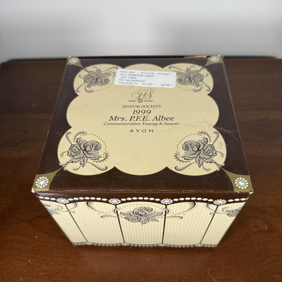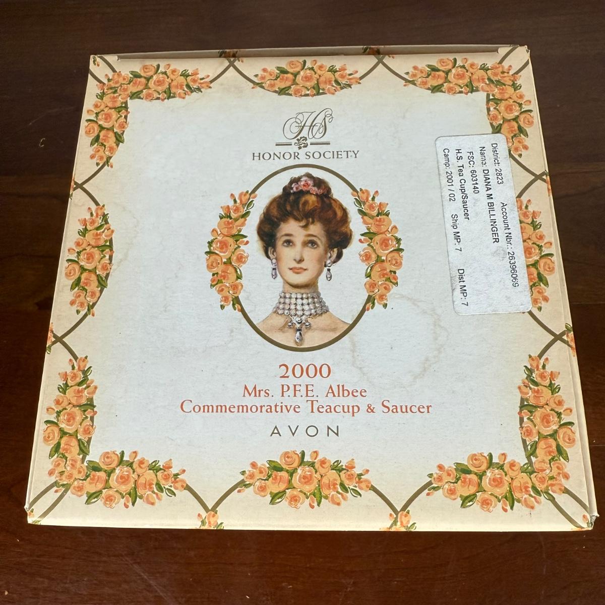 LOT 186L: Avon Honor Society Mrs. P.F.E. Albee Commemorative Tea Cup & Saucer Sets w/ Boxes - 1998-2001, 2004