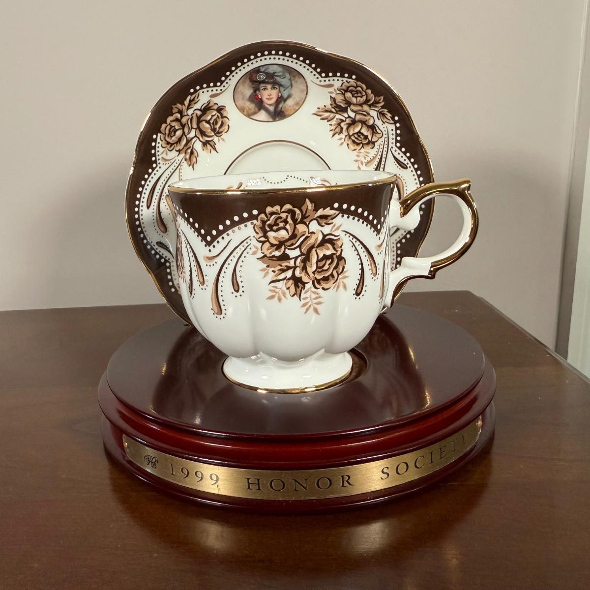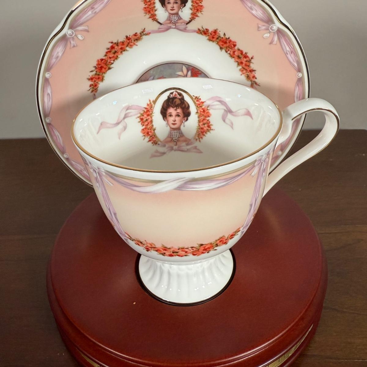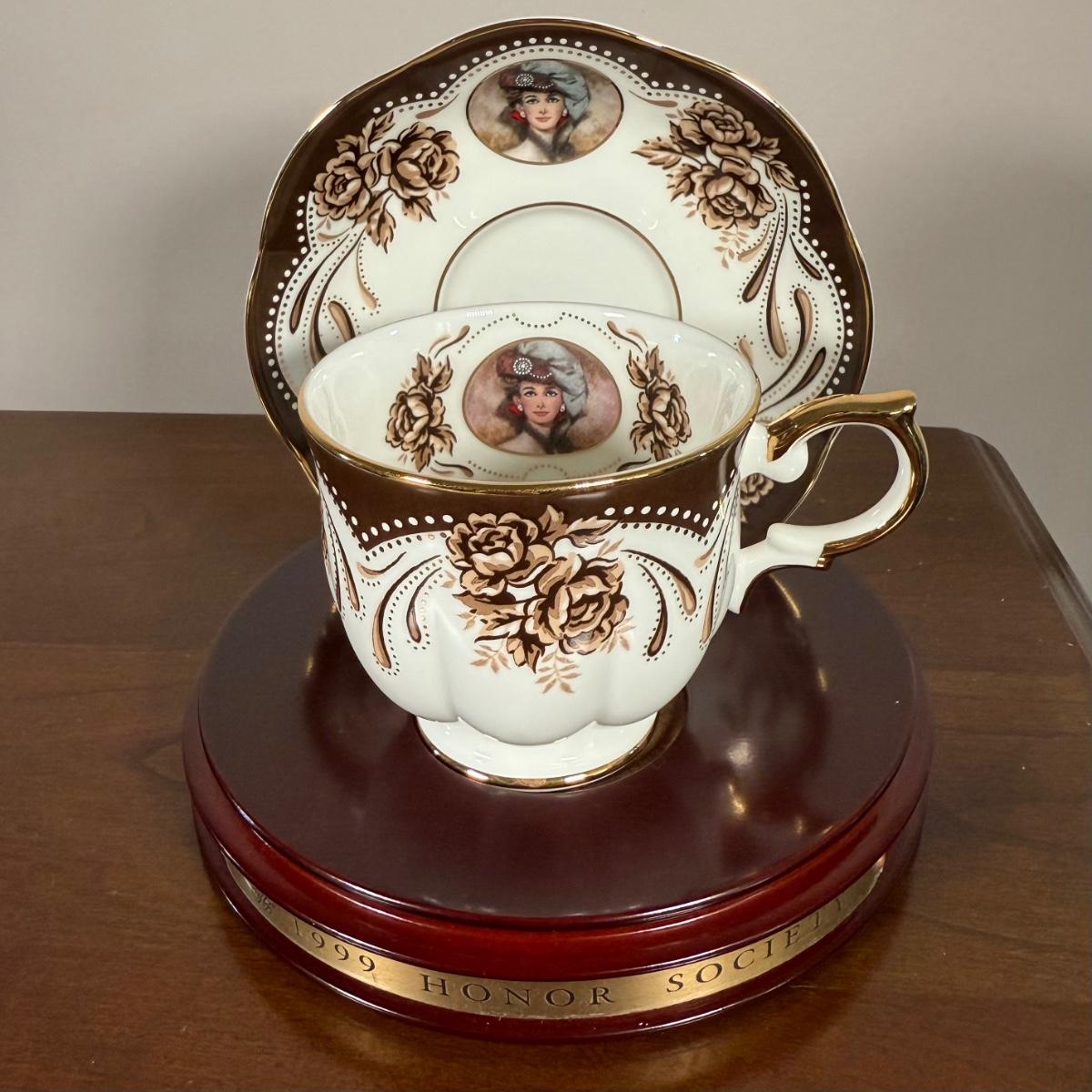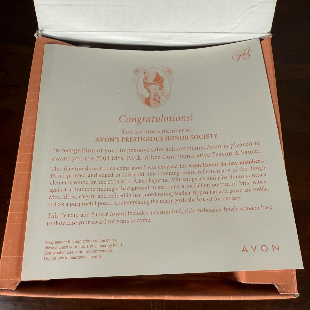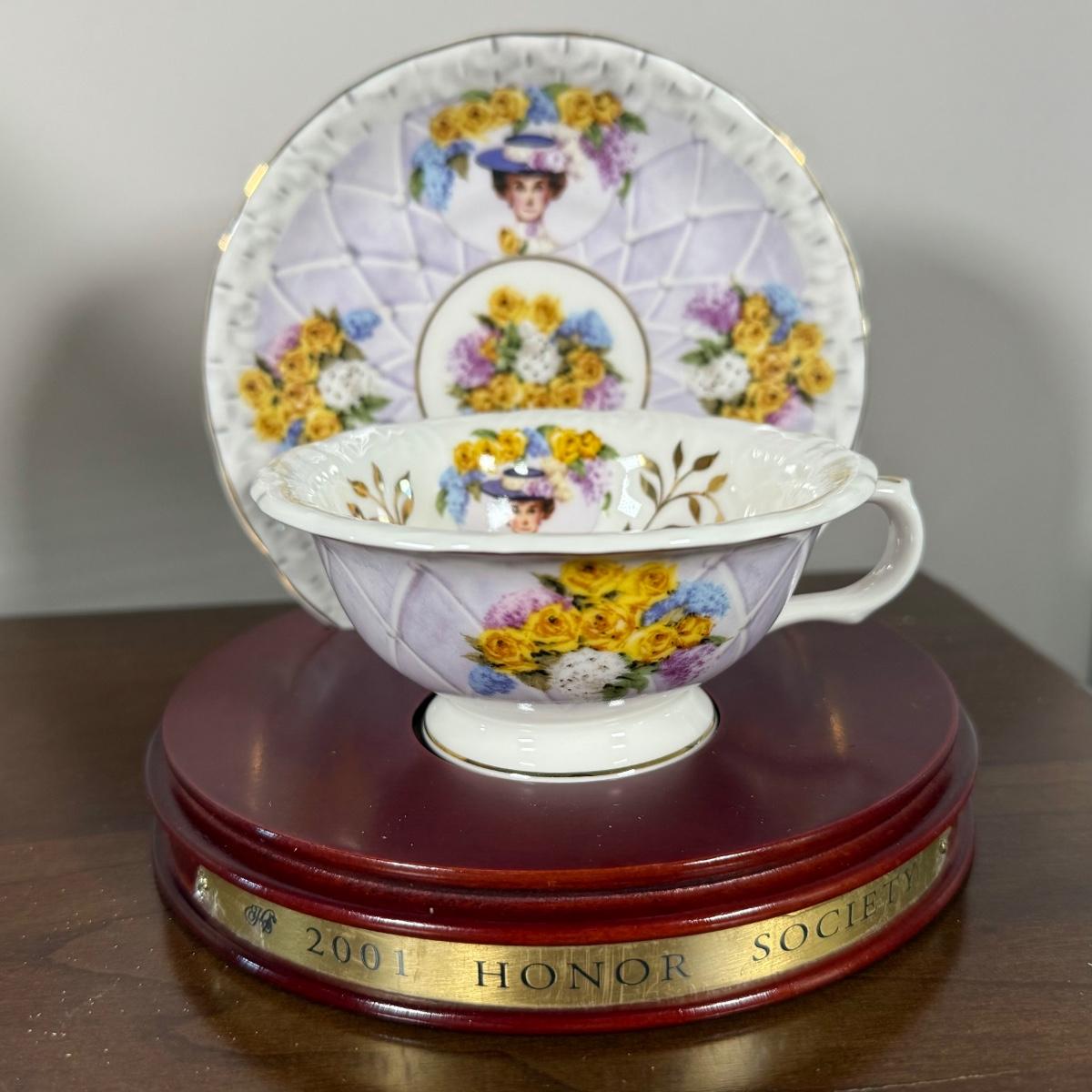 LOT 186L: Avon Honor Society Mrs. P.F.E. Albee Commemorative Tea Cup & Saucer Sets w/ Boxes - 1998-2001, 2004