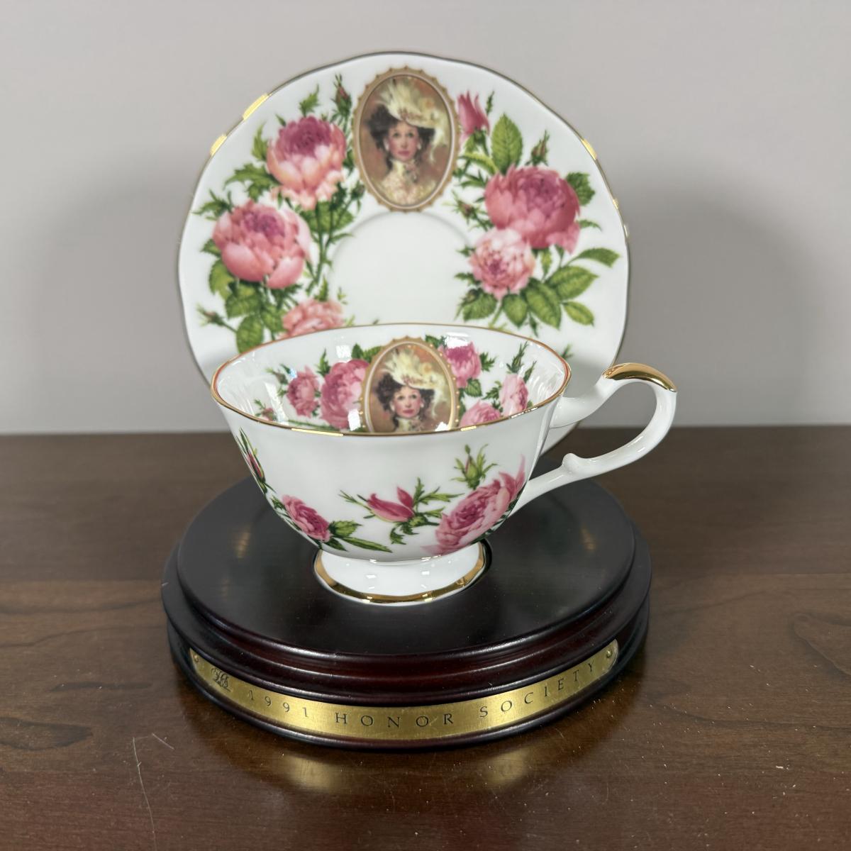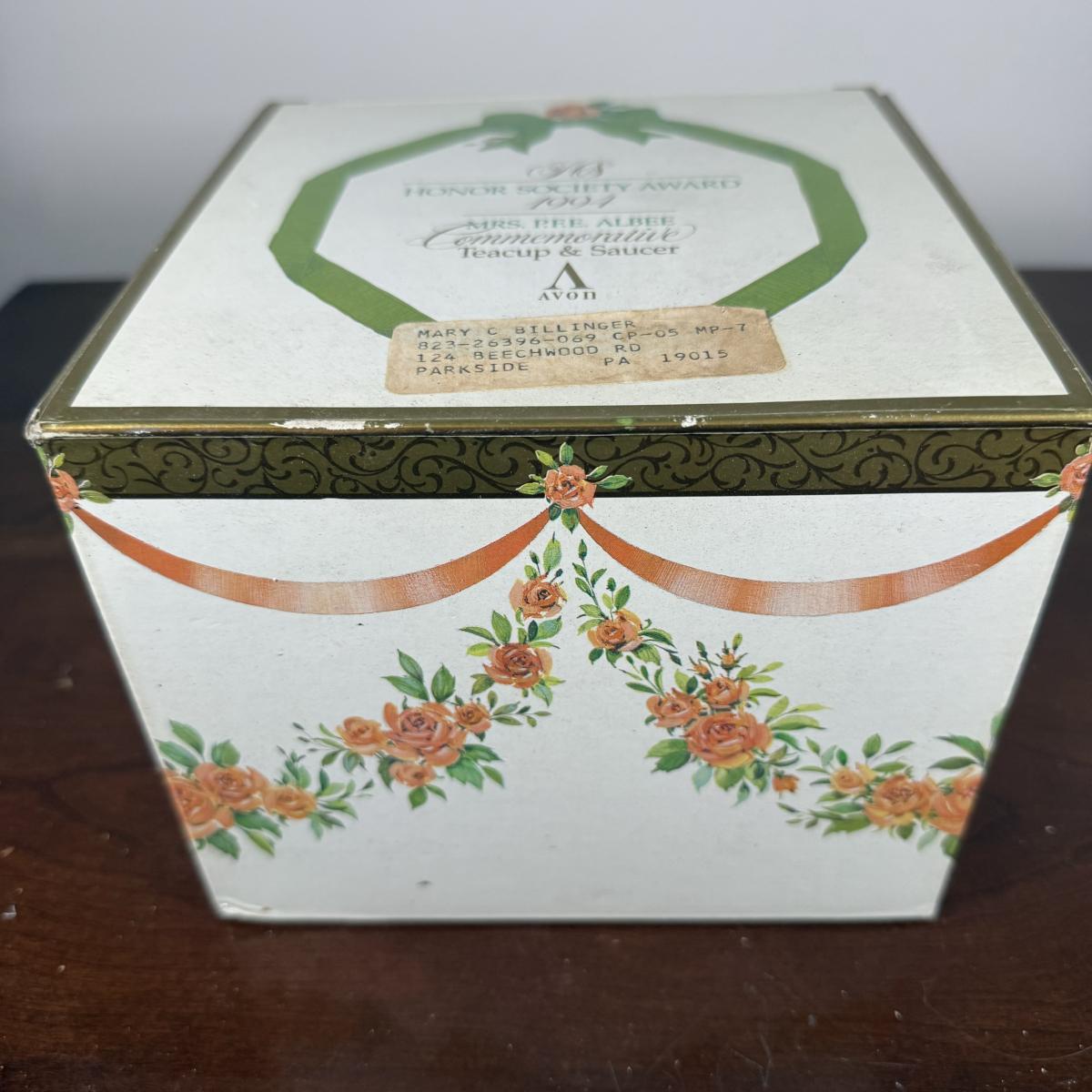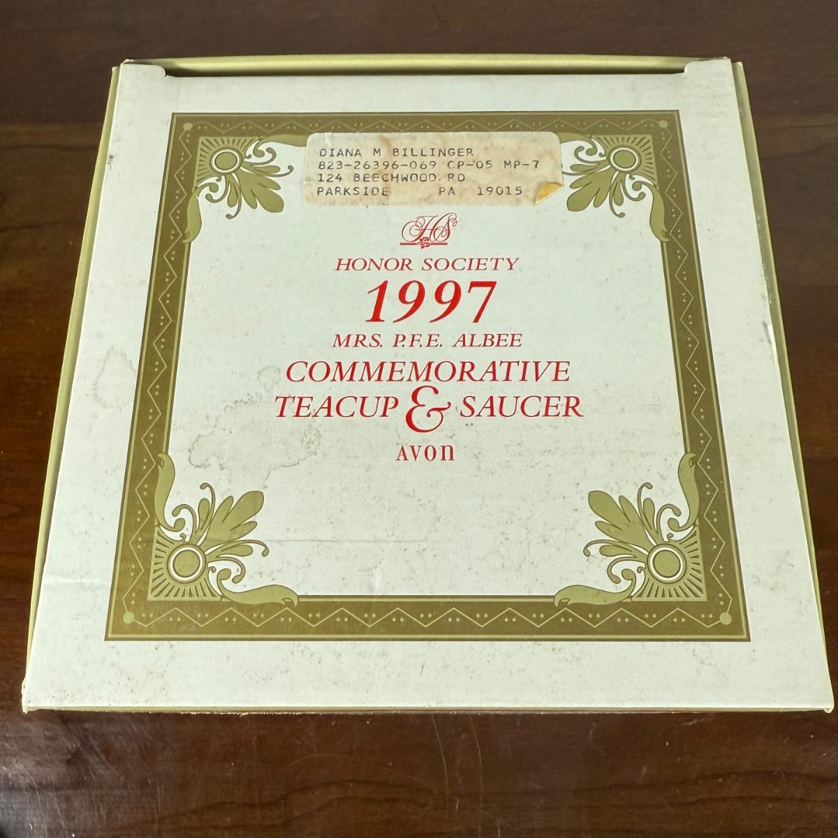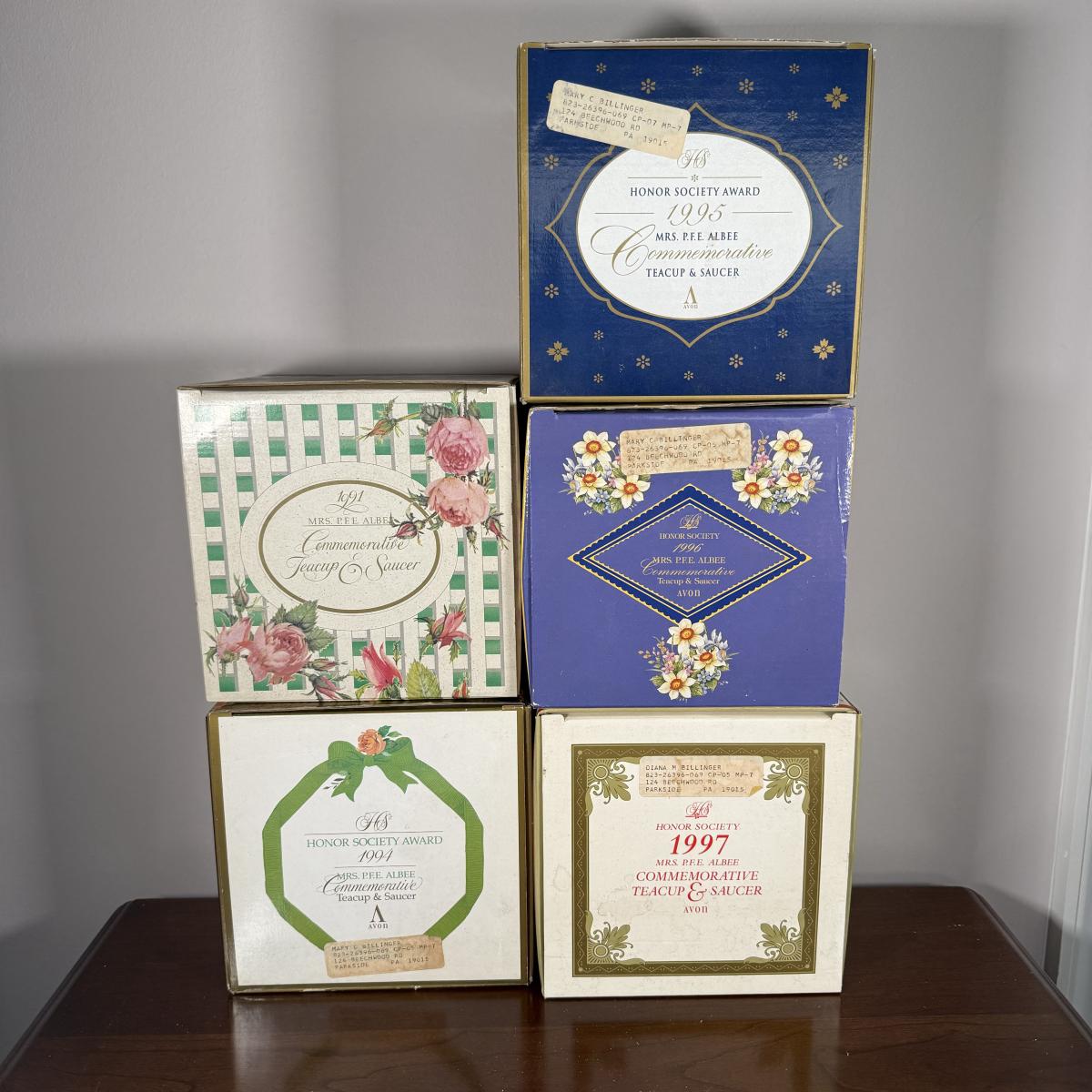 LOT 187L: Avon Honor Society Mrs. P.F.E. Albee Commemorative Tea Cup & Saucer Sets w/ Boxes - 1991, 1994-1997