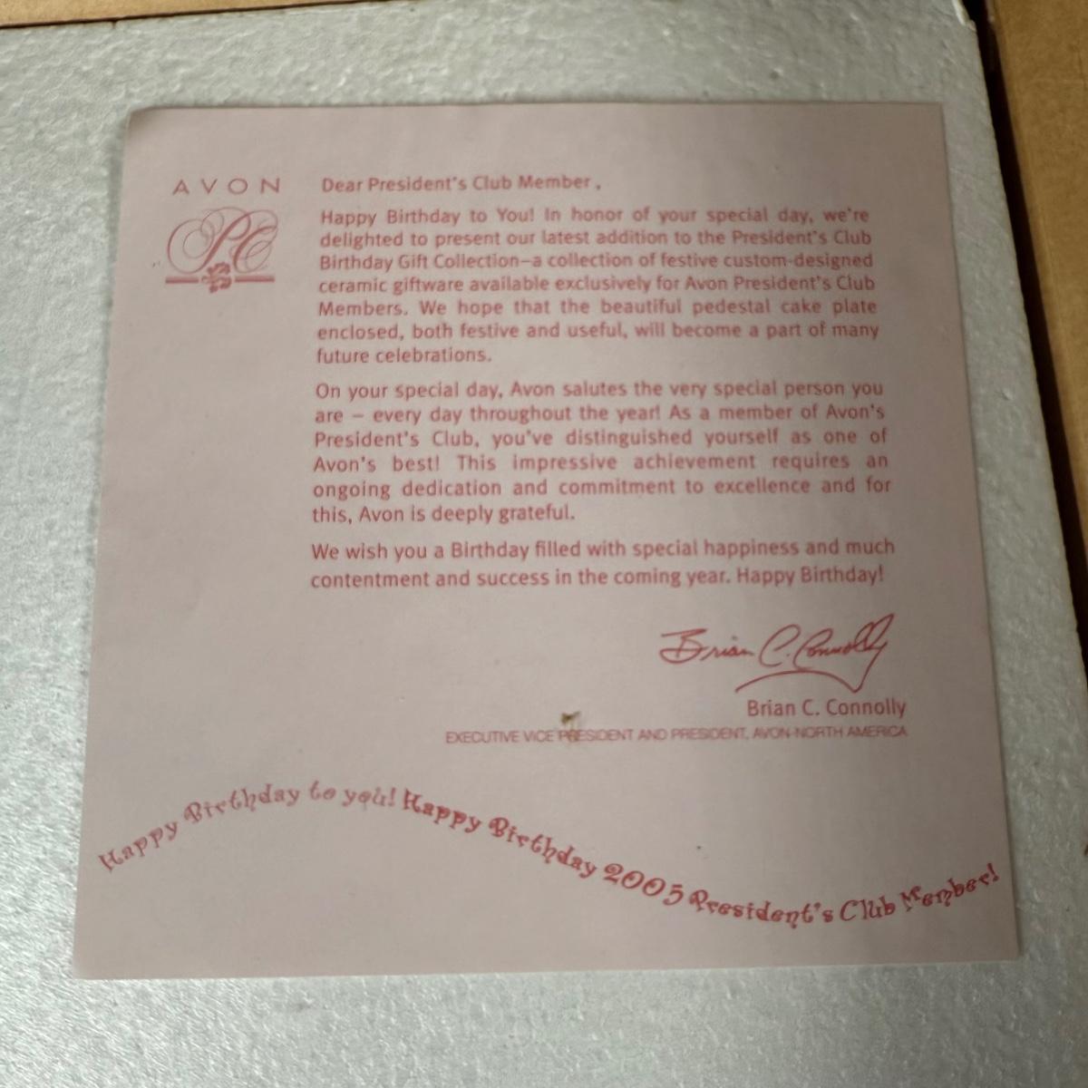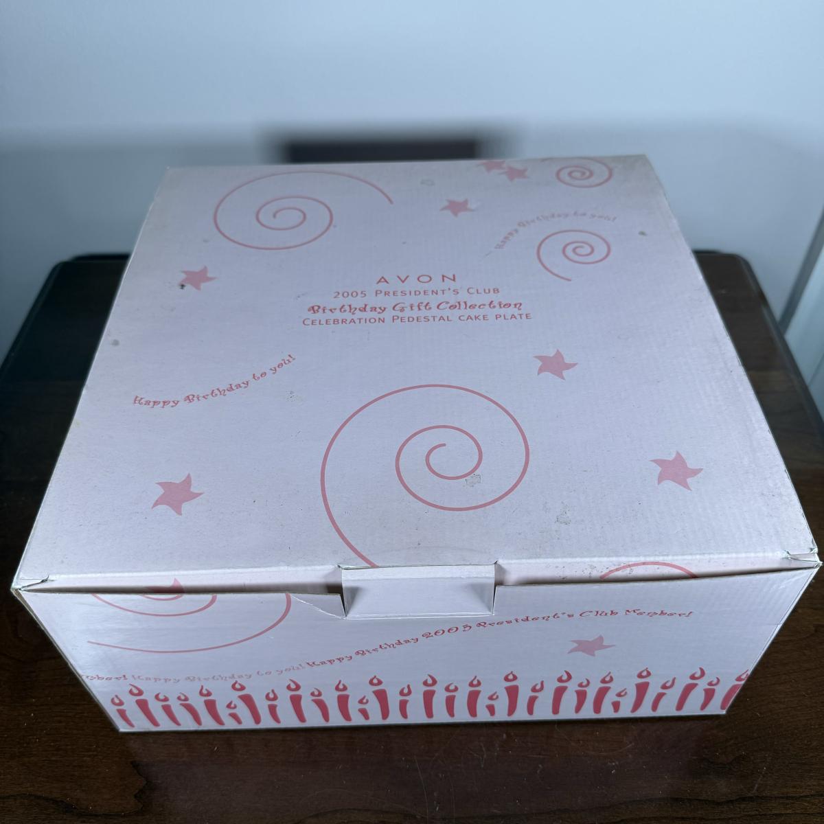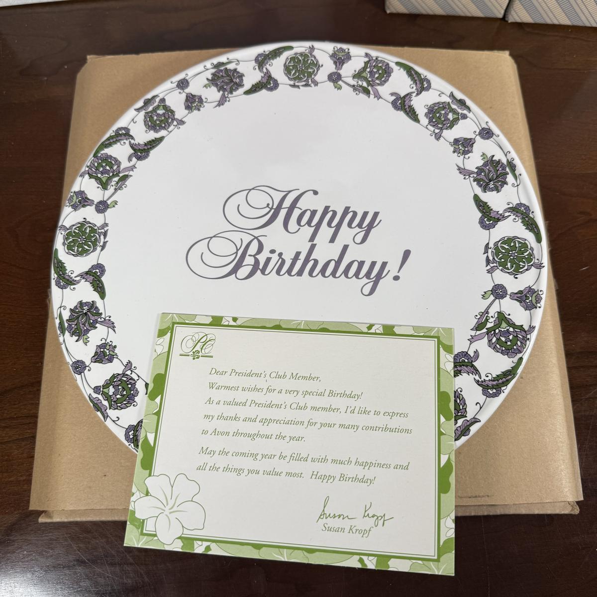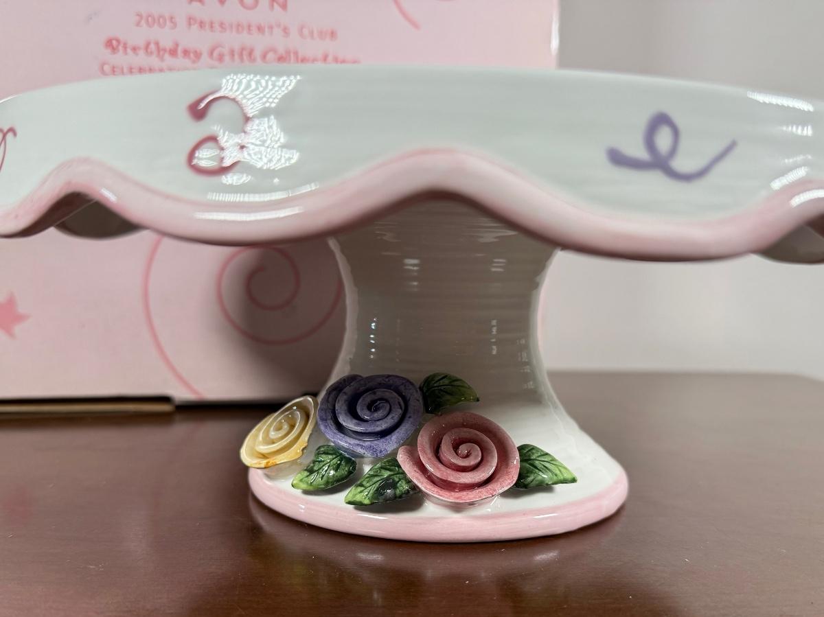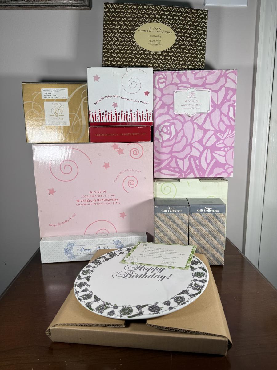 LOT 189D: Happy Birthday! Avon President’s Club Birthday Gifts & More w/ Boxes - Ceramic Celebration Cake Plates, Server & Pedestal Plate w/ Much More