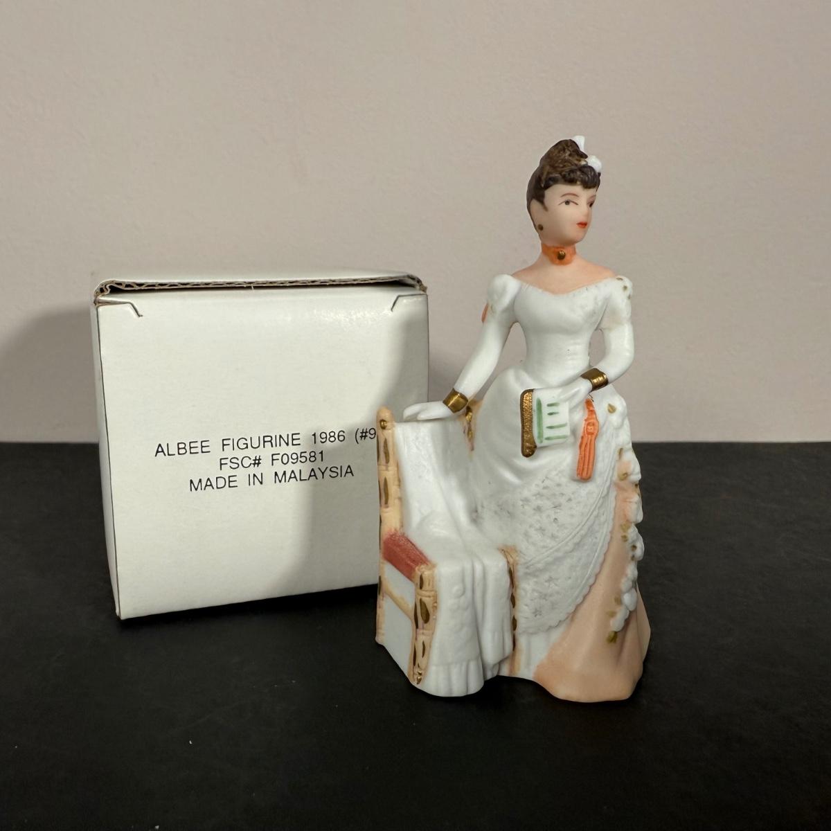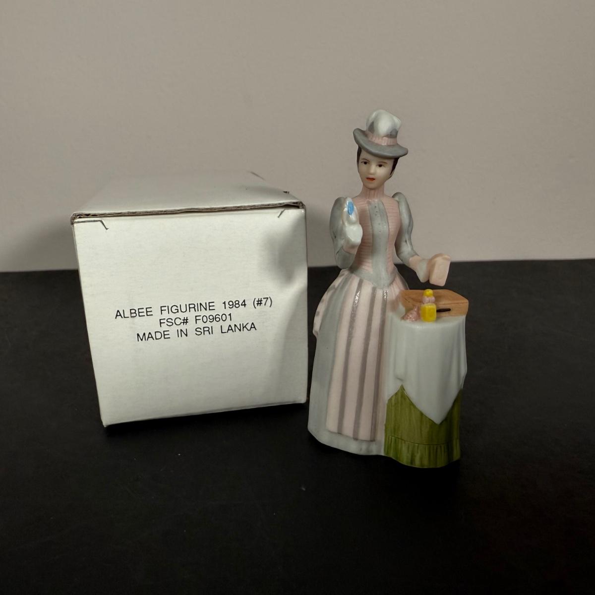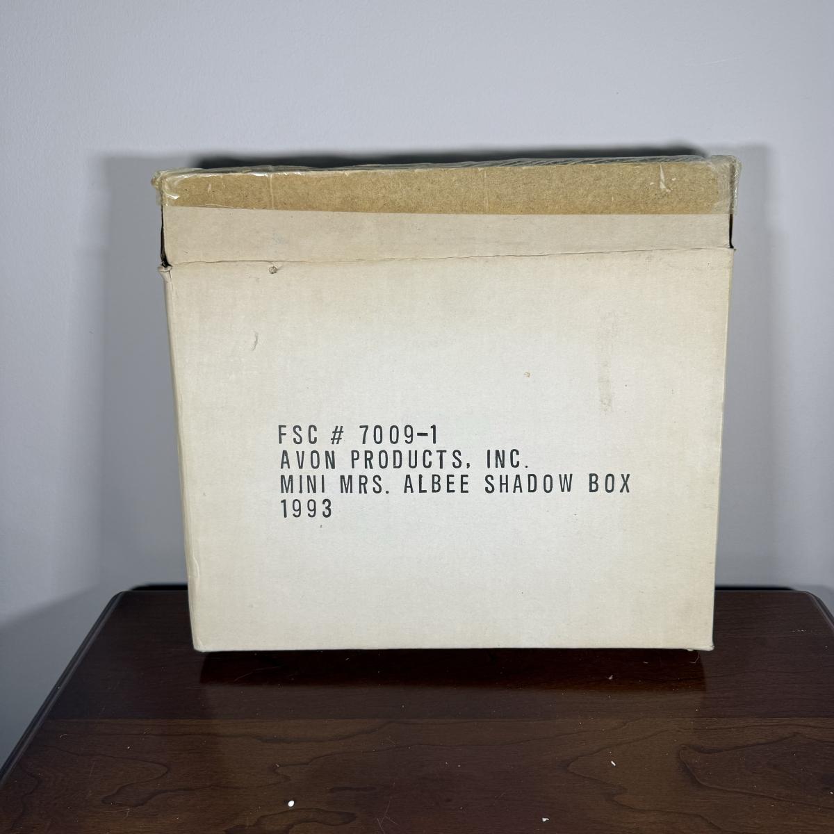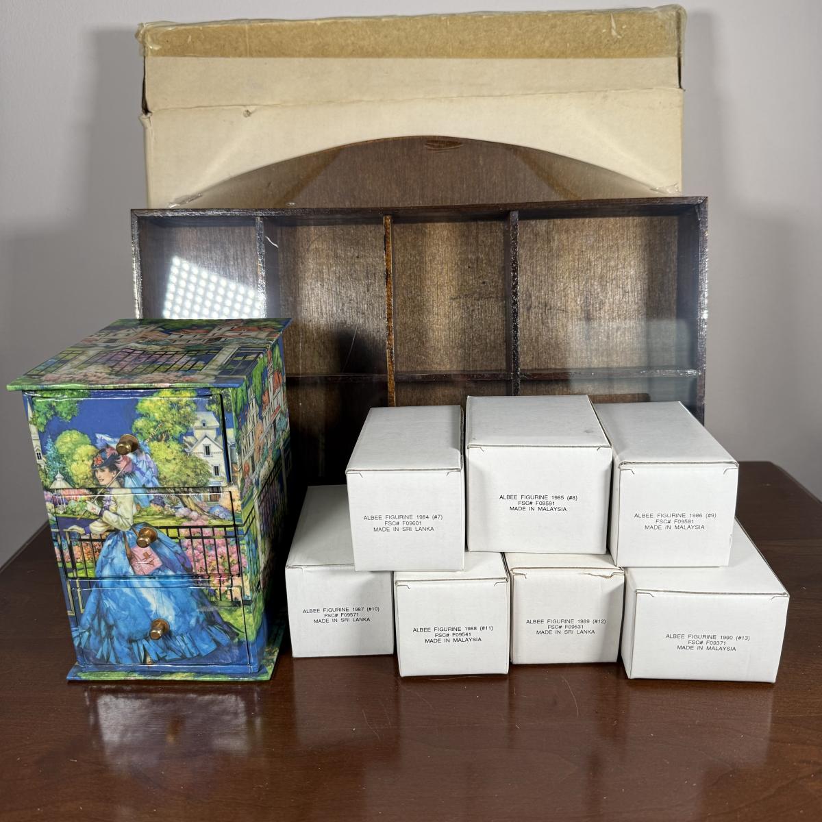 LOT 190D: Vintage Avon Miniature Mrs. PFE Albee Figurines w/ NIP Shadow Box Display Shelf & More