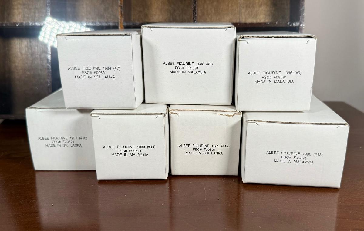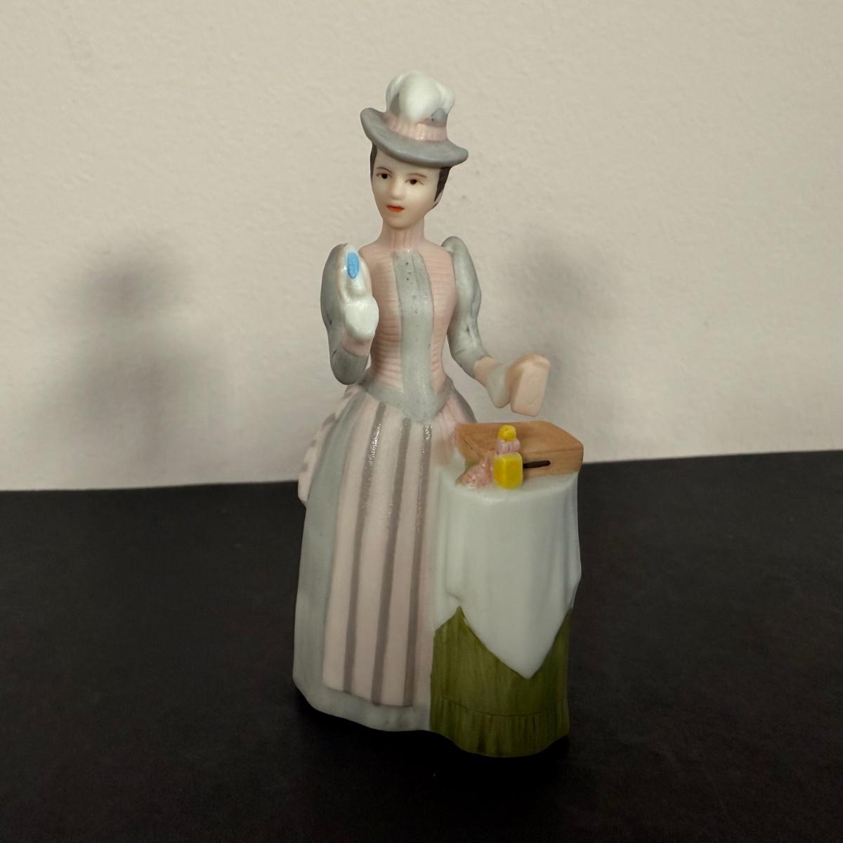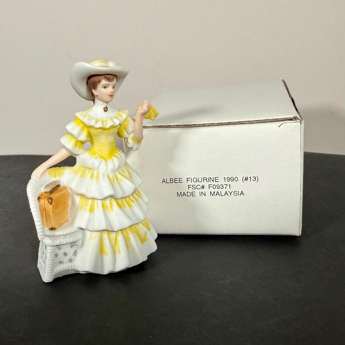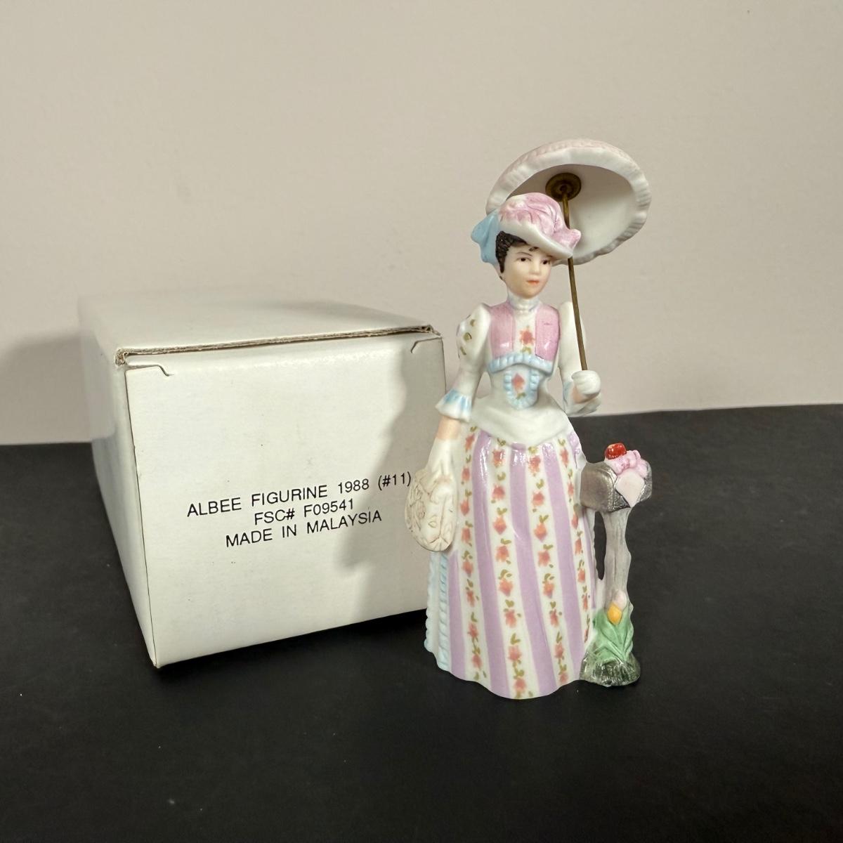 LOT 190D: Vintage Avon Miniature Mrs. PFE Albee Figurines w/ NIP Shadow Box Display Shelf & More