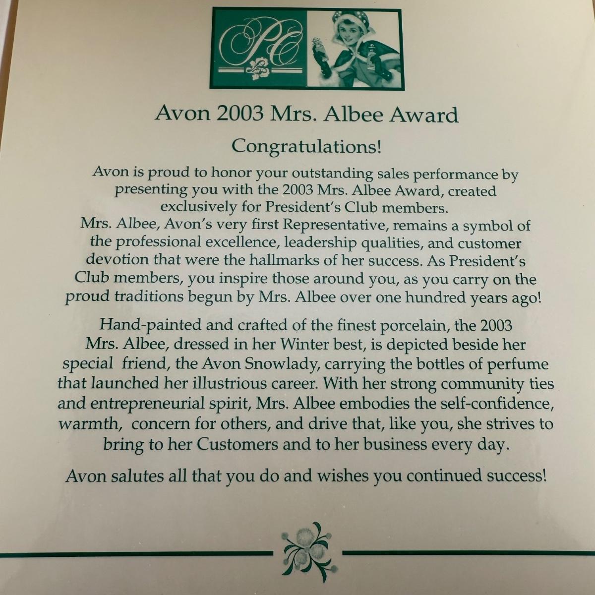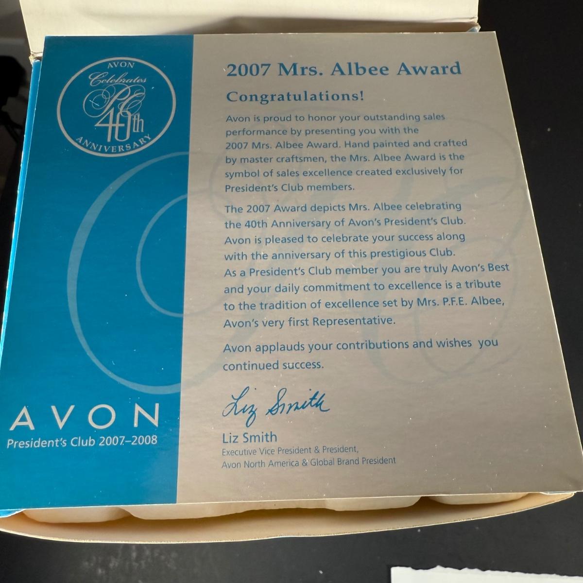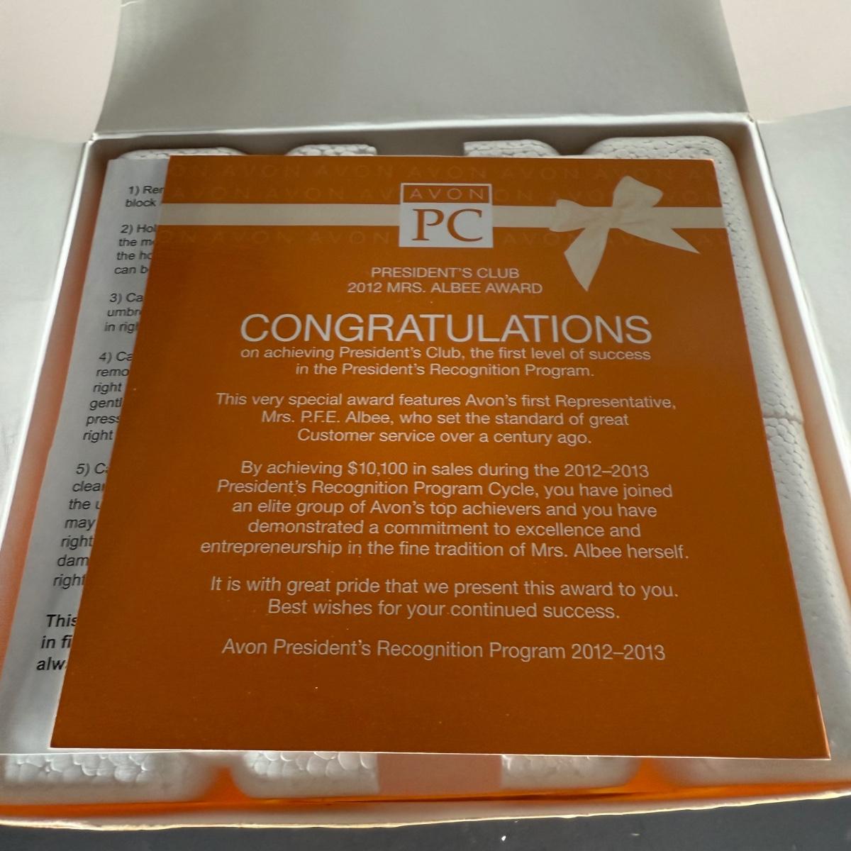 LOT 191D: Avon President’s Club Mrs. Albee Awards in Boxes 2003-2014
