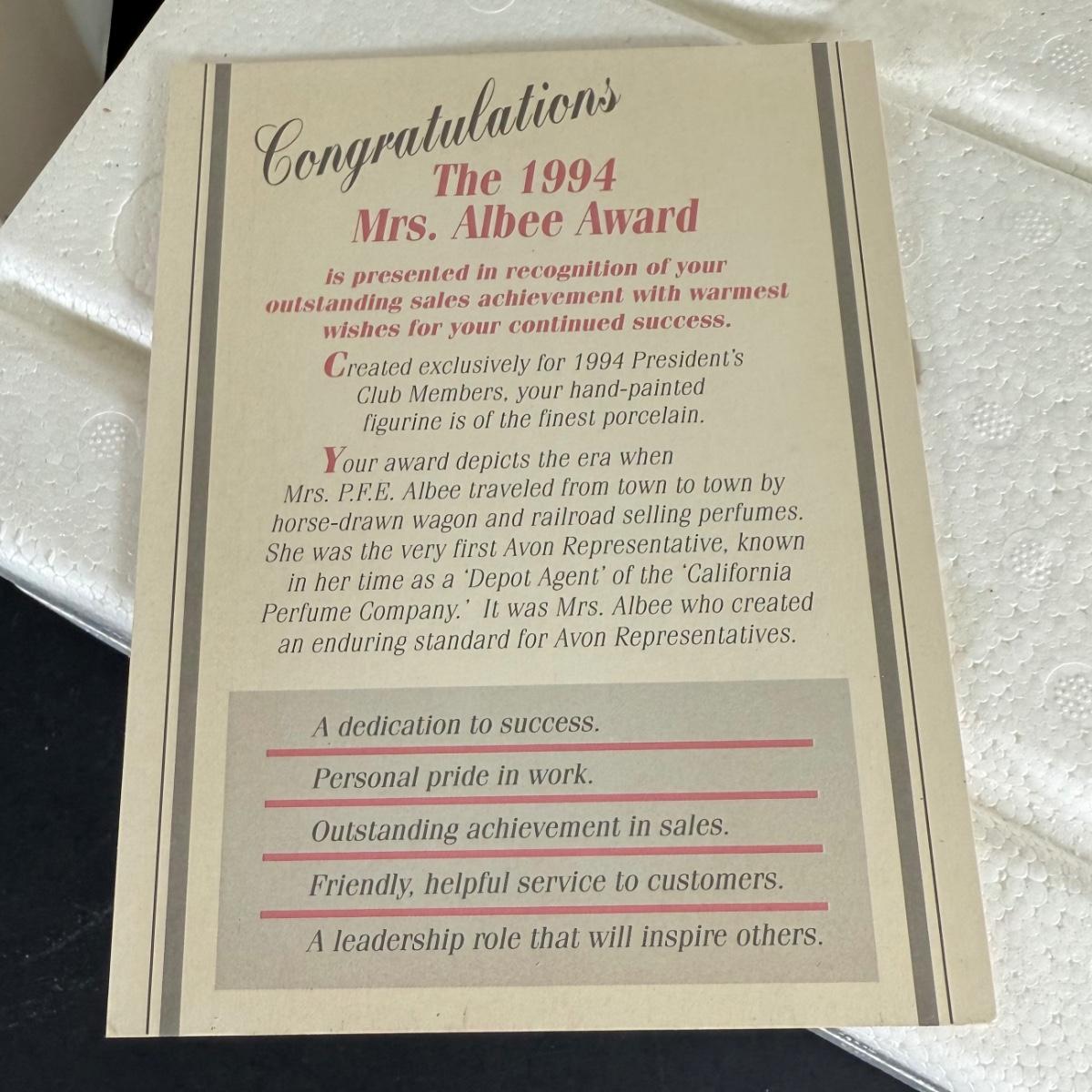 LOT 192D: Avon President’s Club Mrs. Albee Awards in Boxes 1990, 1994, 1996-2002