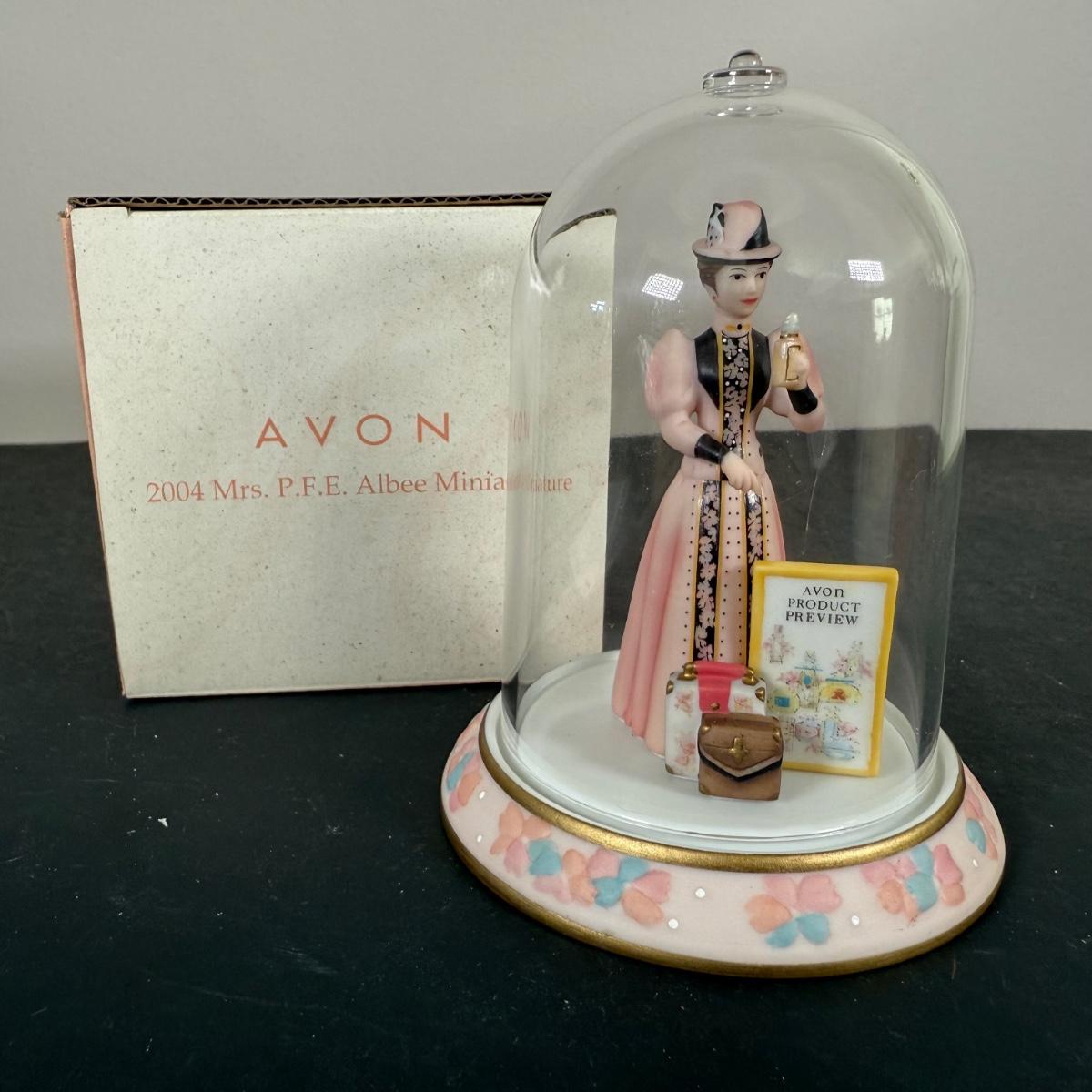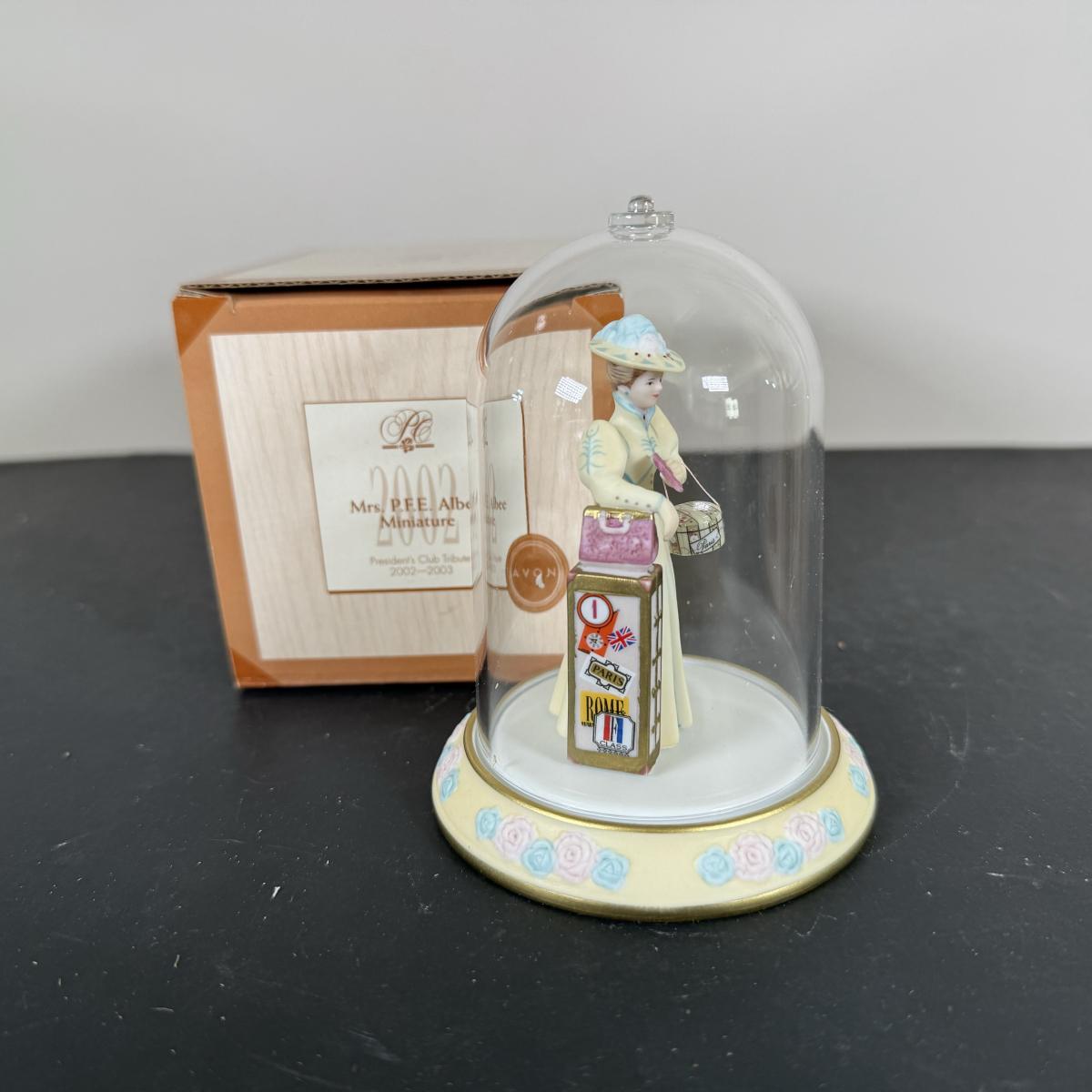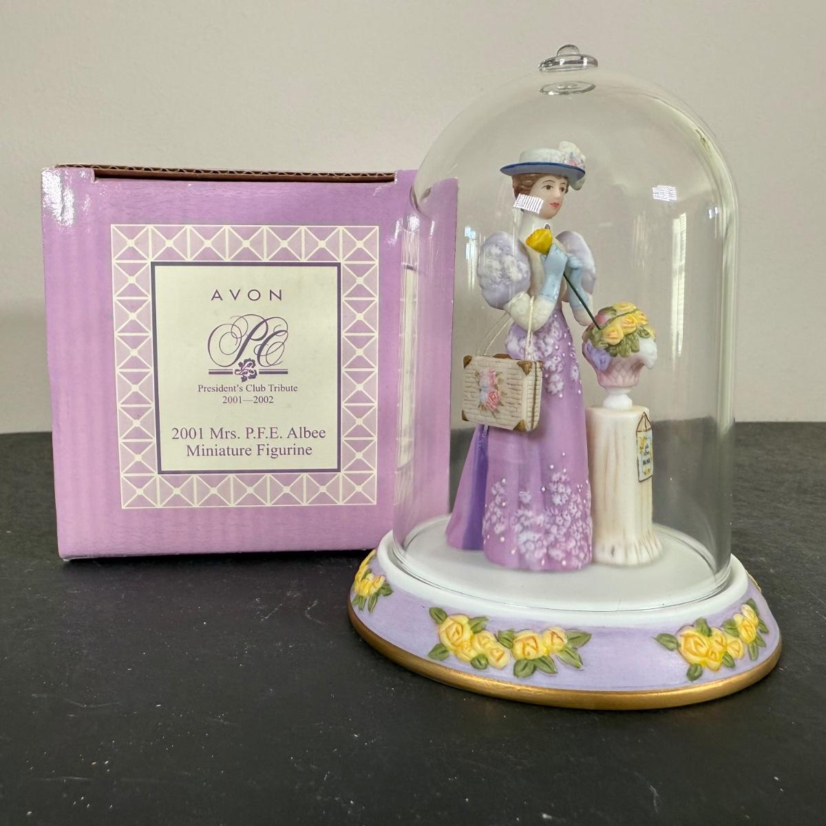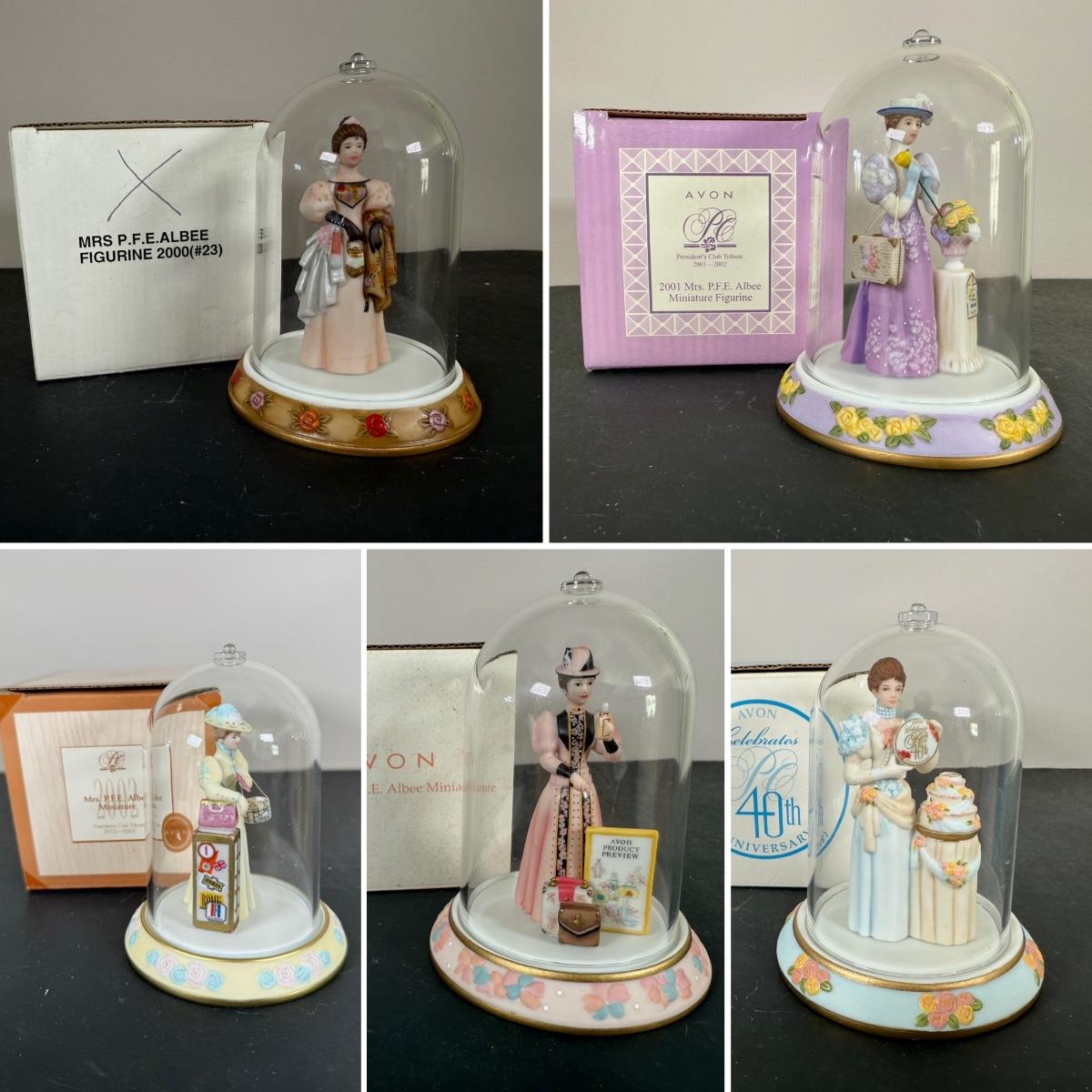 LOT 196D: Avon Mini Mrs PFE Albee Figurines w/ Cloche Displays & Boxes 2001-2002, 2004, 2007-2008 & 2009