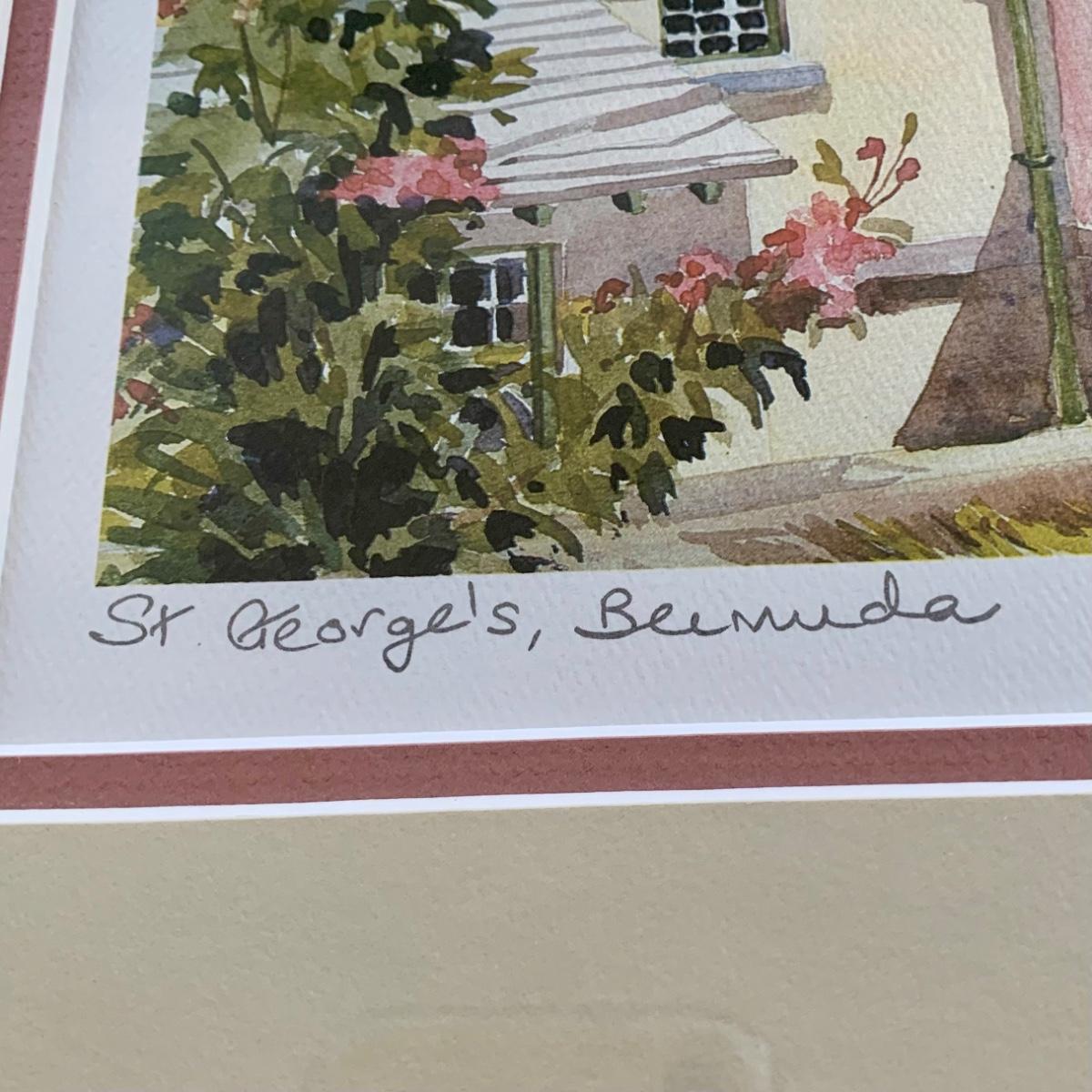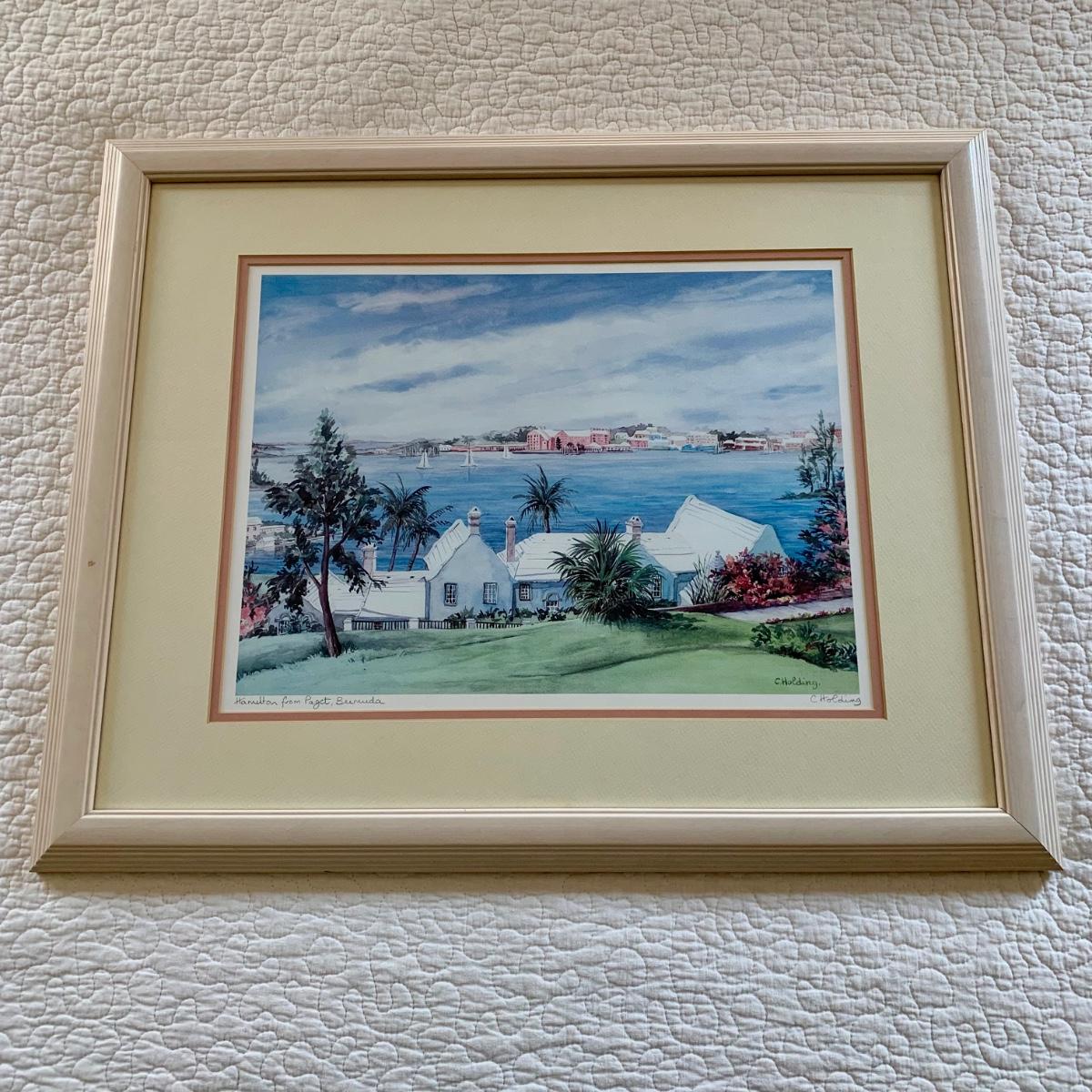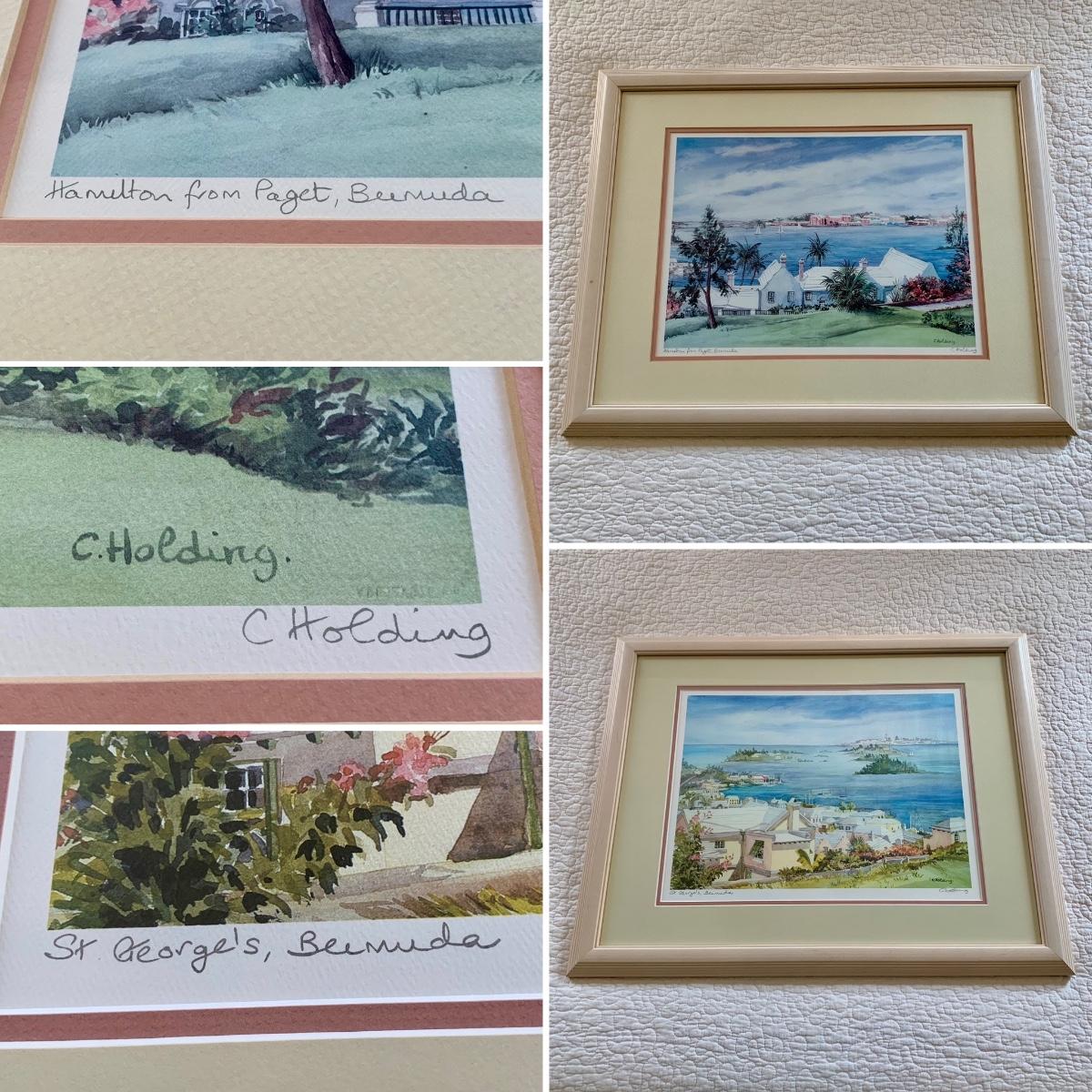 LOT 205 M: Framed & Signed Carole Holding Watercolor Prints: "Hamilton From Paget, Bermuda" & "St. George's, Bermuda"