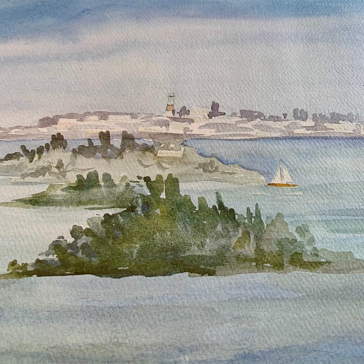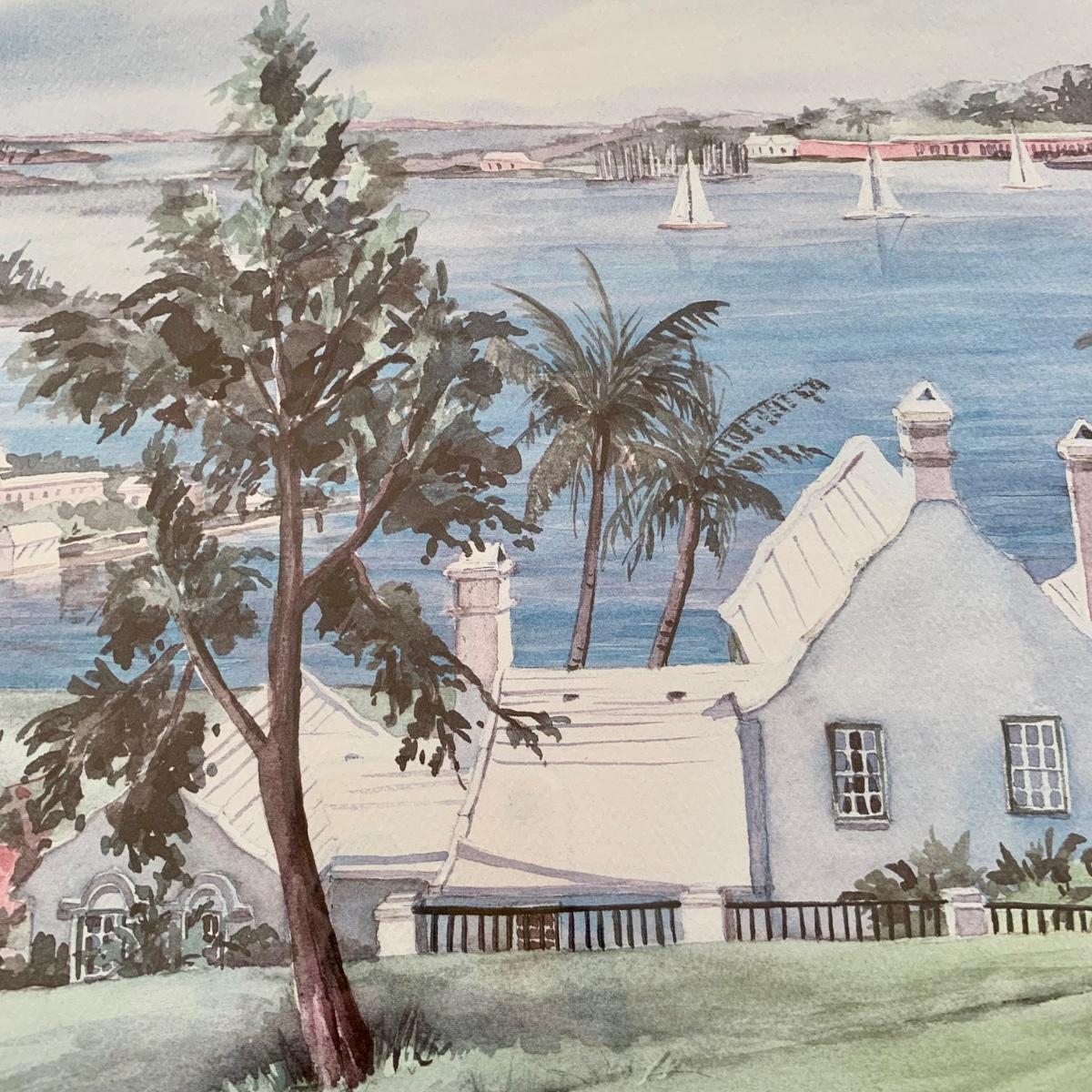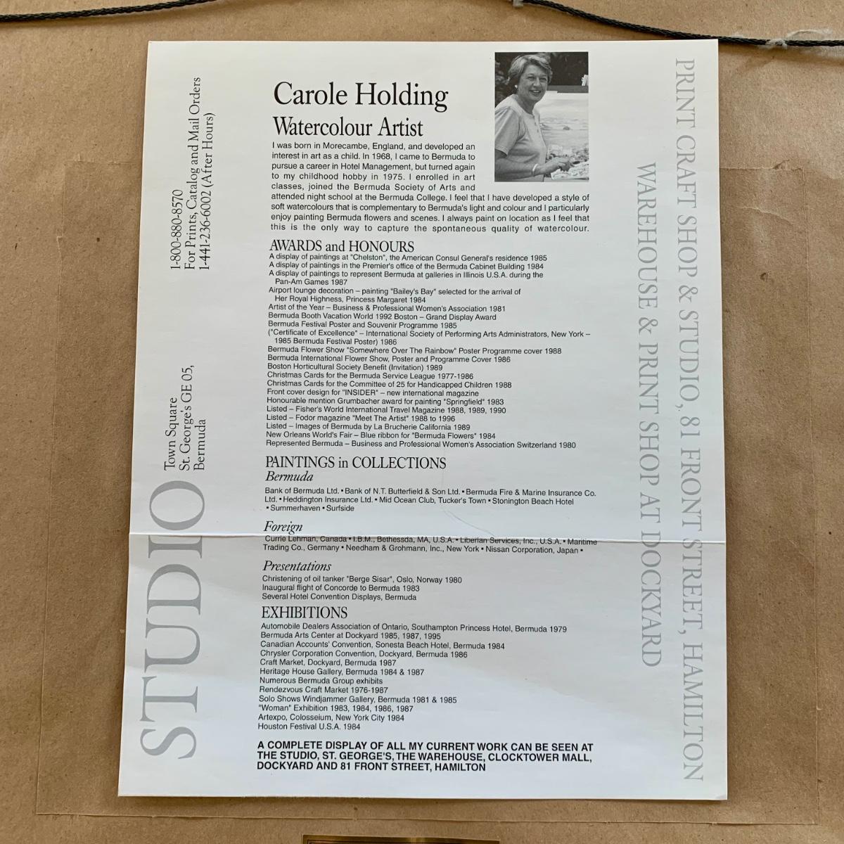 LOT 205 M: Framed & Signed Carole Holding Watercolor Prints: "Hamilton From Paget, Bermuda" & "St. George's, Bermuda"