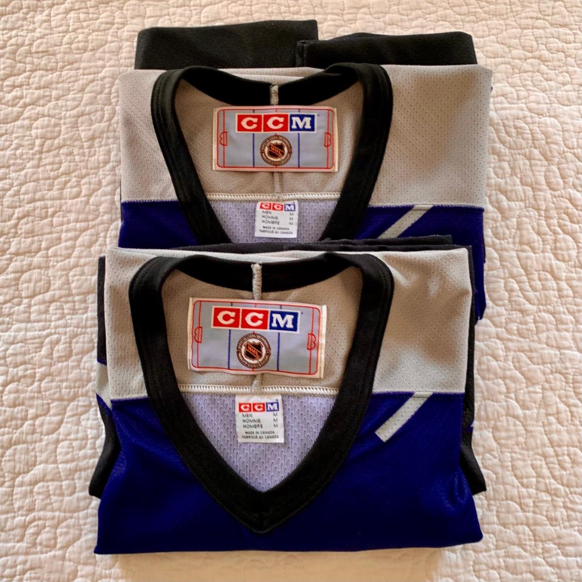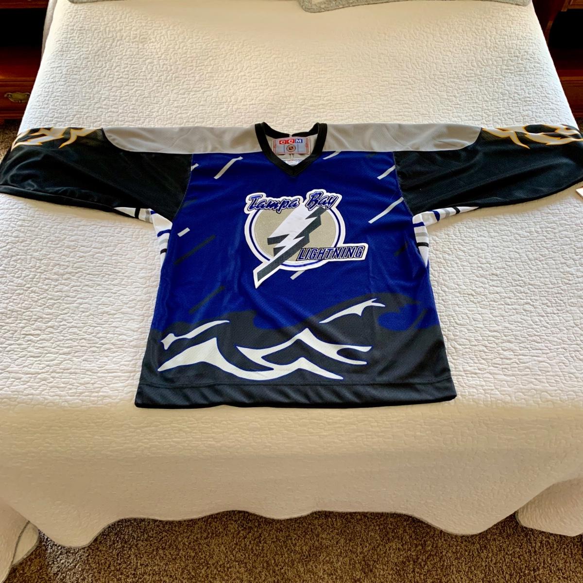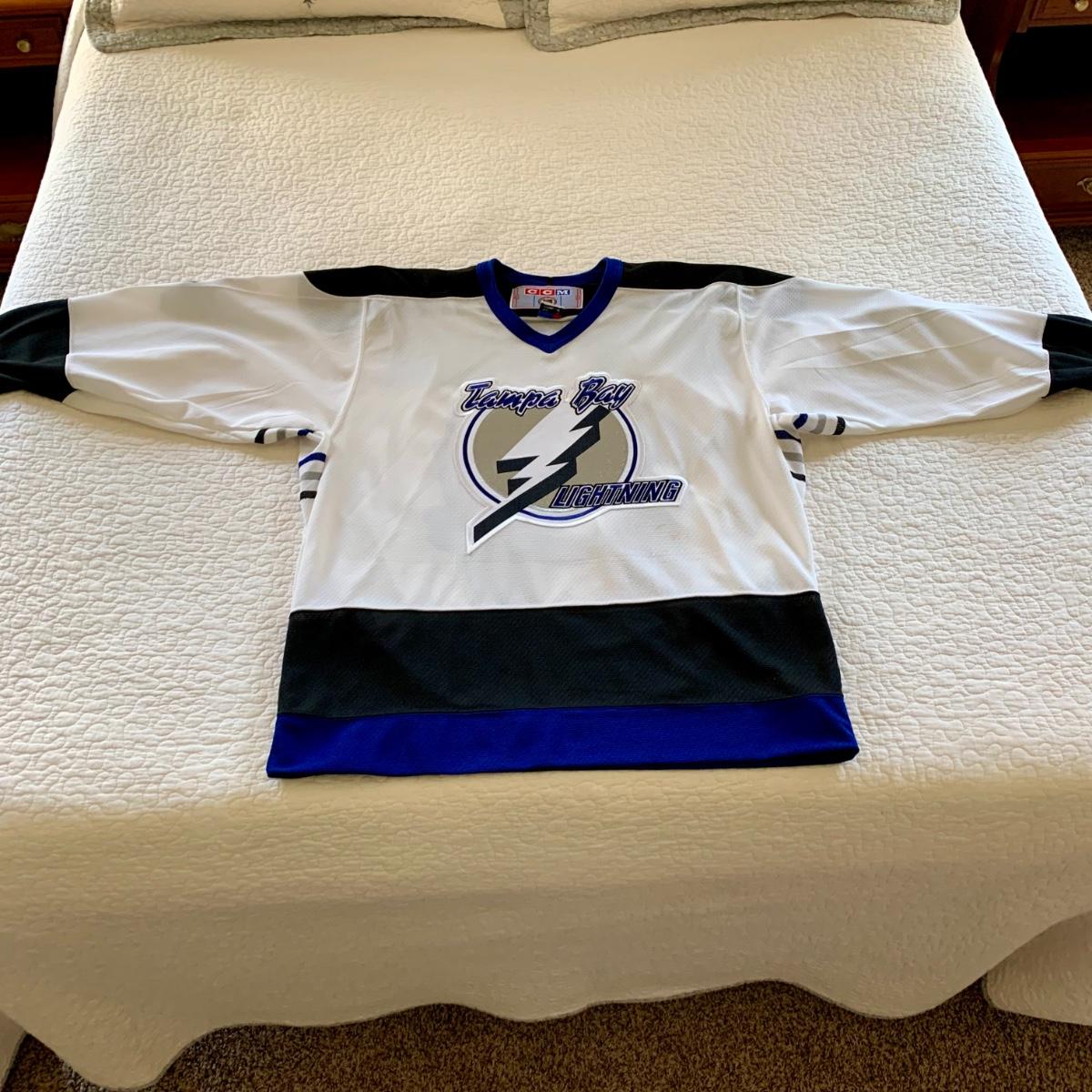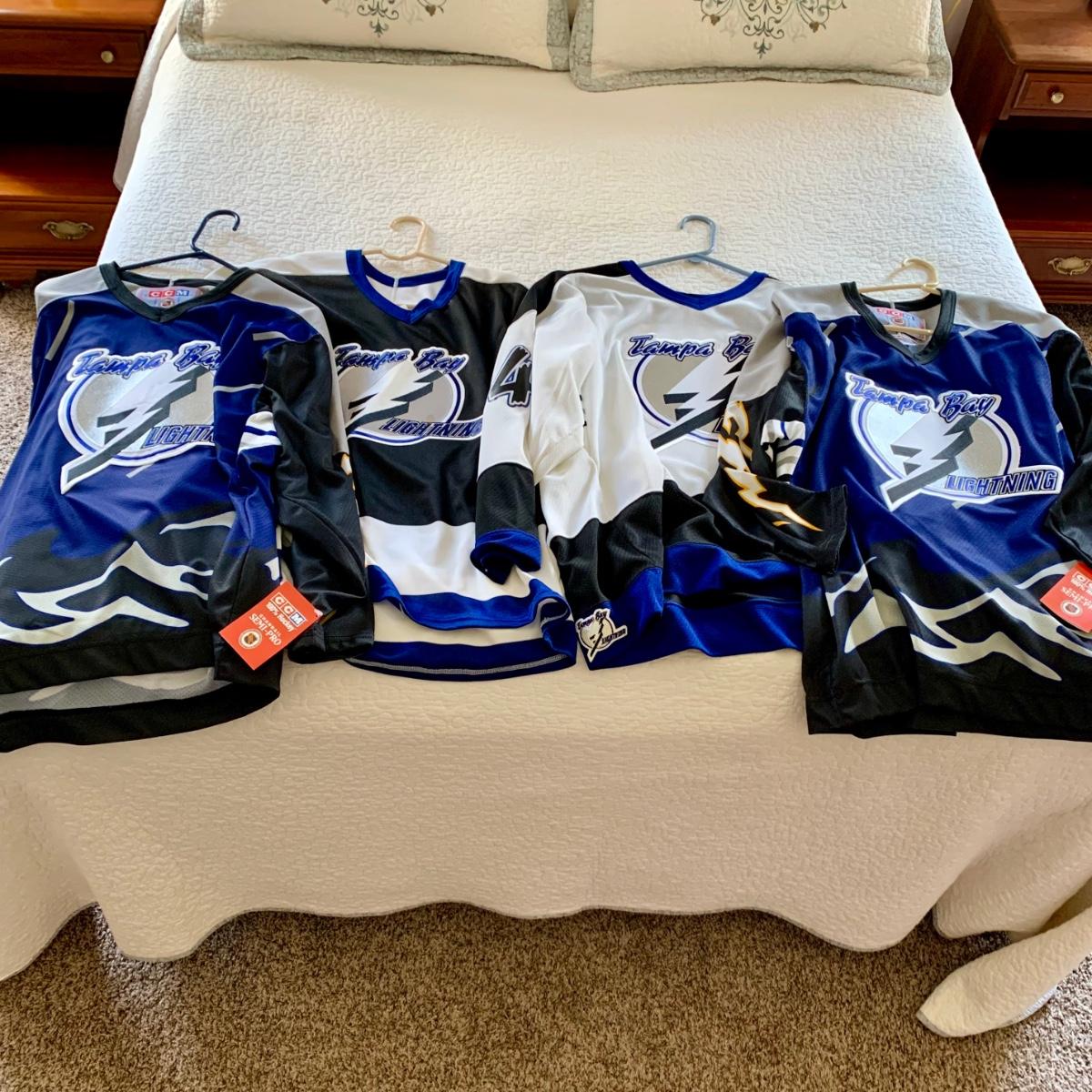 LOT 208 M: Tampa Bay Lightning Hockey Jersey's: 2 Semi-Pro Jerseys w/ Tags Size Medium, Karl Dykhuis #14 Size Medium, & More