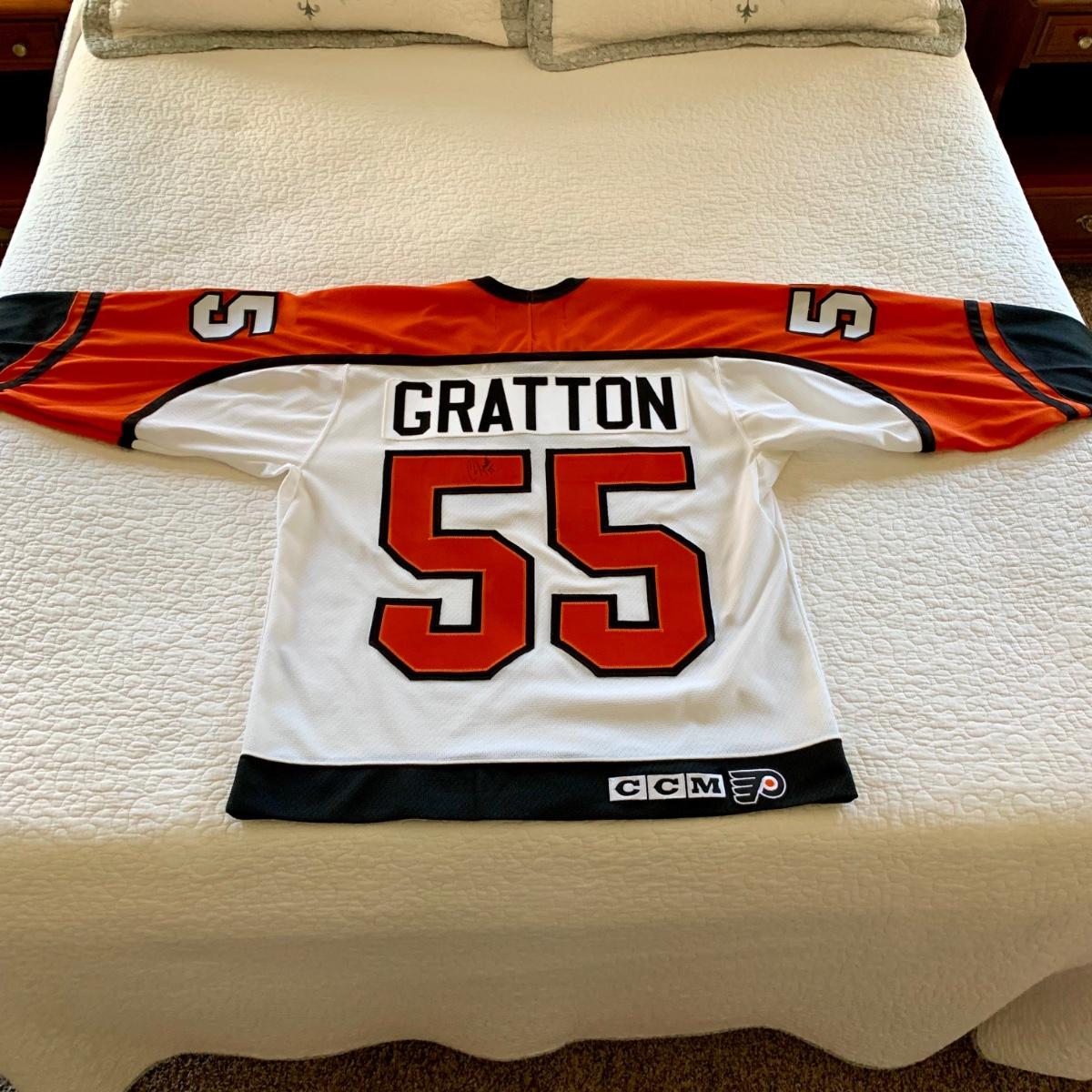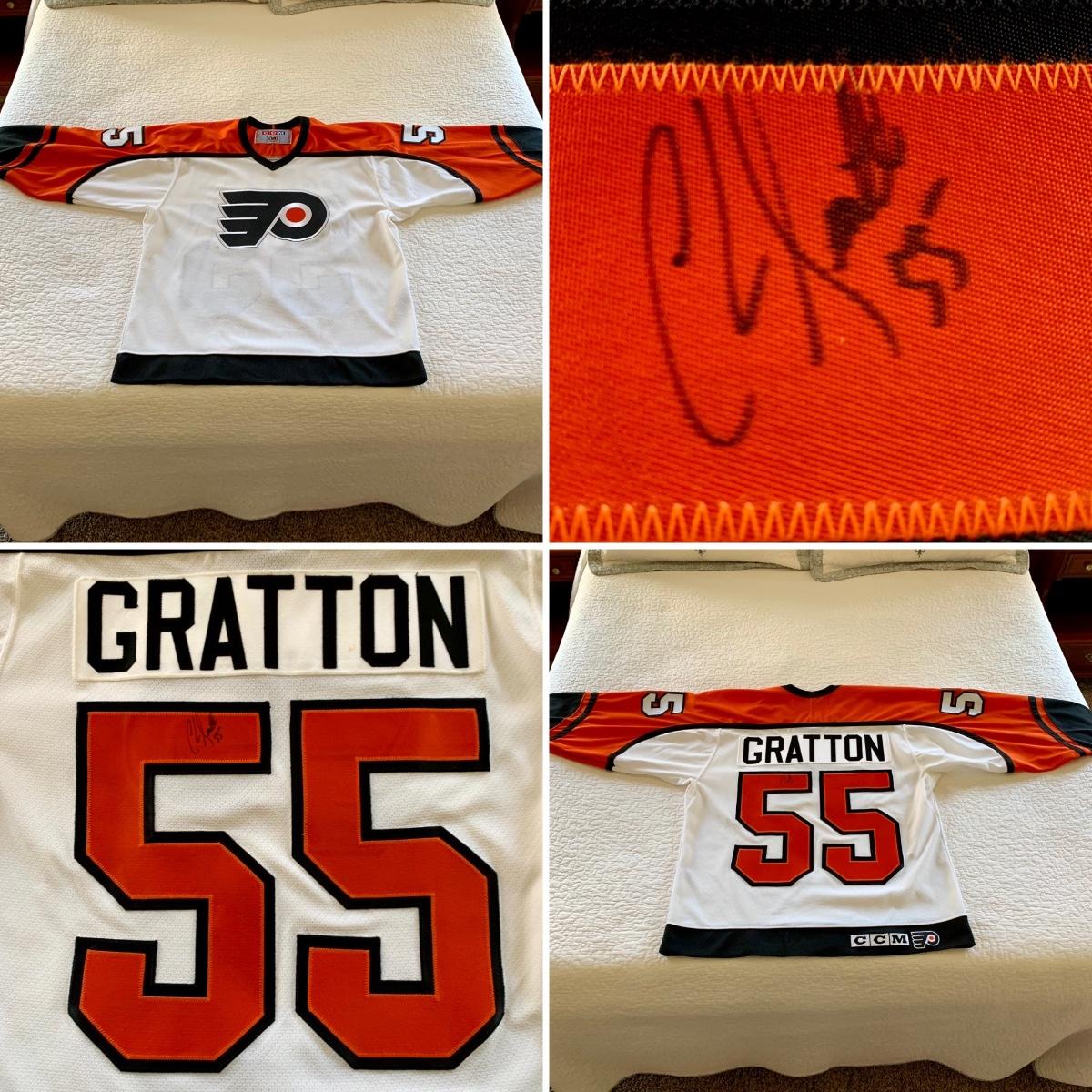 LOT 209 M: Signed Chris Gratton #55 Philadelphia Flyers Hockey Jersey Size Medium