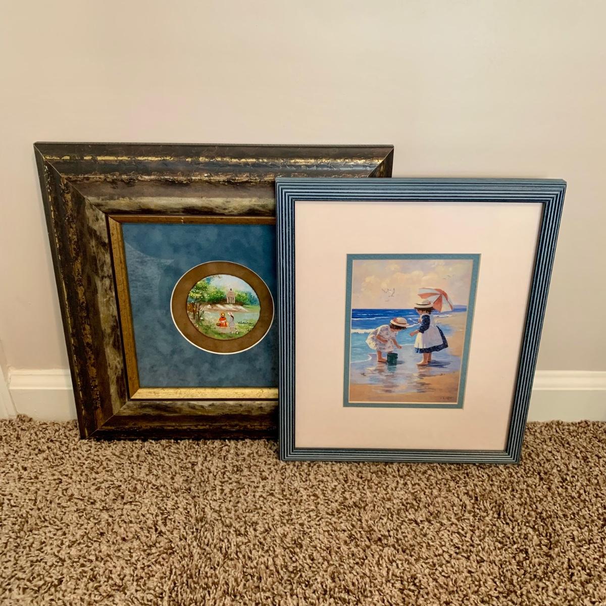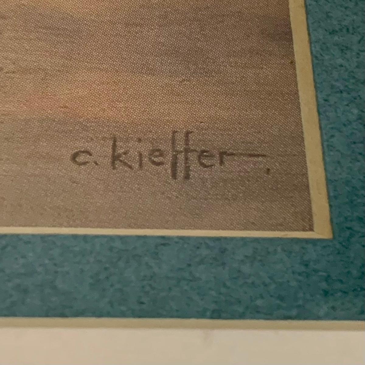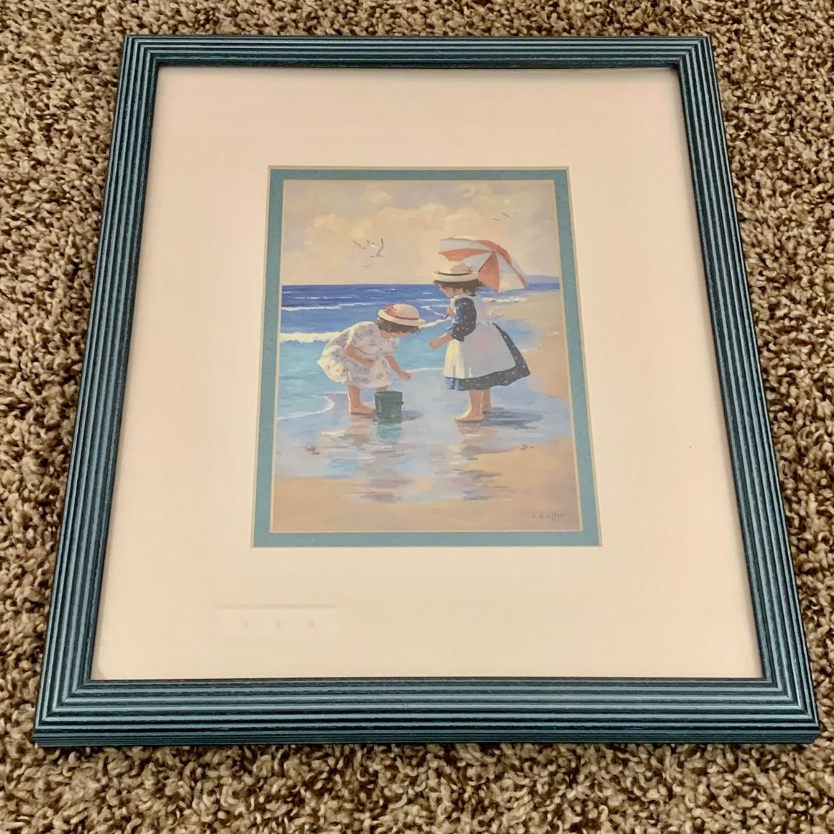 LOT 223 B: Framed, Hand Painted, & Signed Disk & "Gathering Seashells" Print by C. Kieffer