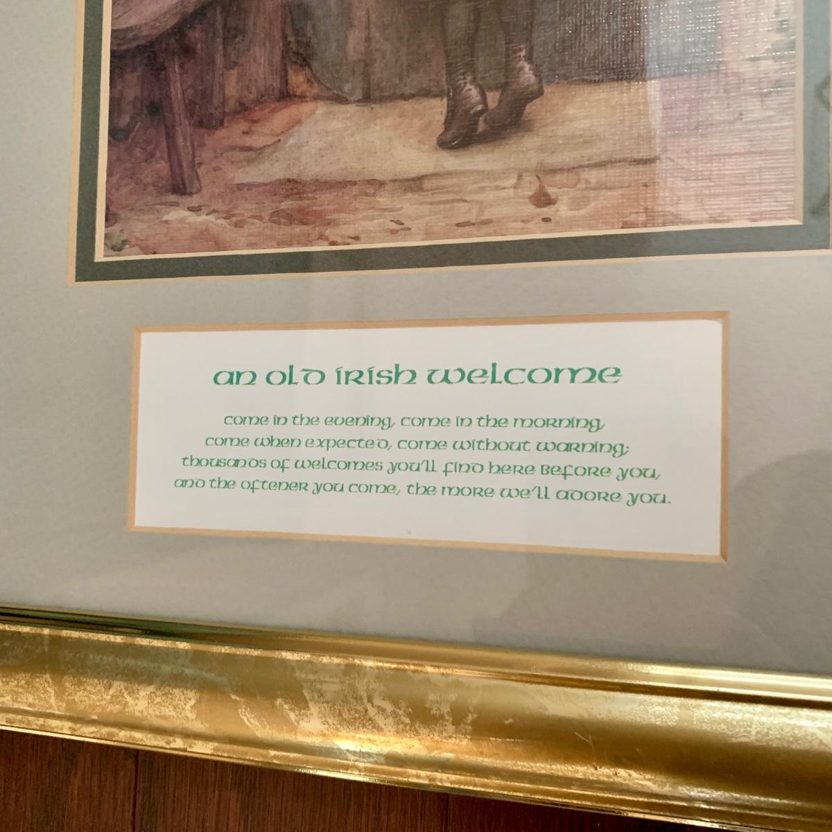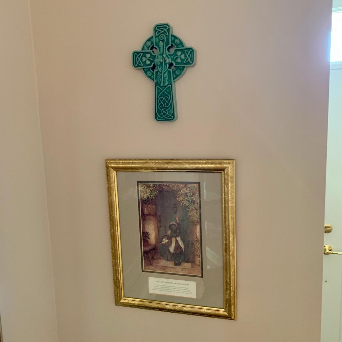 LOT 239 D: Irish Hanging Wall Decor: Framed “An Old Irish Welcome” & Celtic Cross