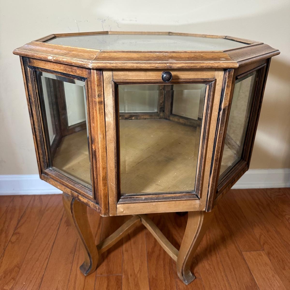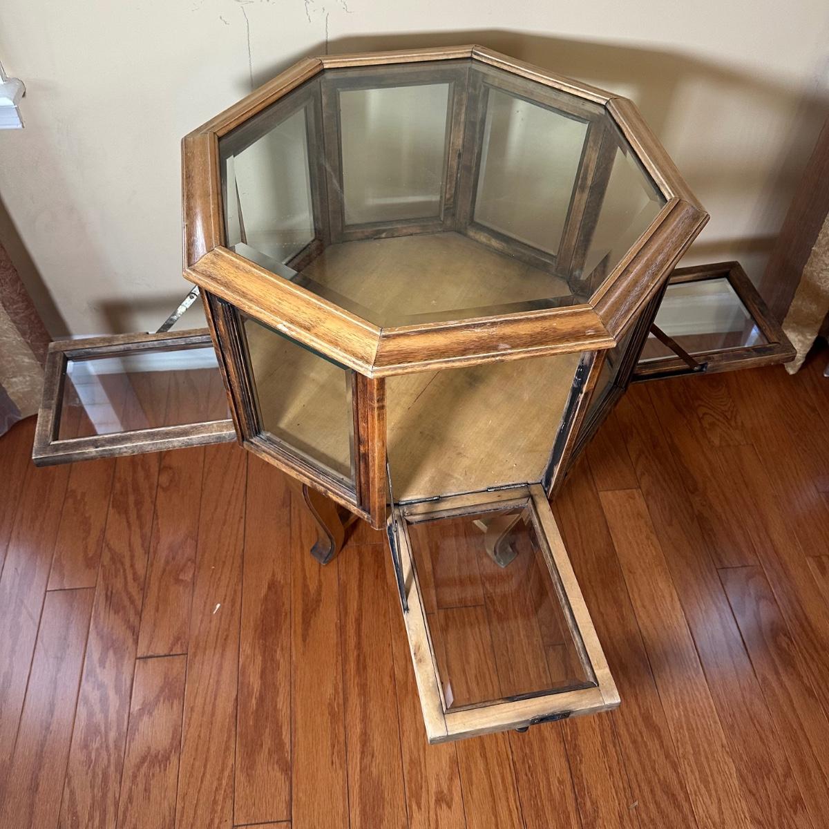 LOT 14: Antique Oak Octagonal Showcase Display Cabinet Table