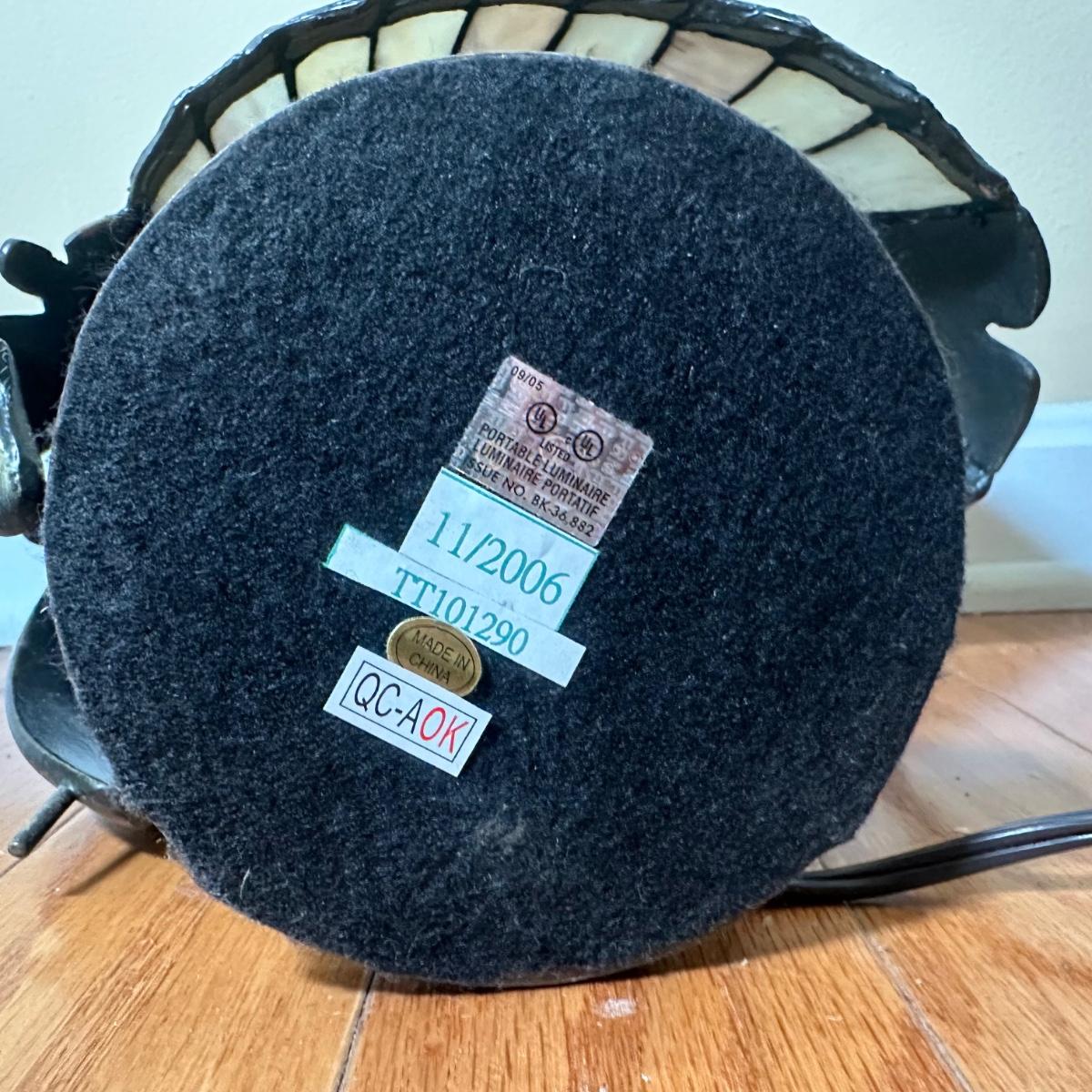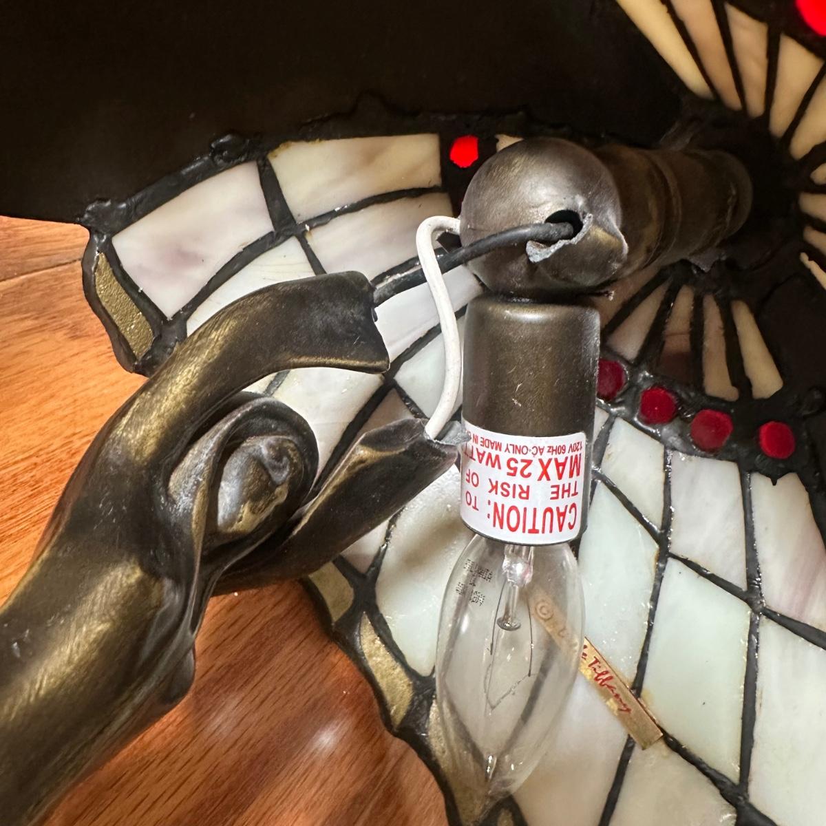 LOT 19: Brass & Stained Glass Tiffany Style Lamp w/ Table Lamp (condition issues)