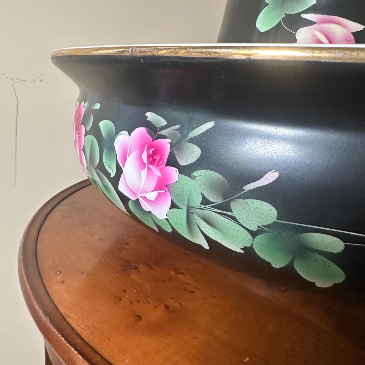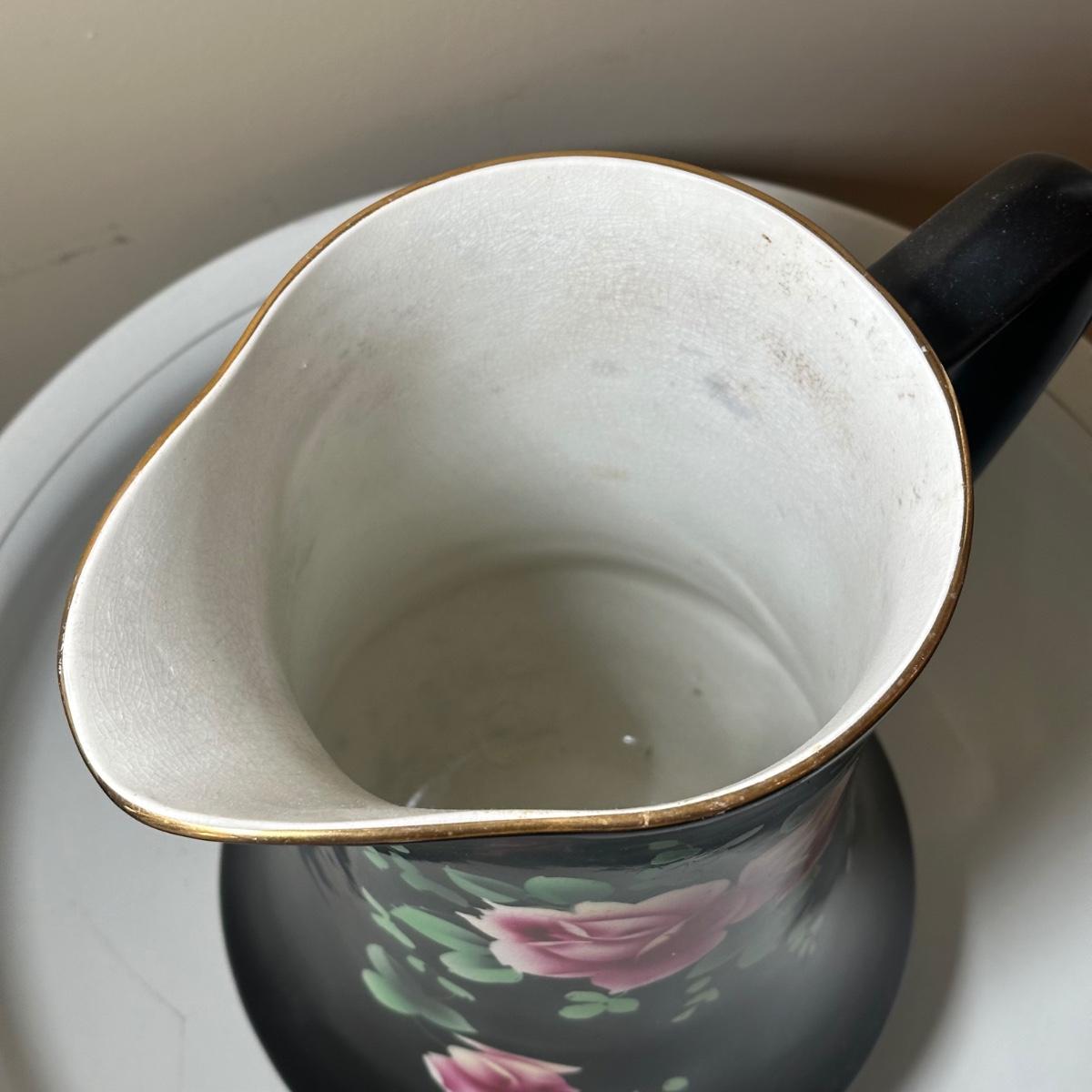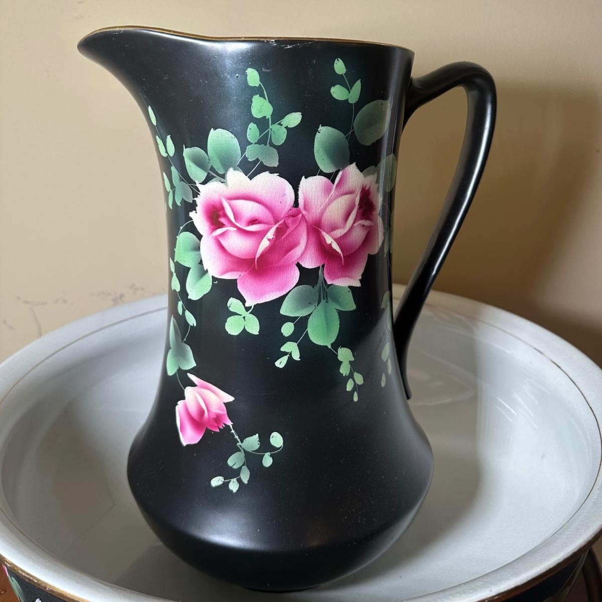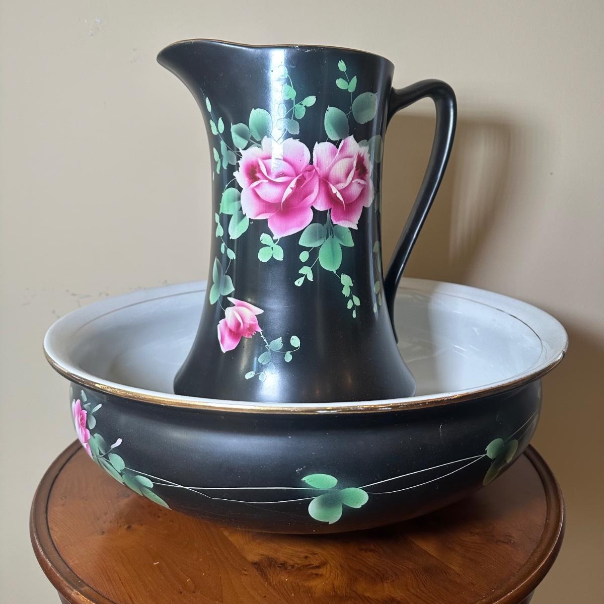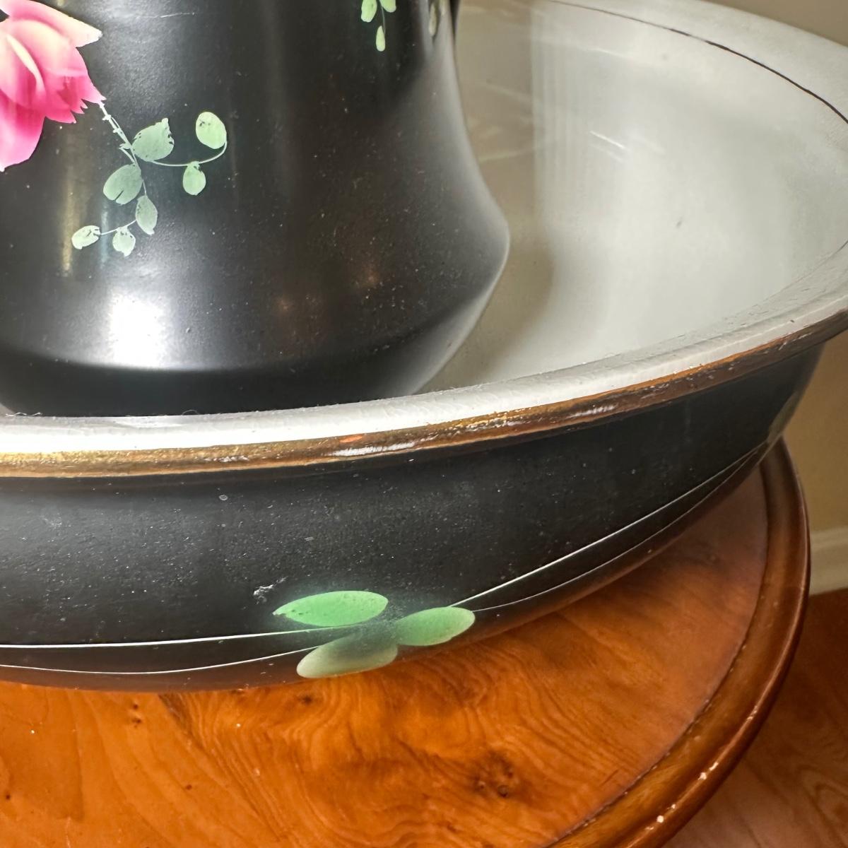 LOT 24: Wm. A. Berkey Furniture Wooden Side Table w/ Ceramic Pitcher & Bowl