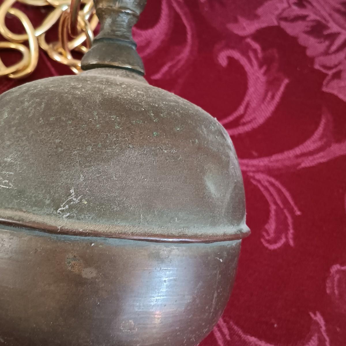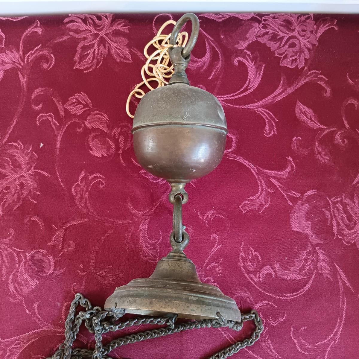 LOT 43: Antique Brass and Glass Bell Light Fixture