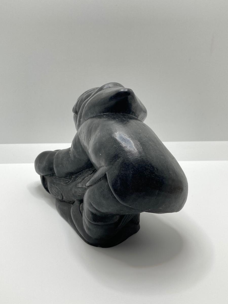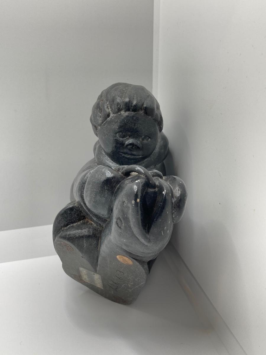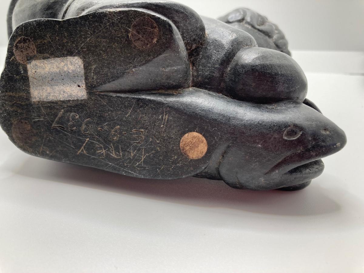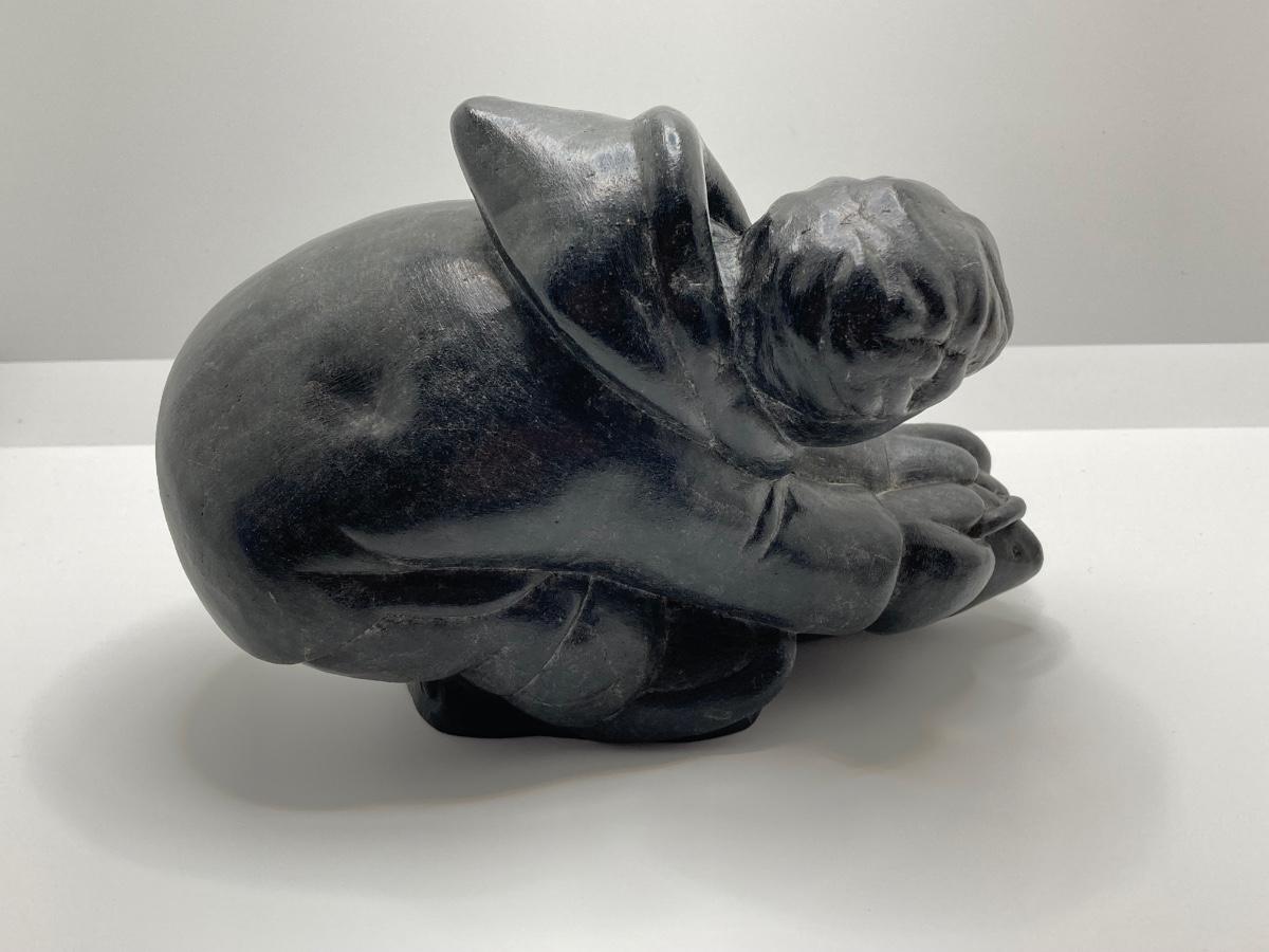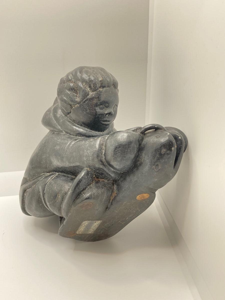 LOT 63: Carved Inuit Soapstone Art Sculpture - Boy with Fish